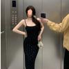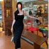 Vestido negro con estampado floral de moda para mujer, nuevo vestido de verano de las Spice Girls, ajustado, de longitud media, con falda.