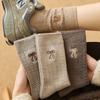 Calcetines de Nuevo Estilo para Mujer Otoño e Invierno Vintage Bordado Abejita de Media Caña Calcetines Gruesos Cálidos de Lana Medias de Invierno para Mujer