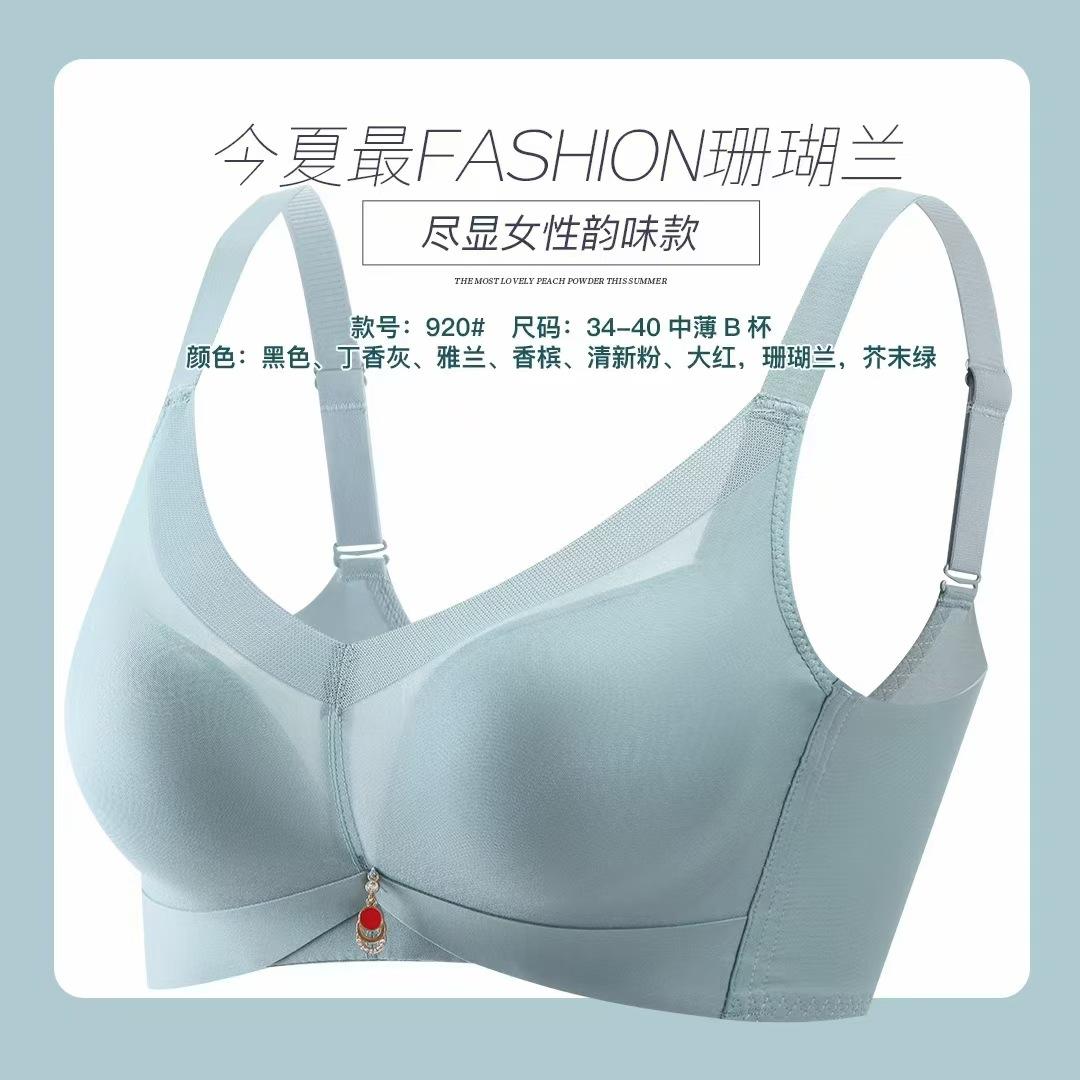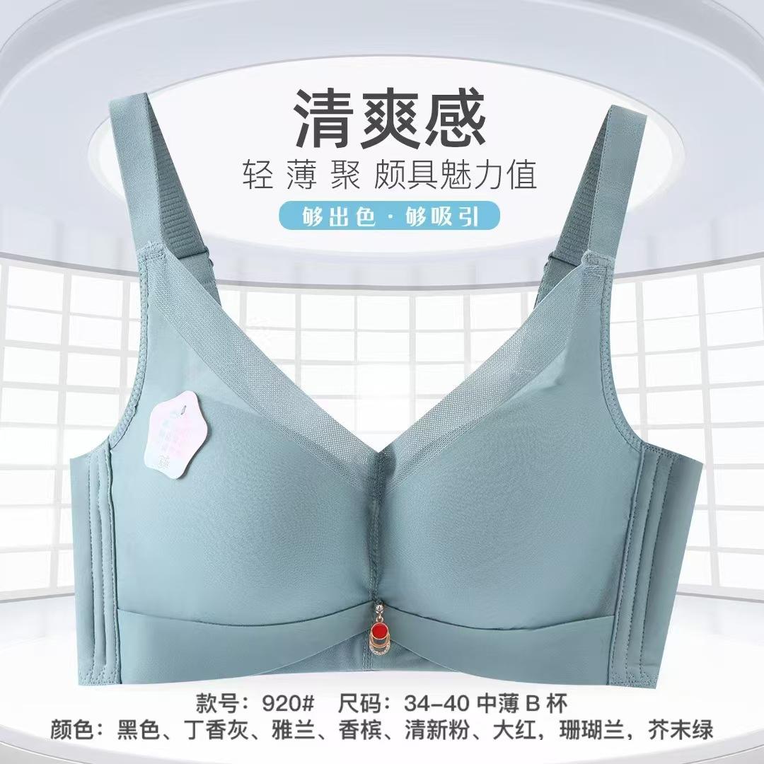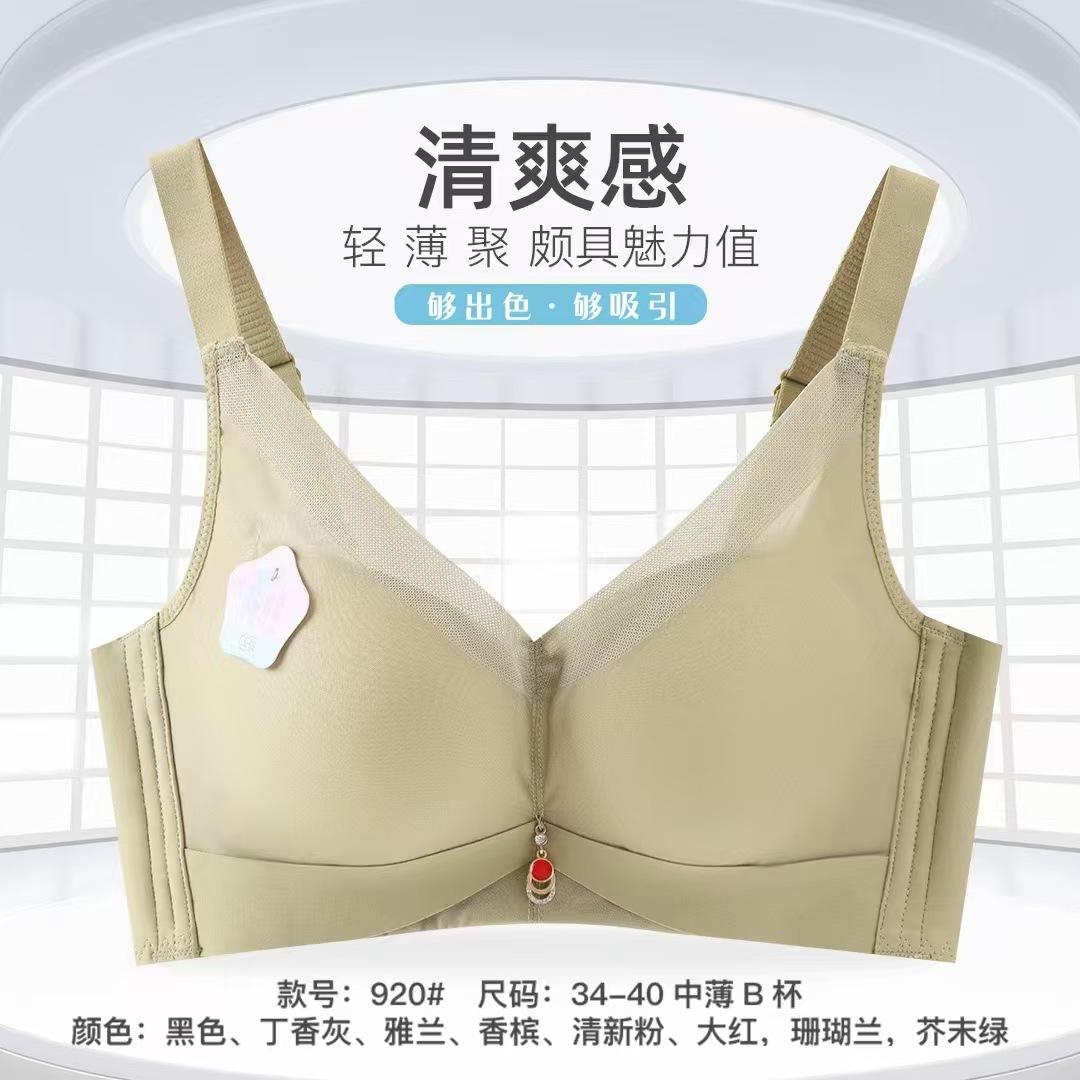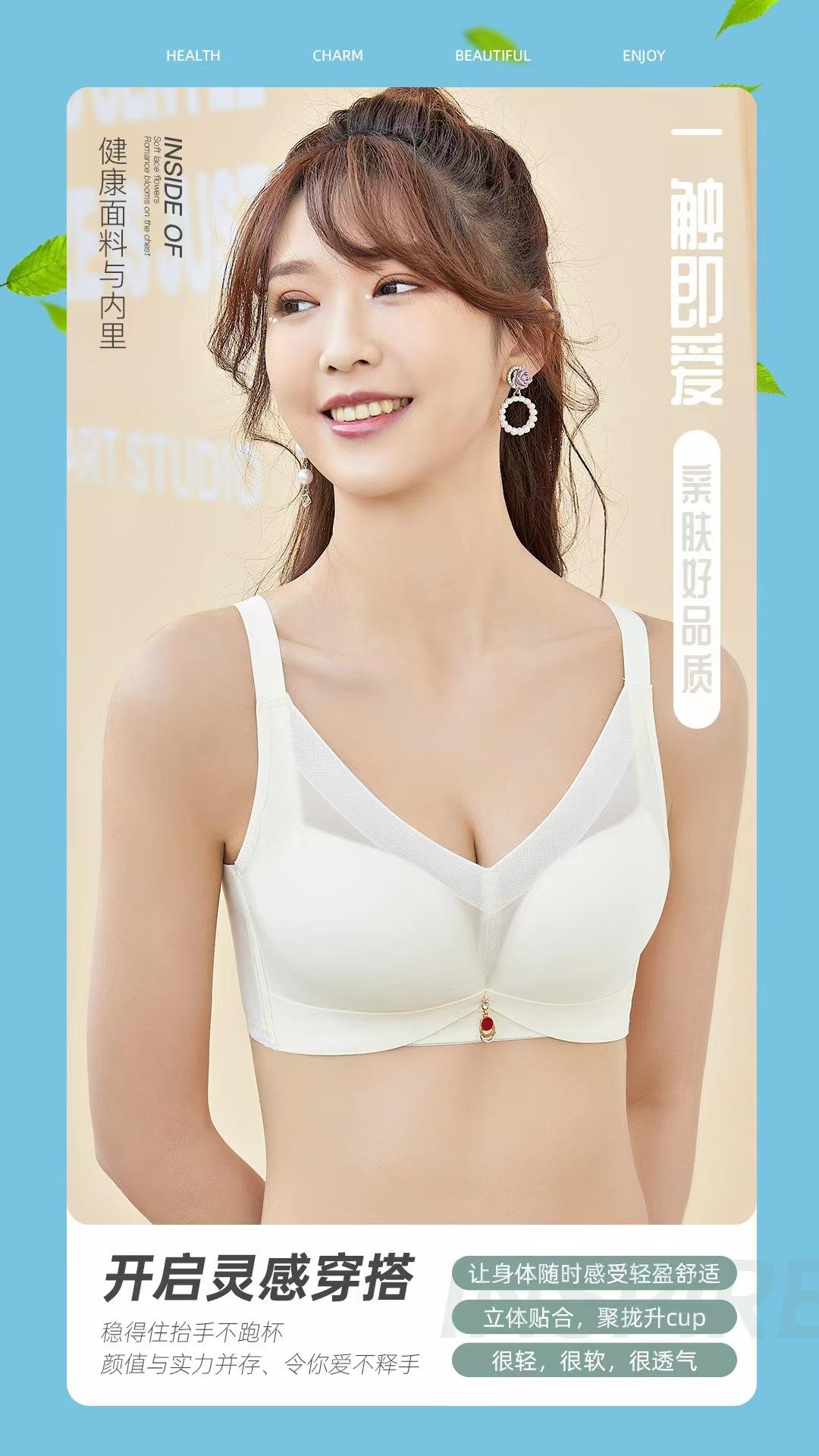 Algodón látex transpirable sin aro de acero recogido pecho pequeño pecho grande pieza sujetador venta al por mayor copa delgada pecho grande ropa interior sujetador