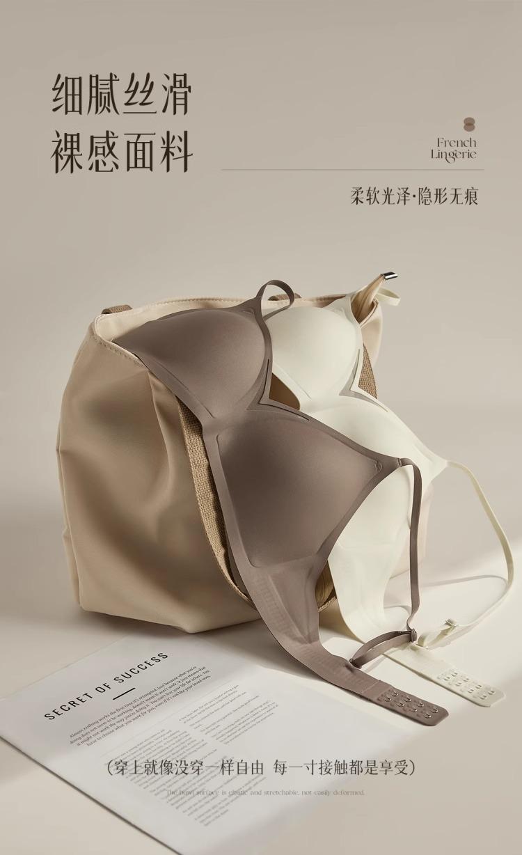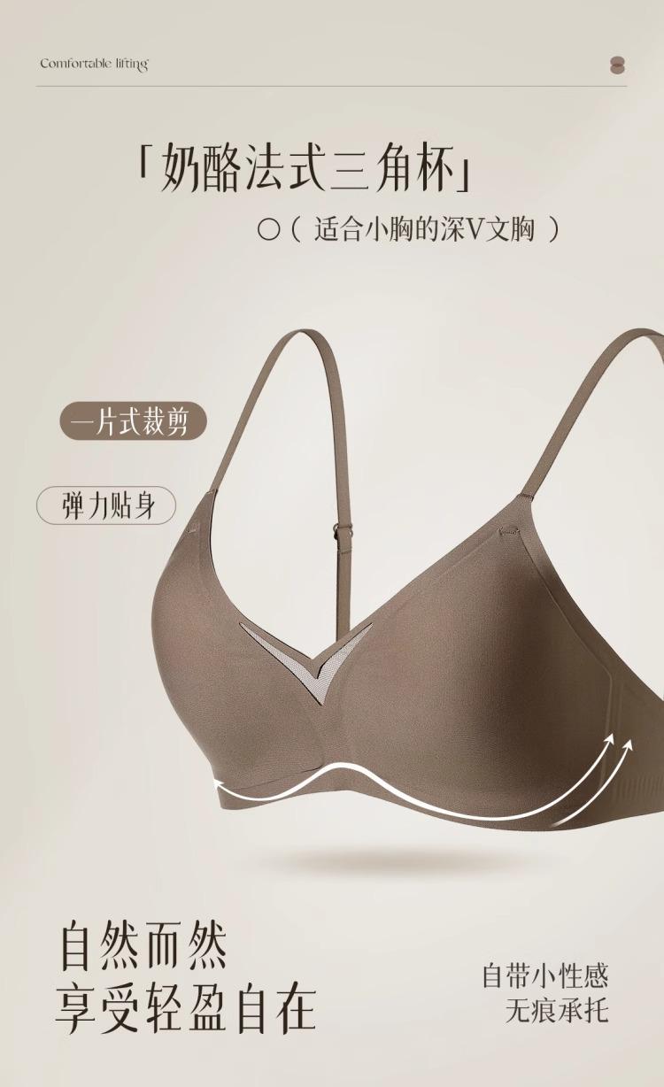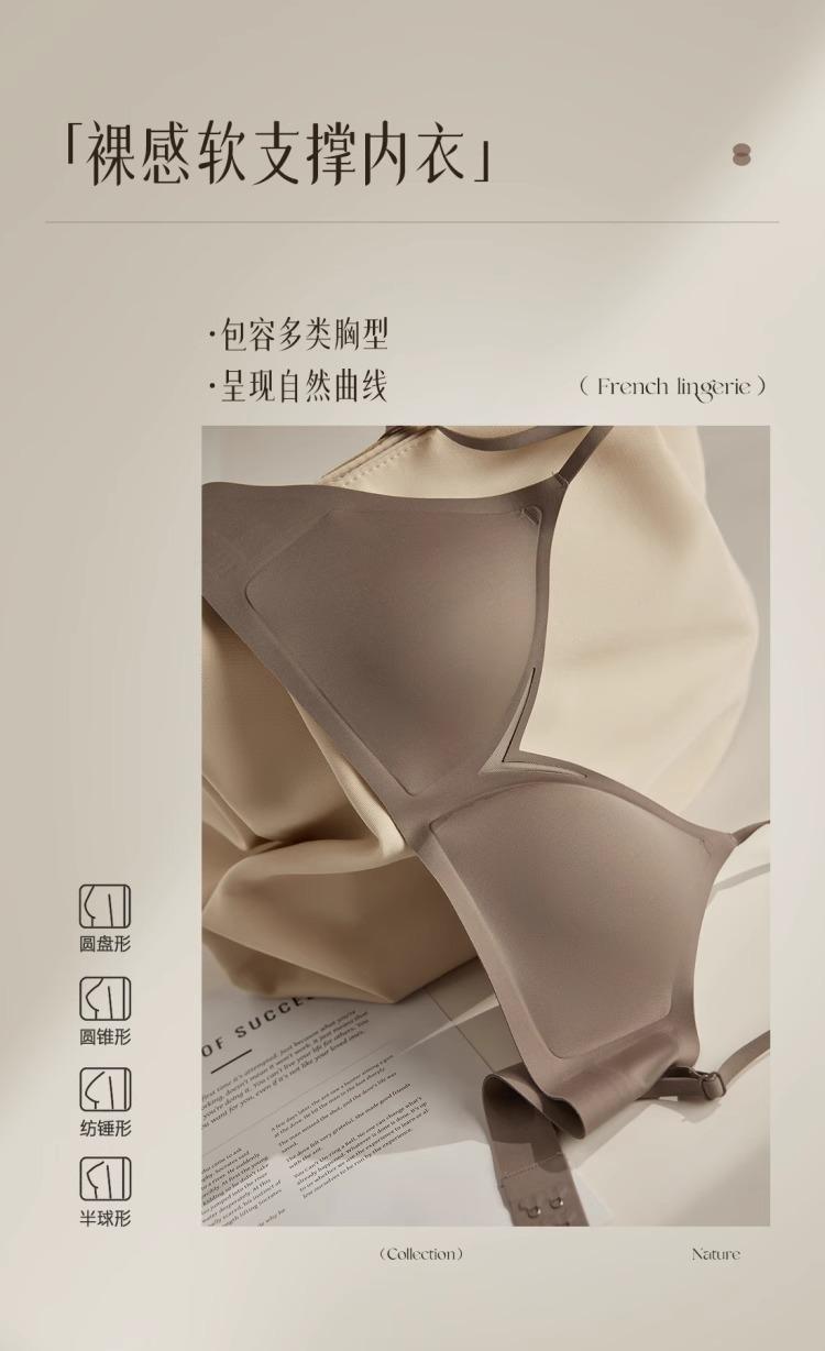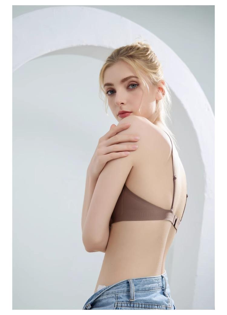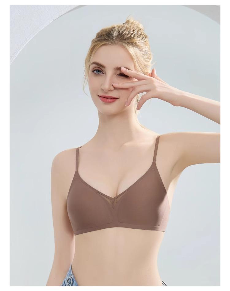 Sujetador fino sin costuras para mujer, con realce de pecho grande y pecho pequeño, espalda hermosa, copa triangular francesa, soporte suave y antiflacidez