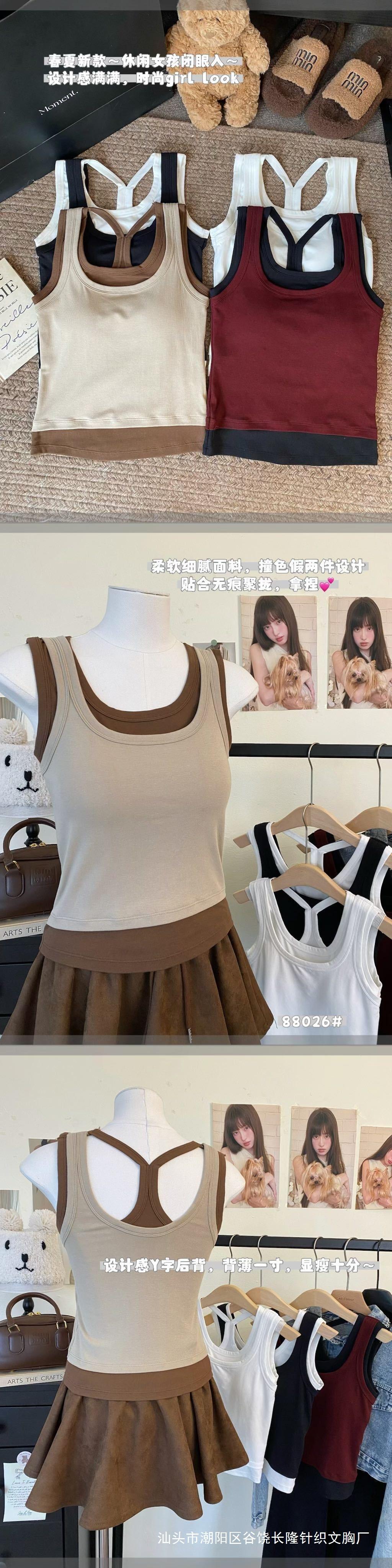 𝗡𝗲𝘄 | 88026#•Chaleco falso de dos piezas con tirantes anchos en forma de Y y espalda hermosa en color de contraste