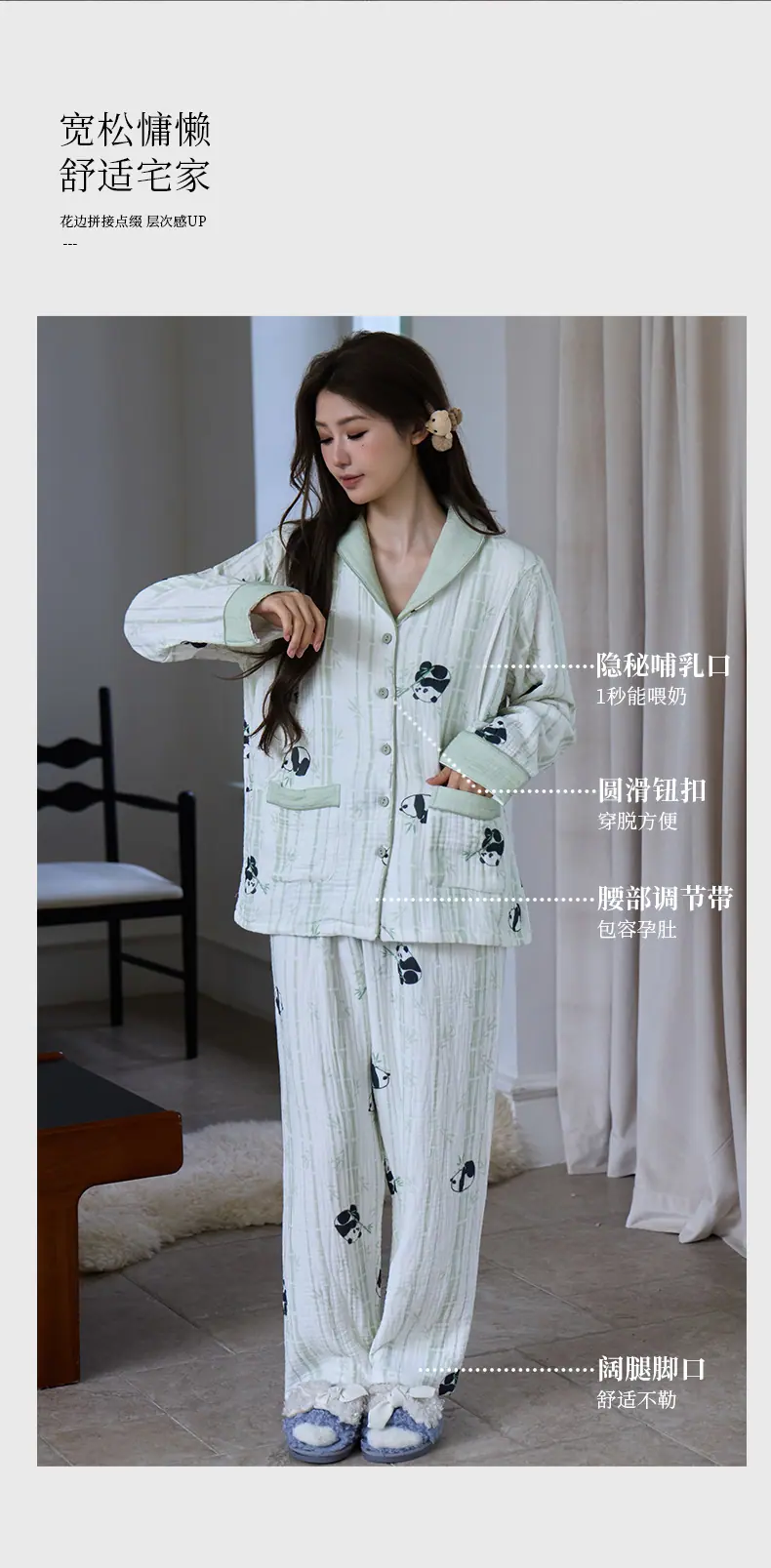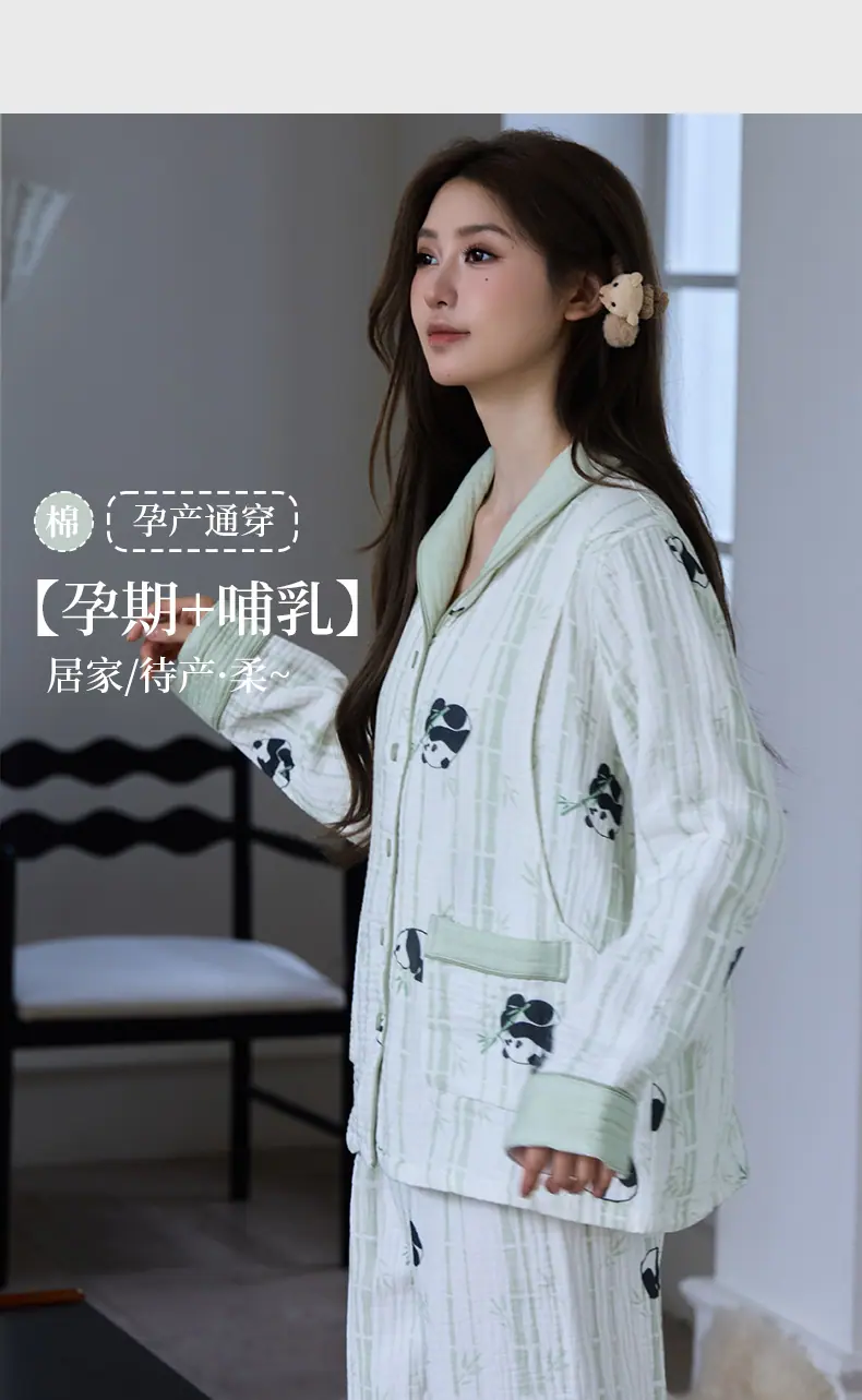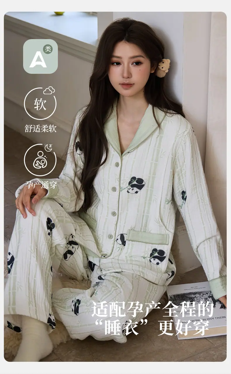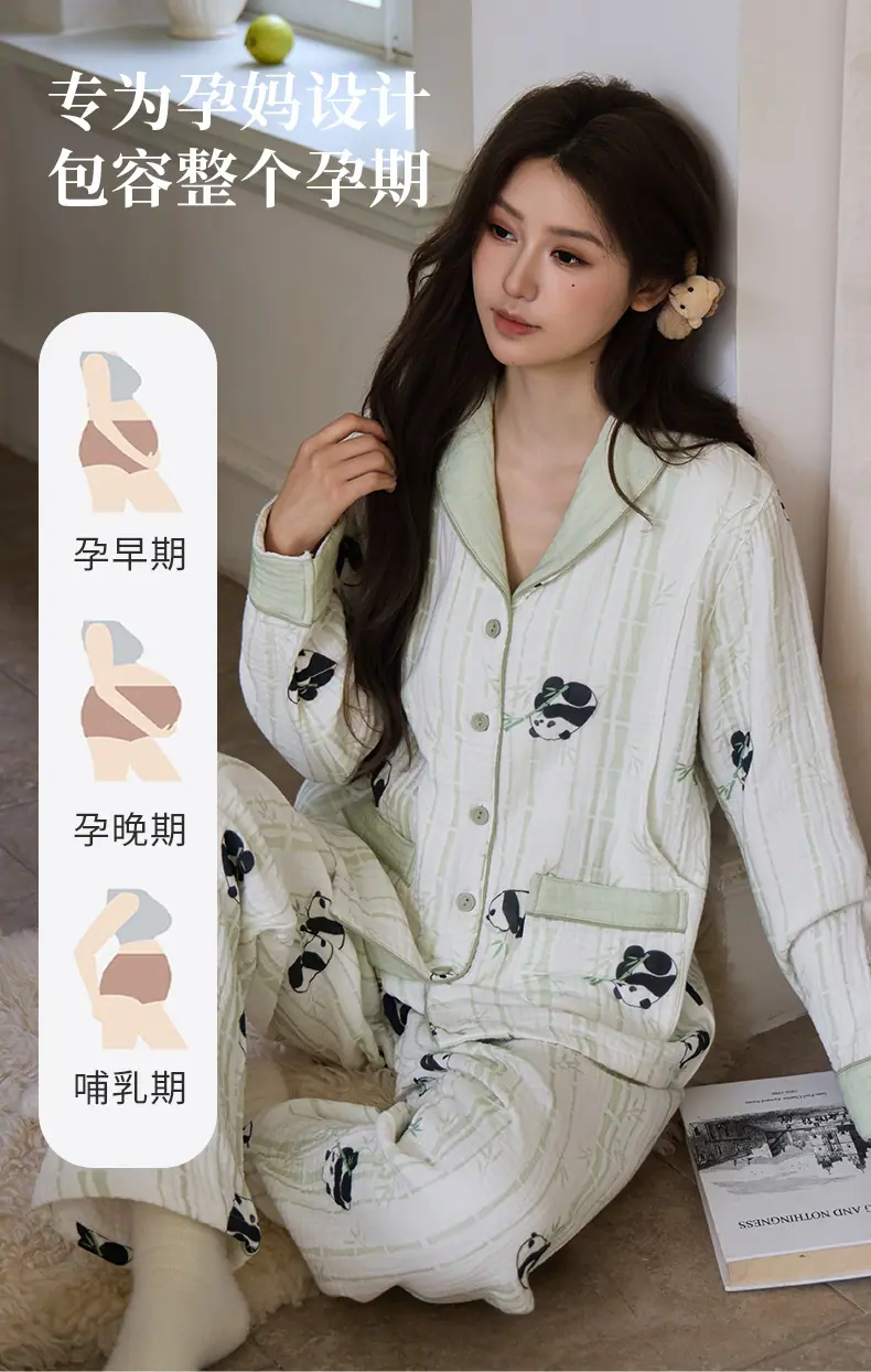 Pijama de algodón de cuatro capas para mujer embarazada, ropa de dormir cálida y ajustable para el posparto, otoño e invierno