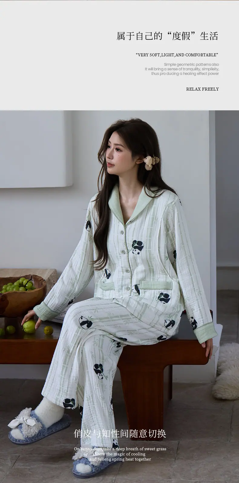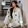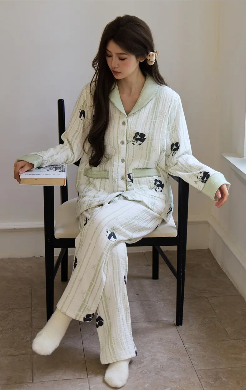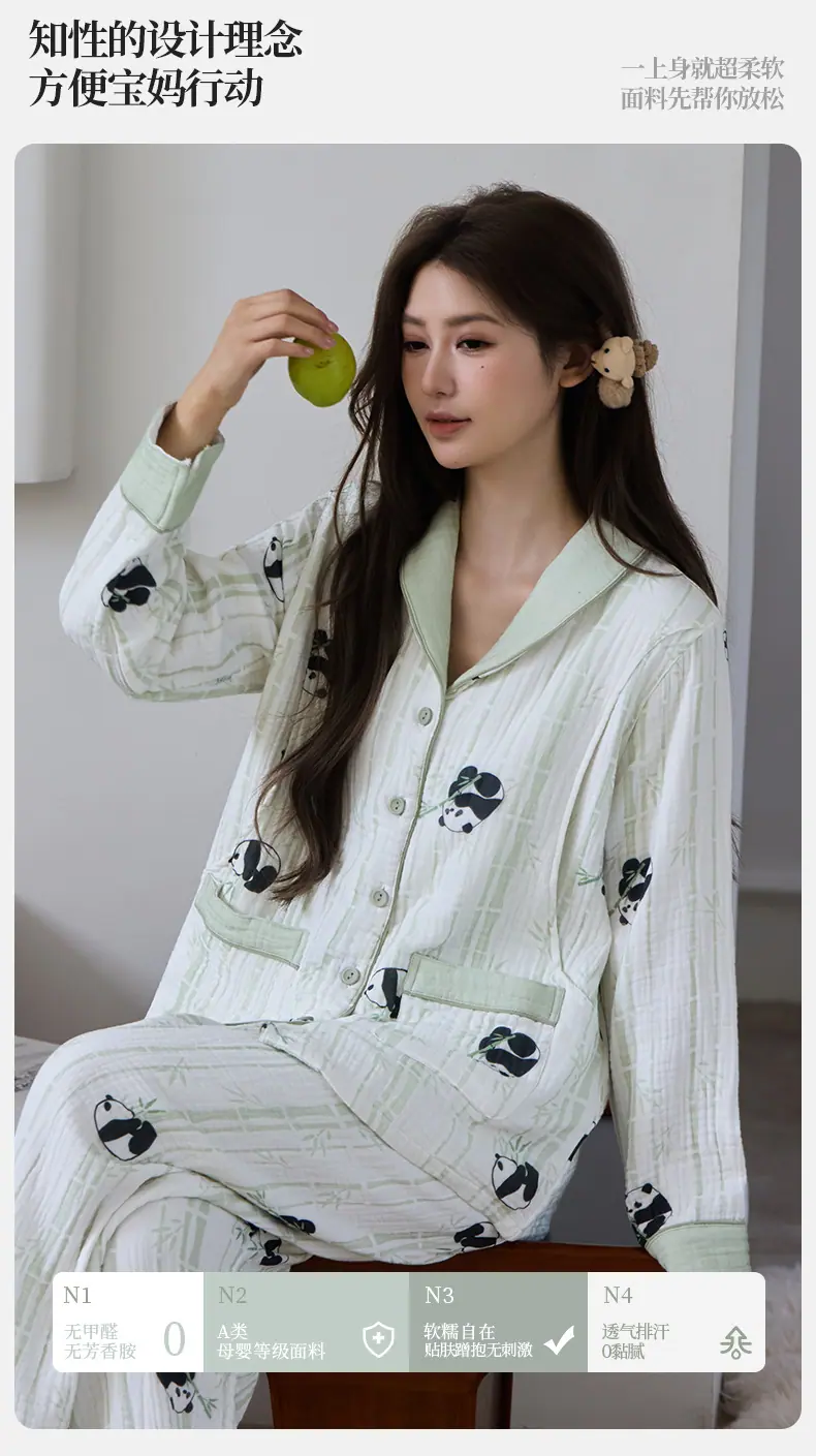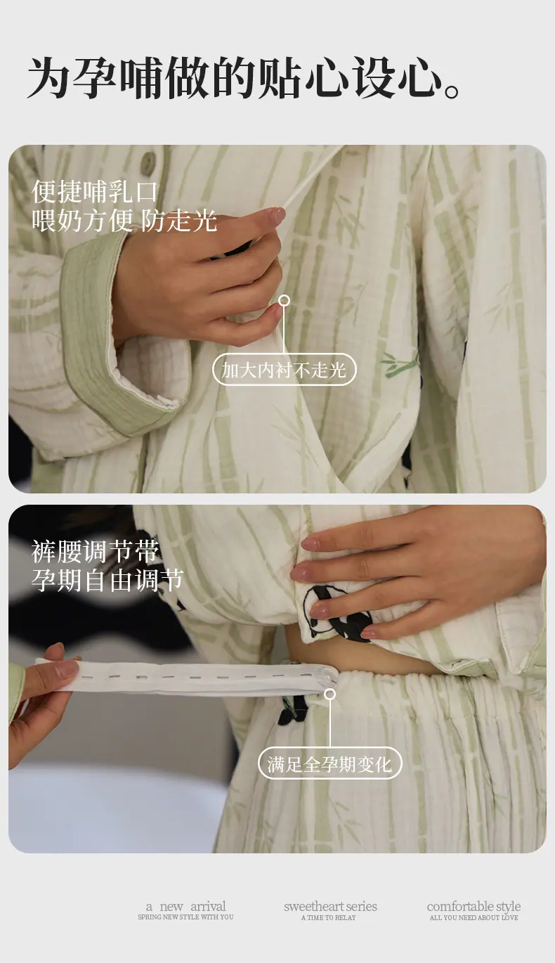 Pijama de algodón de cuatro capas para mujer embarazada, ropa de dormir cálida y ajustable para el posparto, otoño e invierno