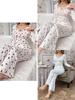 Crepe Women's Long Set of Curved Collar Drawstring-White Christmas Bear