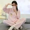 Primavera, verano y otoño nuevo traje de mujer pequeño fresco dulce pantalones de manga larga pijamas de algodón crepé ropa sencilla para el hogar