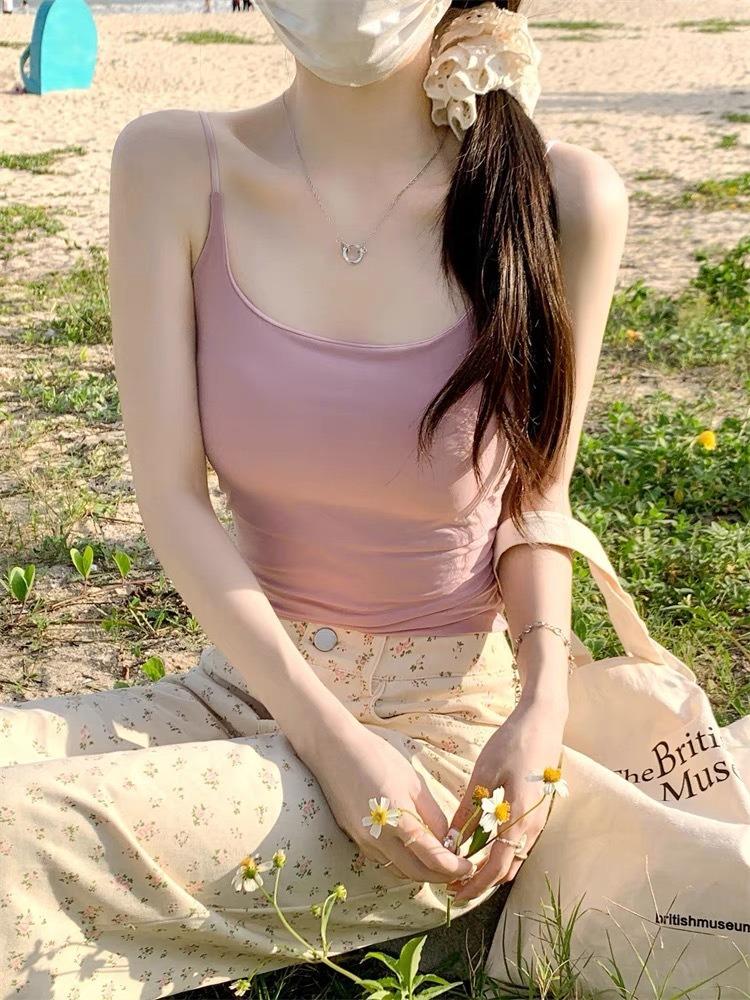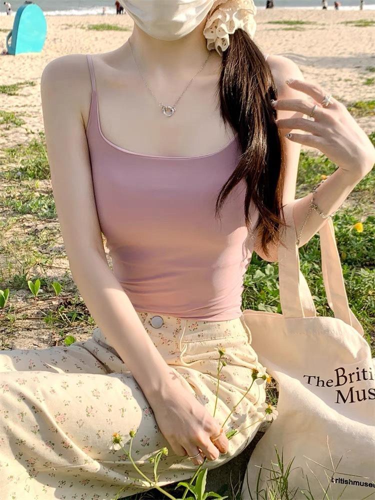 Camisola de Seda de Hielo para Chica Sexy Color Sólido Espalda Hermosa Una Pieza Exterior Uso Interior Envoltura Pecho Tubo Superior Ropa Interior para Mujer con Almohadilla de Pecho