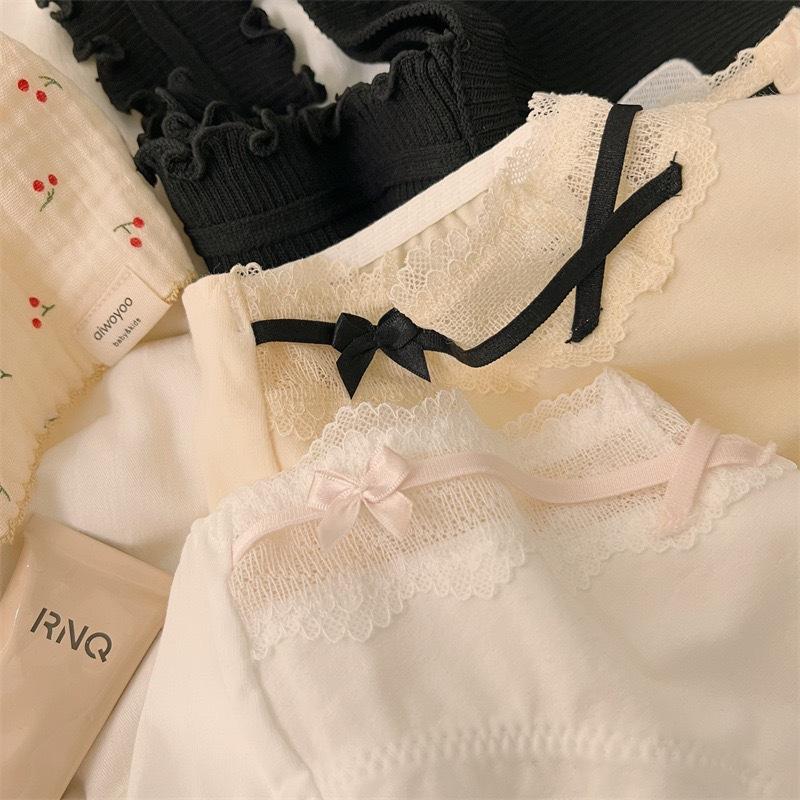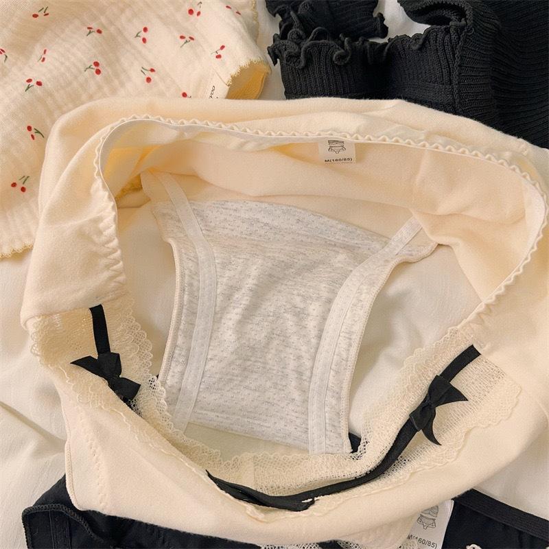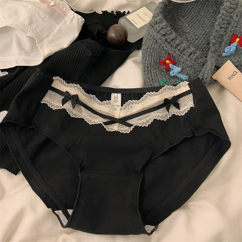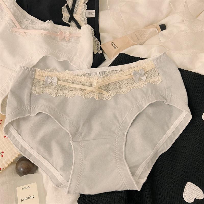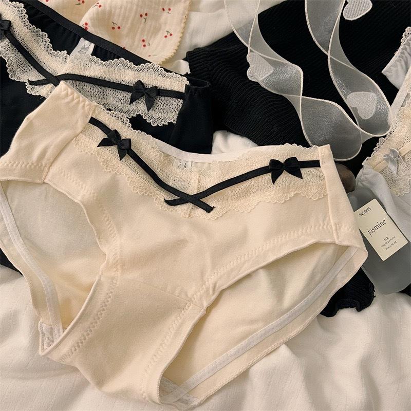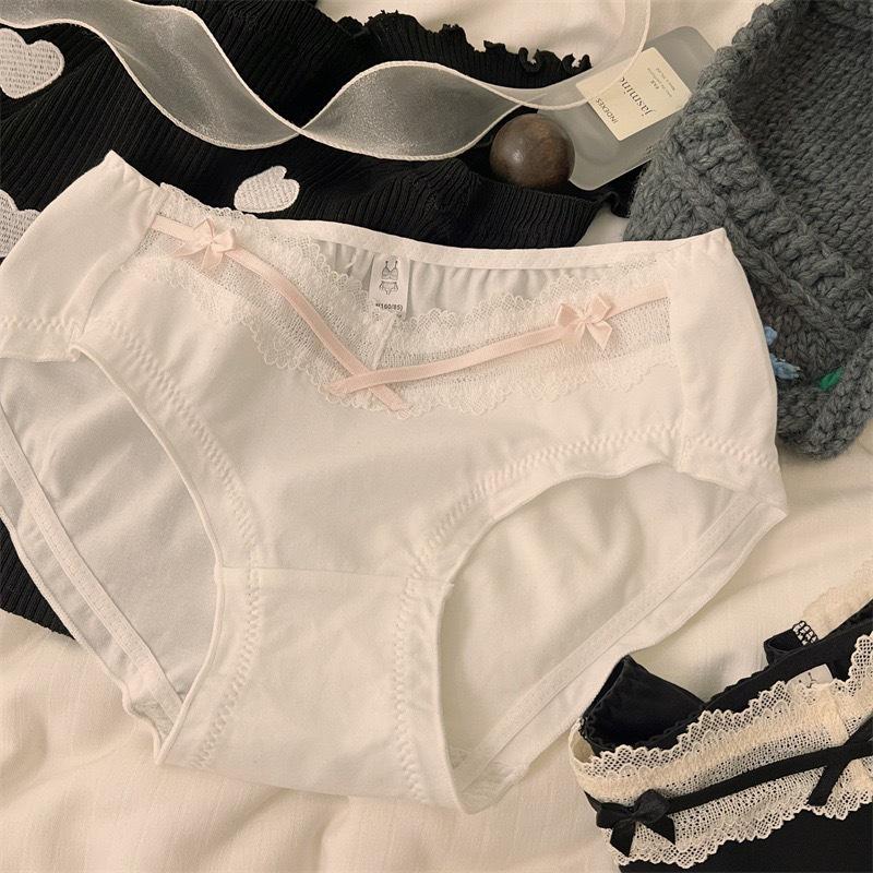 Ropa Interior de Algodón Estilo Deseo Puro de Chica Francesa Sexy Borde de Encaje con Lazo Sexy Algodón Bacteriostático Calzones para Mujer