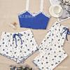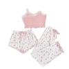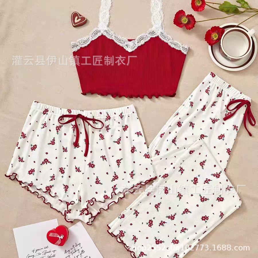 Pijama Sexy Floral Nuevo Transfronterizo Traje de Mujer Verano Pantalones Delgados Lindo Ropa para el Hogar Conjunto de Tres Piezas Ropa Exterior Moderna