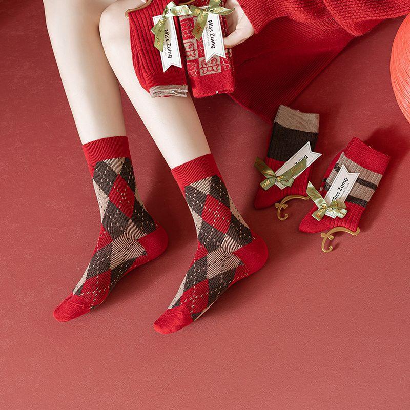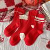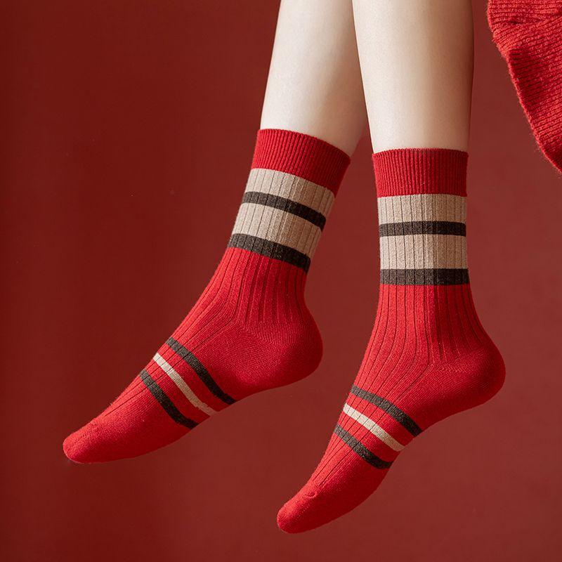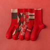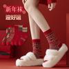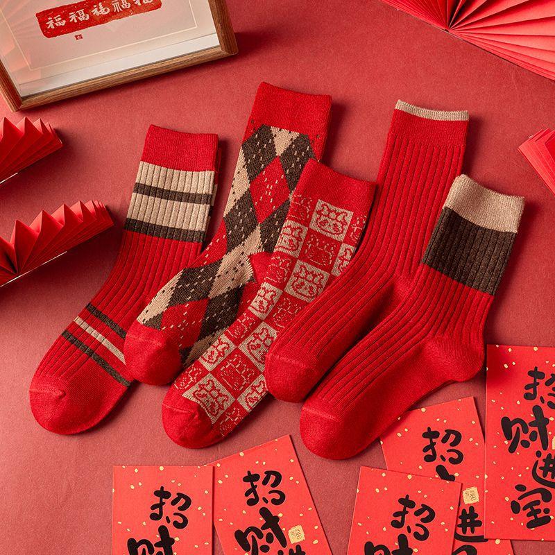 Calcetines rojos de mujer otoño e invierno nuevos calcetines de tubo medio este año de la serpiente desodorante cálido año nuevo calcetines rojos festivos de boda