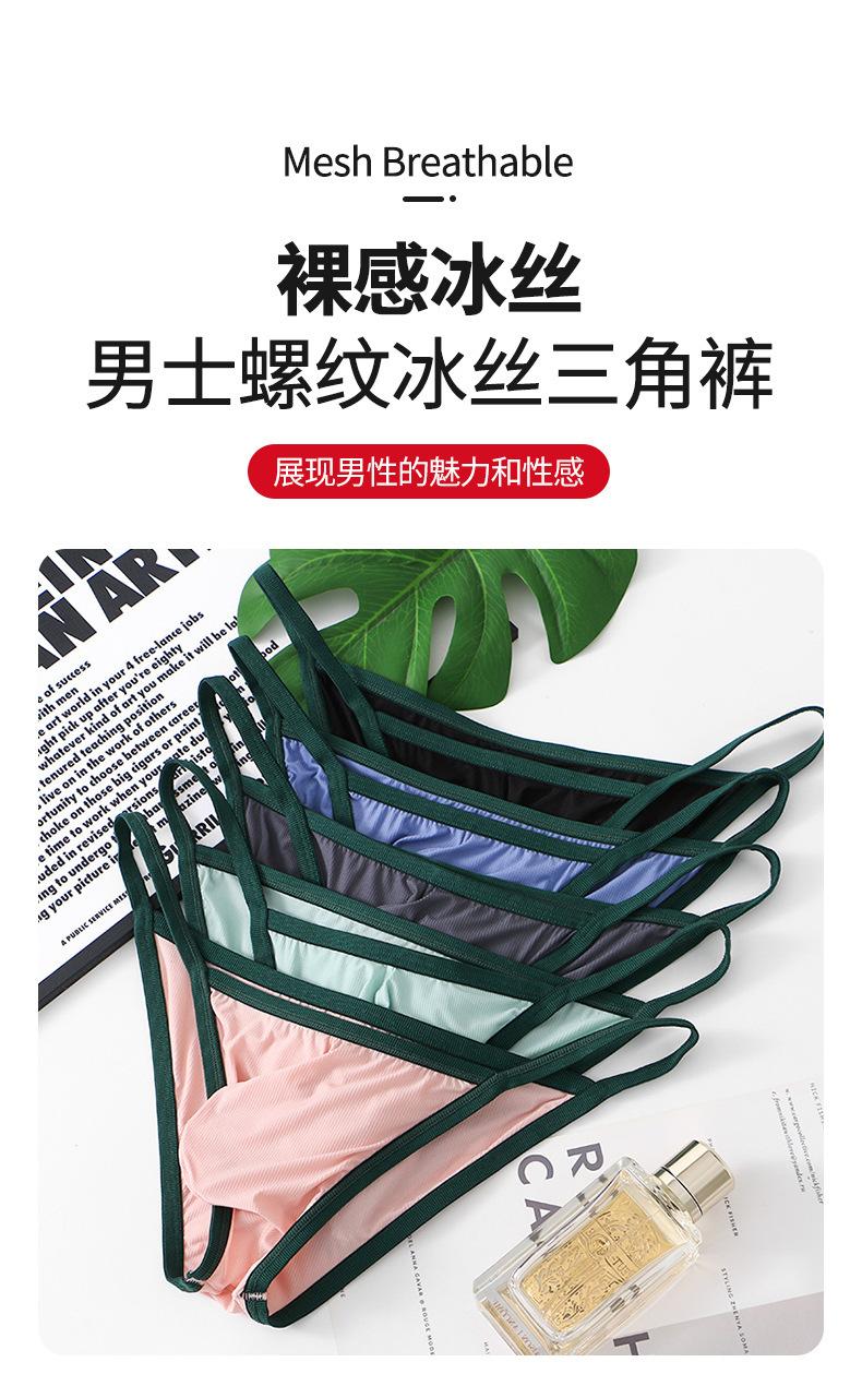 Ropa interior de malla para hombre, calzoncillos de hilo de seda de hielo, de verano, finos, transpirables, sexys, transparentes, de alta elasticidad, para la cabeza de los hombres