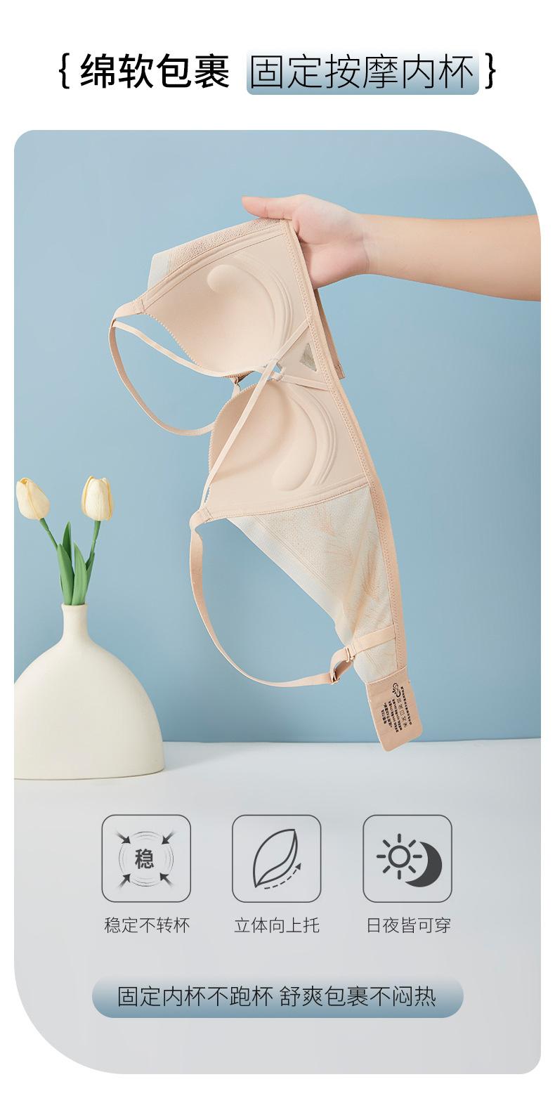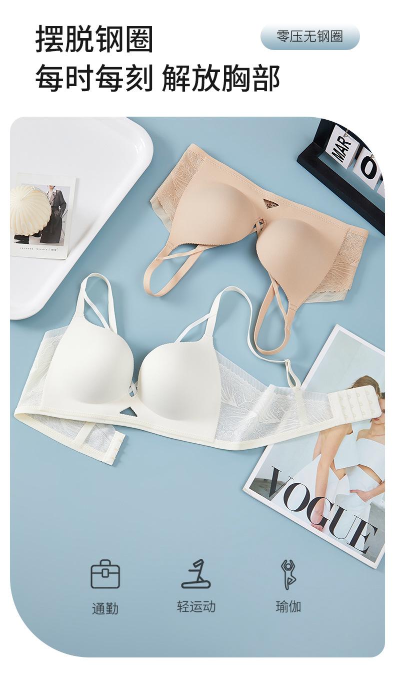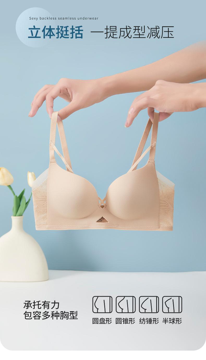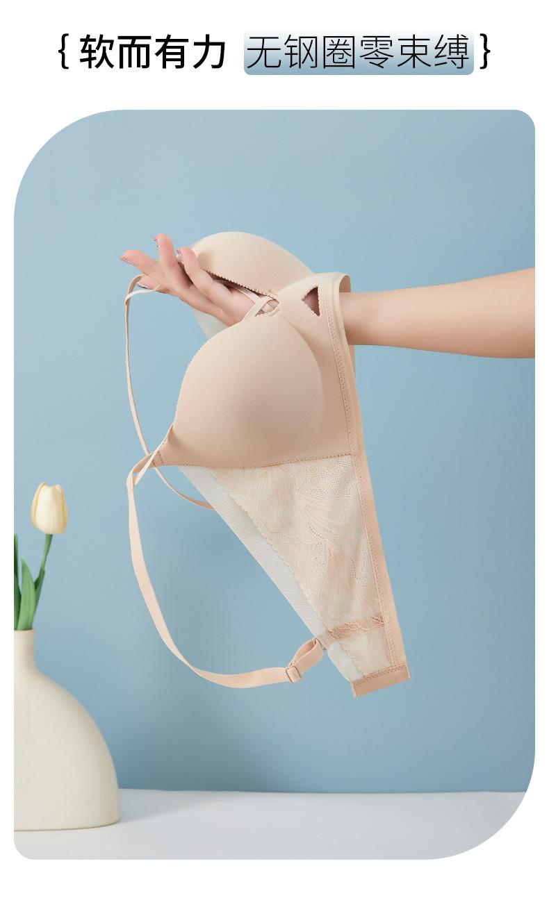 | Nueva y hermosa ropa interior trasera para mujer, fruncido sin costuras, cómodo sujetador con rosca sin aro de acero, almohadilla de copa mediana y larga con copa fija |