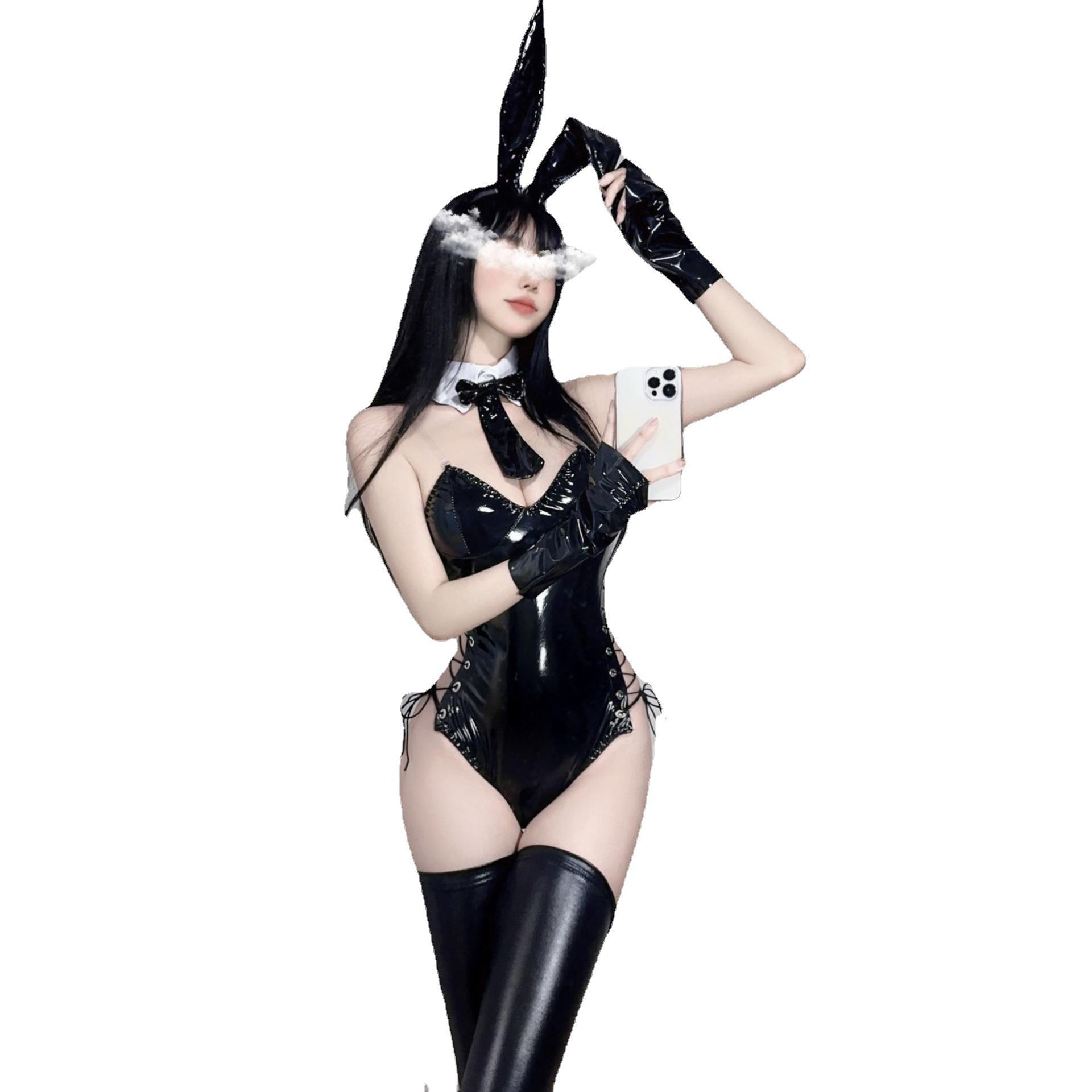 Conejita sexy apasionada uniforme sexy encantador gato libre mujer charol ropa interior todo en uno traje de burlas femenino puro