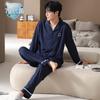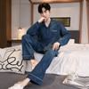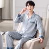 Pijamas de Seda Personalizados para Hombre Primavera y Otoño Seda Helada Manga Larga Pantalón Largo Conjunto de Dos Piezas Ropa de Dormir de Moda Casual de Alta Gama