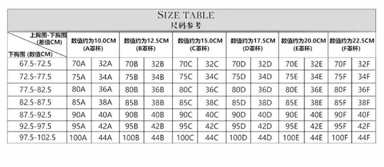 36/80C, 38/85C, 40/90C, 42/95C, 44/100C, 46/105C