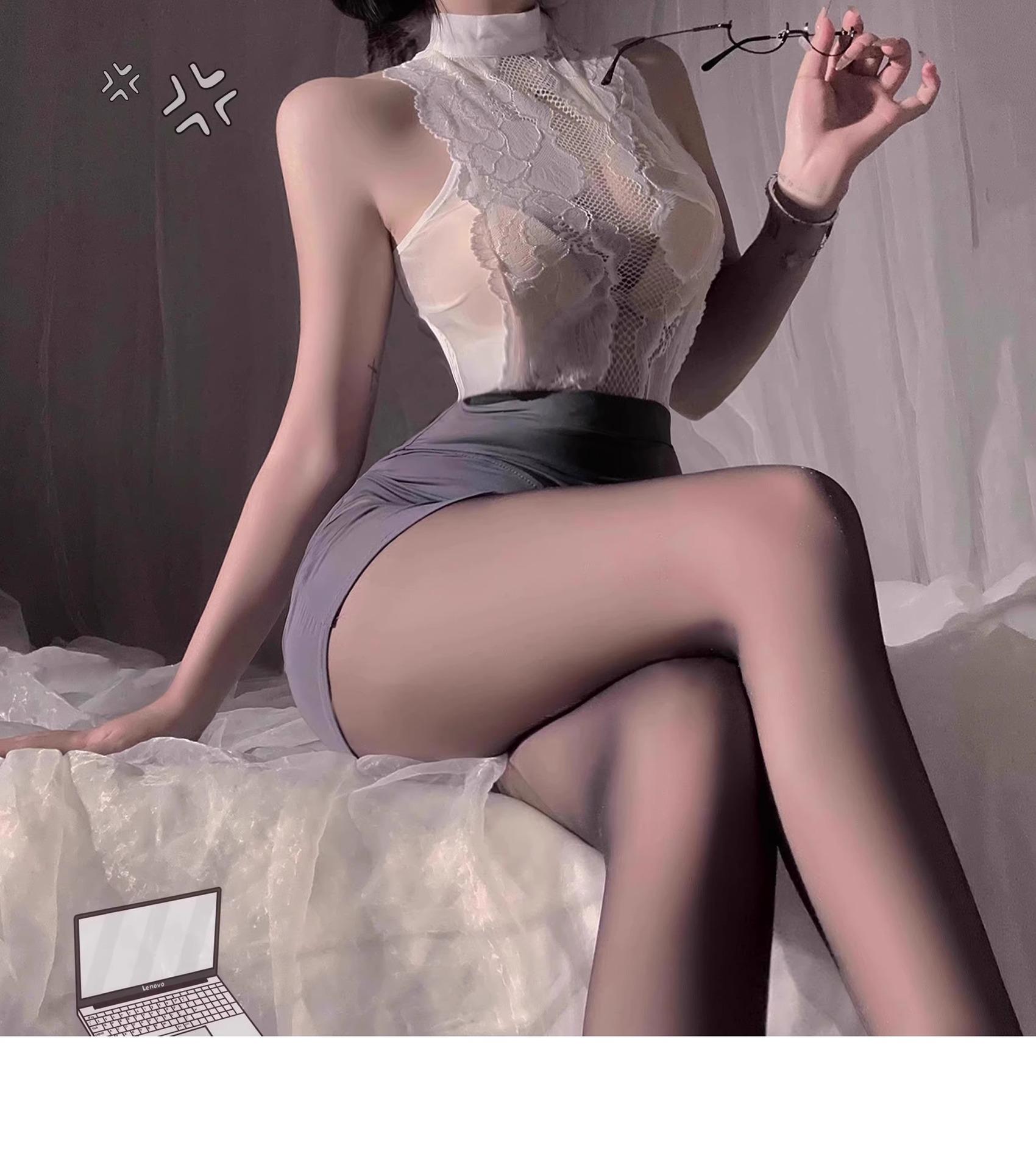Young lady secretary [white + gray] + one-piece crotchless black silk