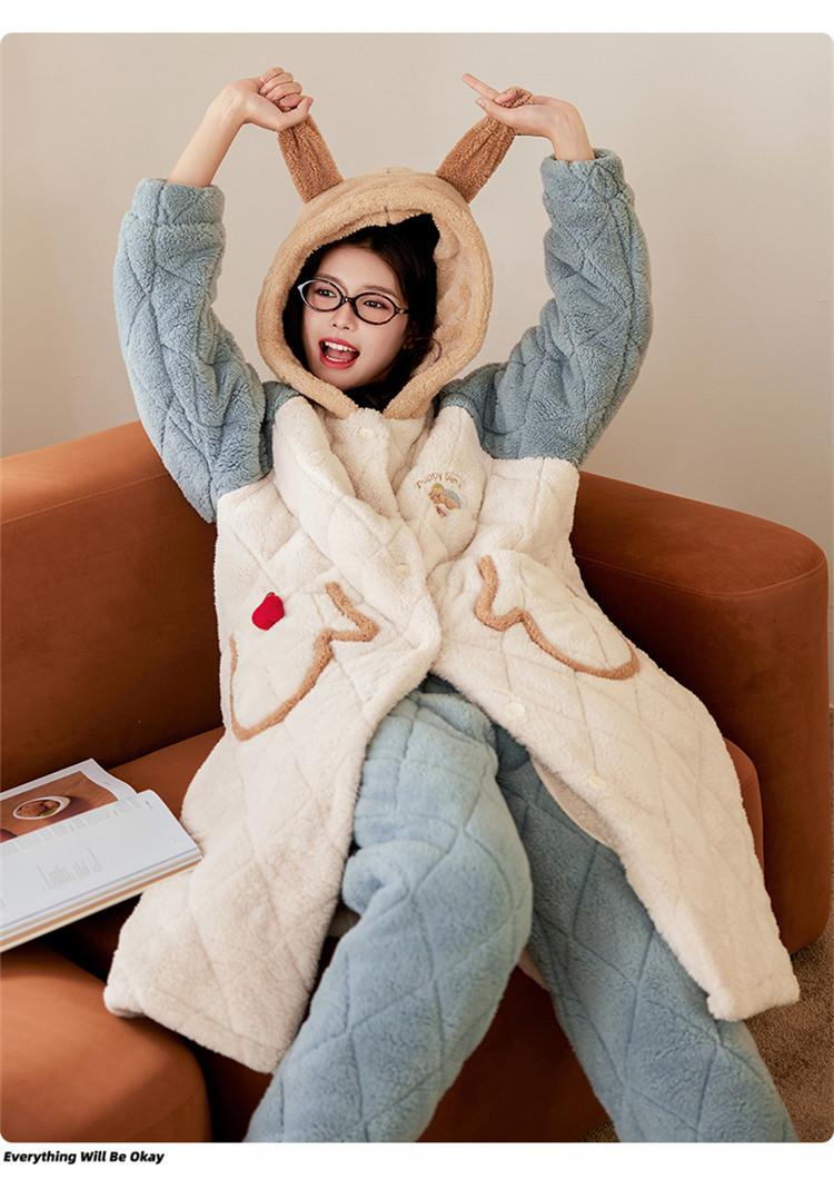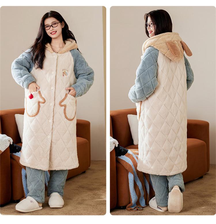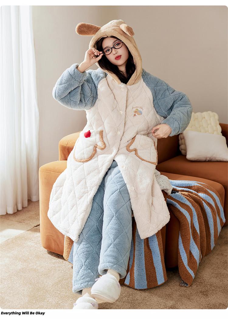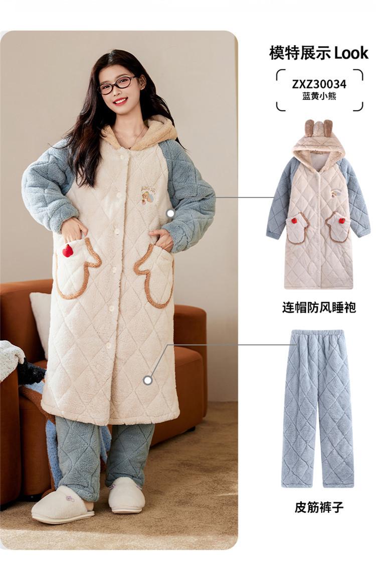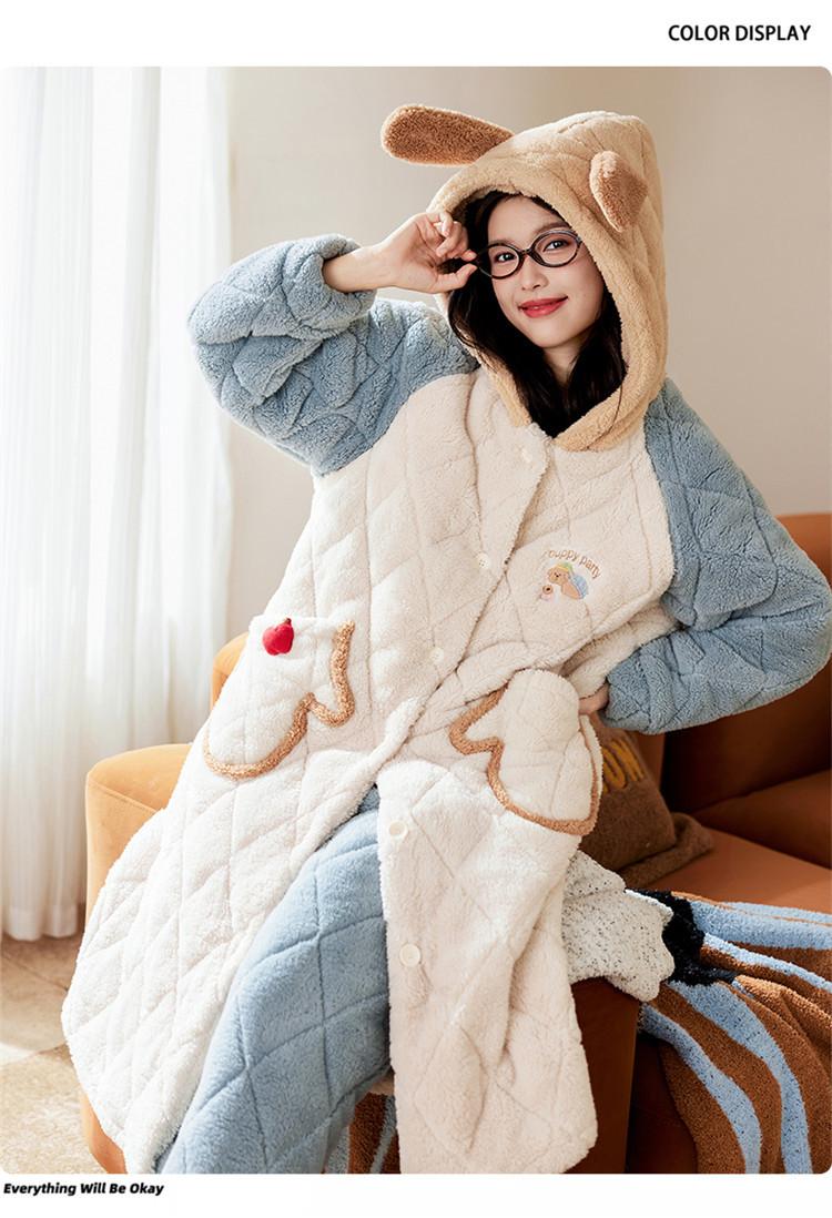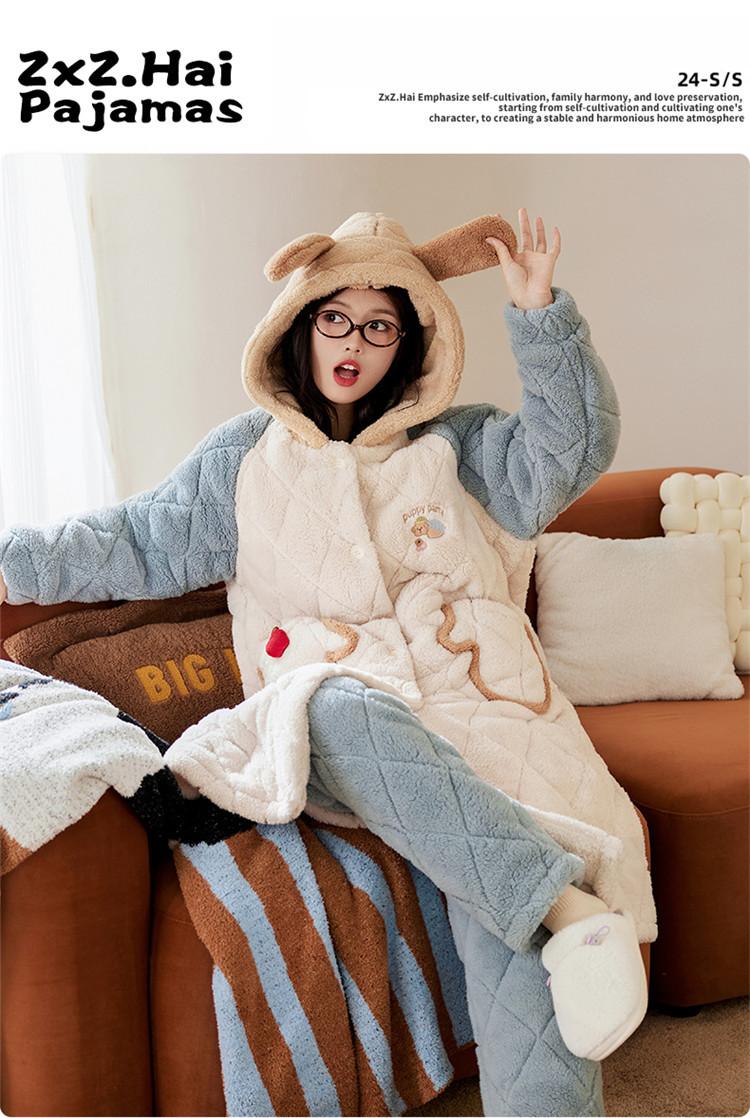 Compra Pijama de algodón con diseño de oso de colores contrastantes para invierno, súper grueso y cálido, para el hogar, con bonitos dibujos animados. al por mayor en Joom.pro
