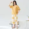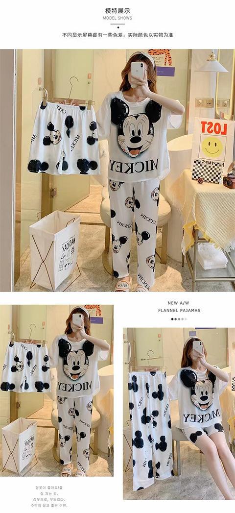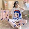 Pijama de verano para mujer, estilo Ins, holgado, de talla grande, con pantalones cortos, ropa de casa, ropa exterior, traje de verano de tres piezas con dibujos animados