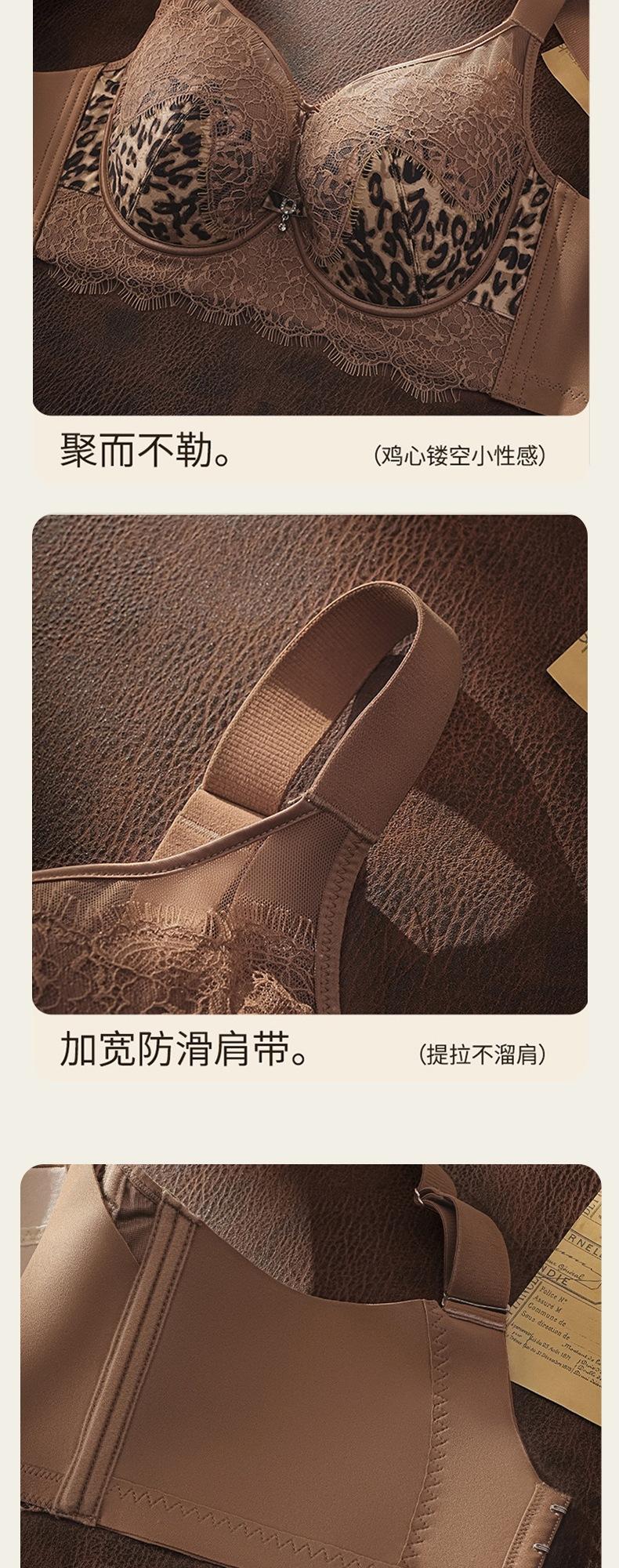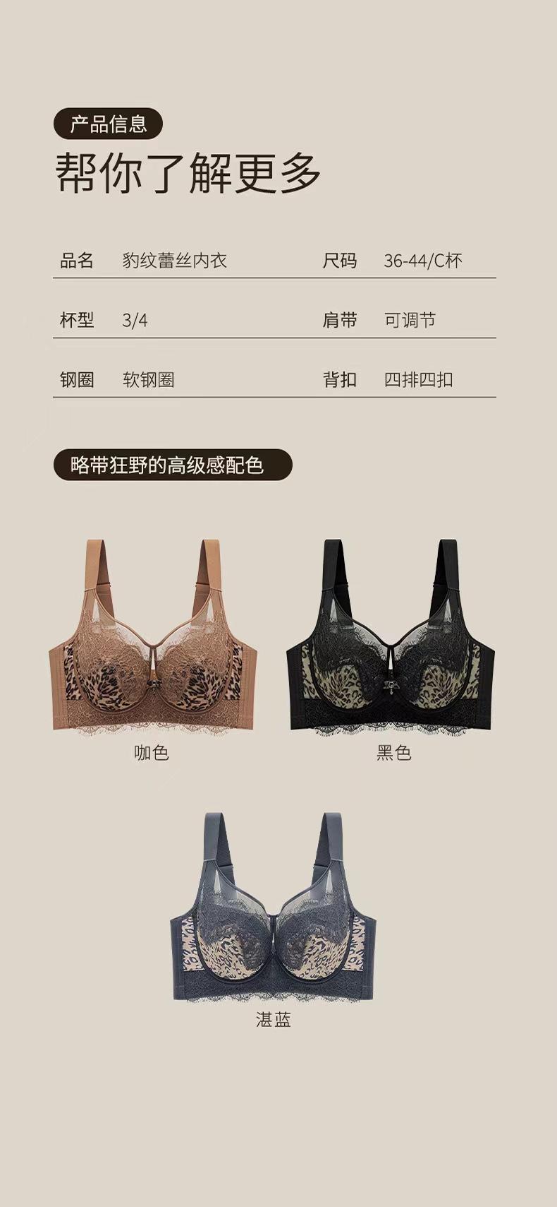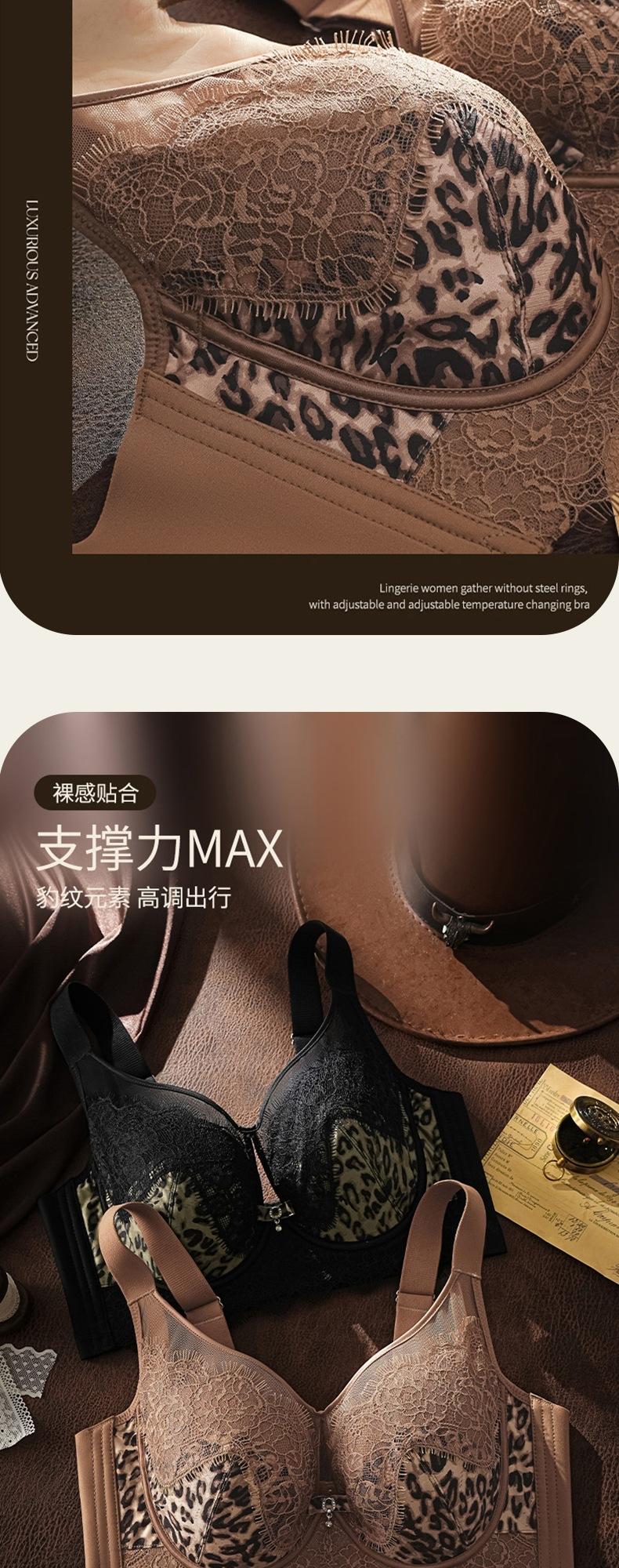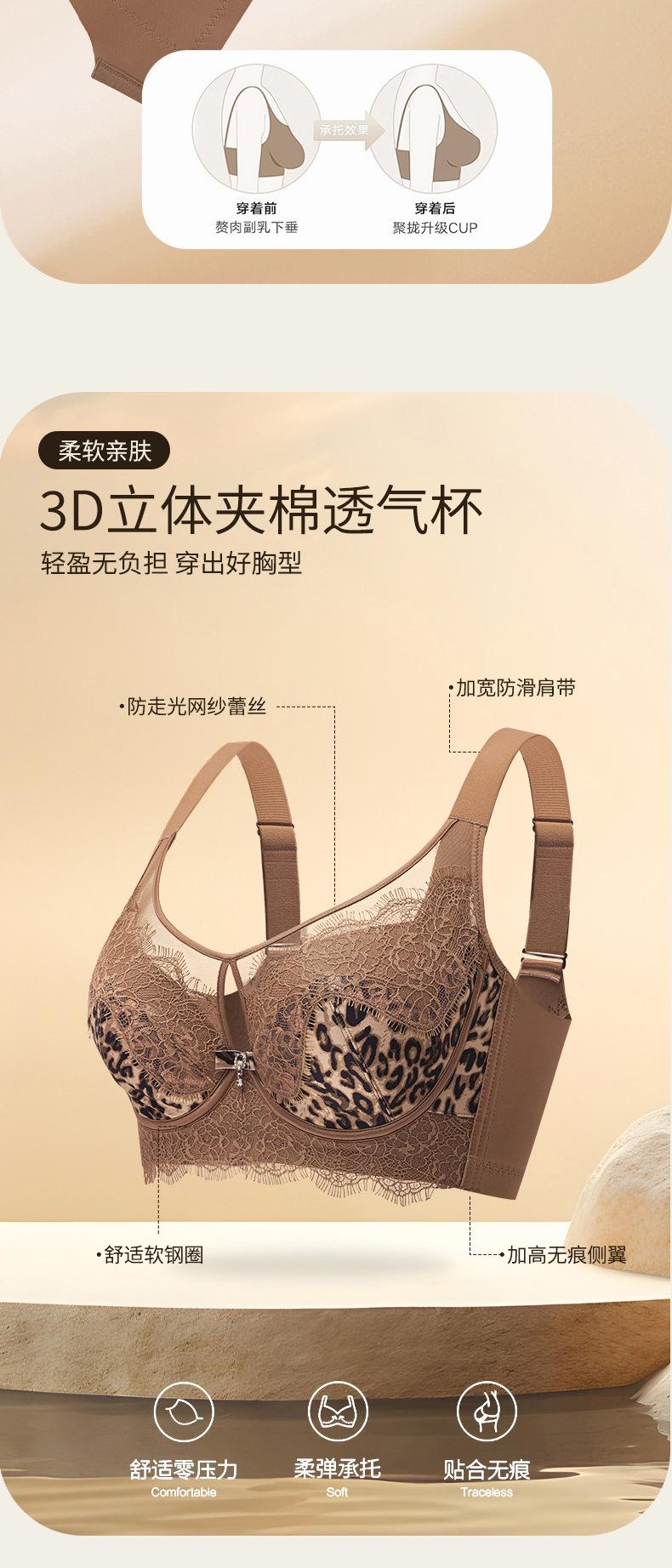 Ropa interior de talla grande para mujer, sin costuras, pecho grande, pequeño, fino, de encaje, sexy, con estampado de leopardo, antiflacidez, ajustable, sujetador 8764