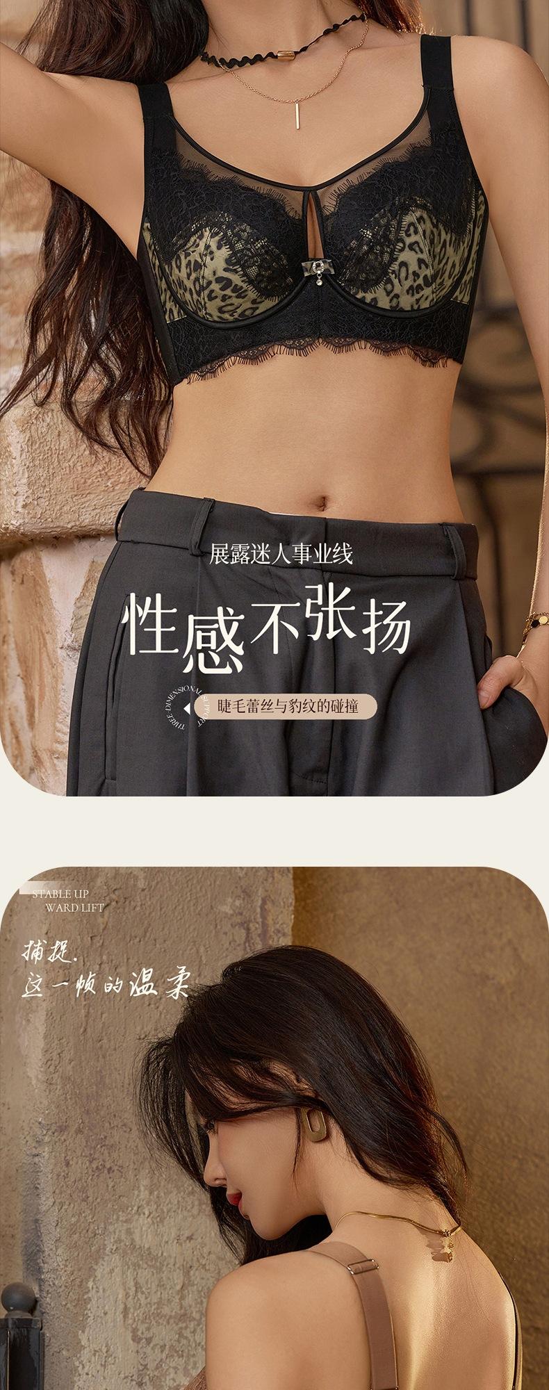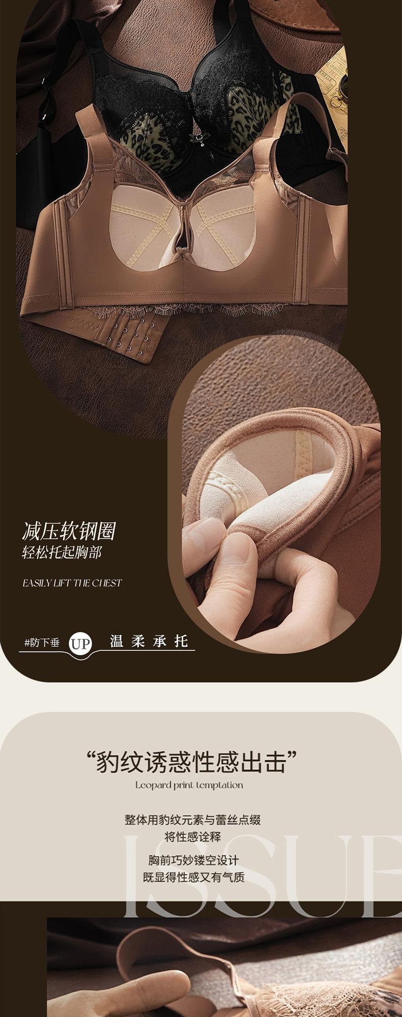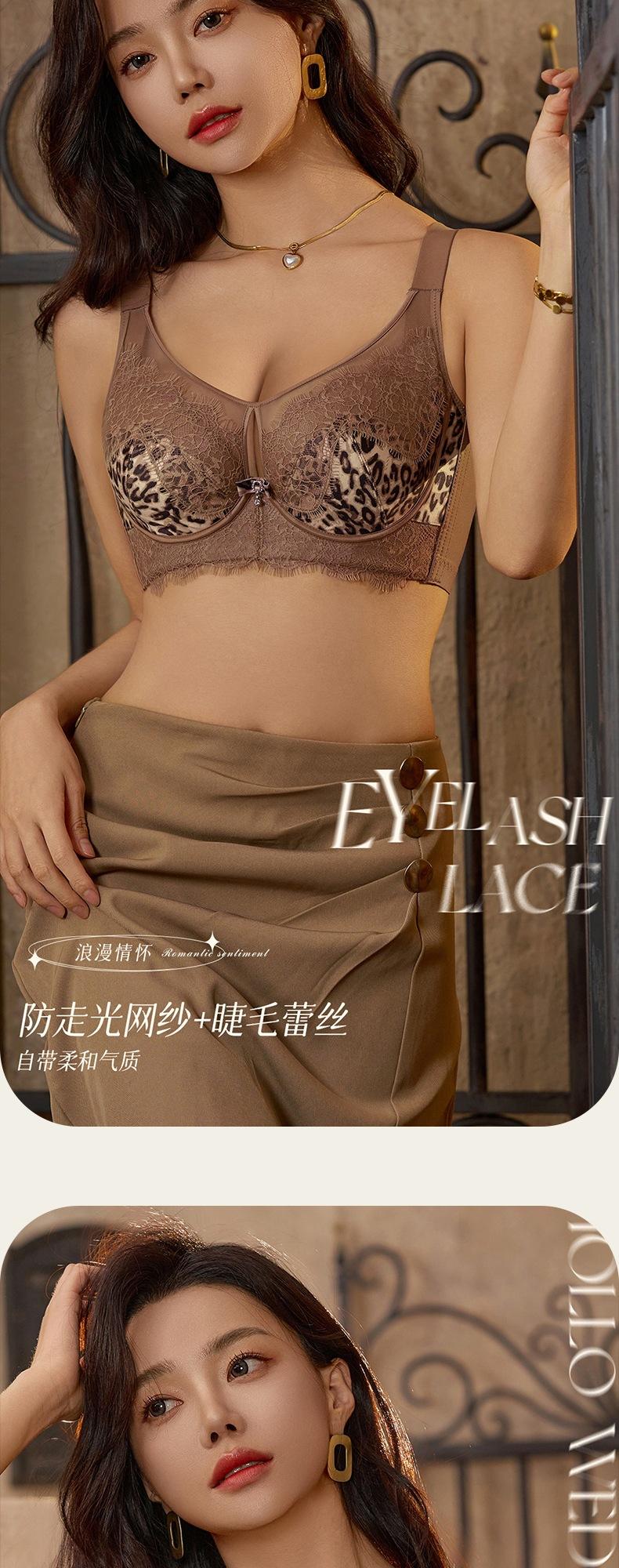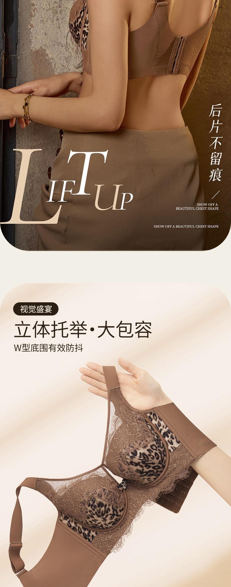 Ropa interior de talla grande para mujer, sin costuras, pecho grande, pequeño, fino, de encaje, sexy, con estampado de leopardo, antiflacidez, ajustable, sujetador 8764