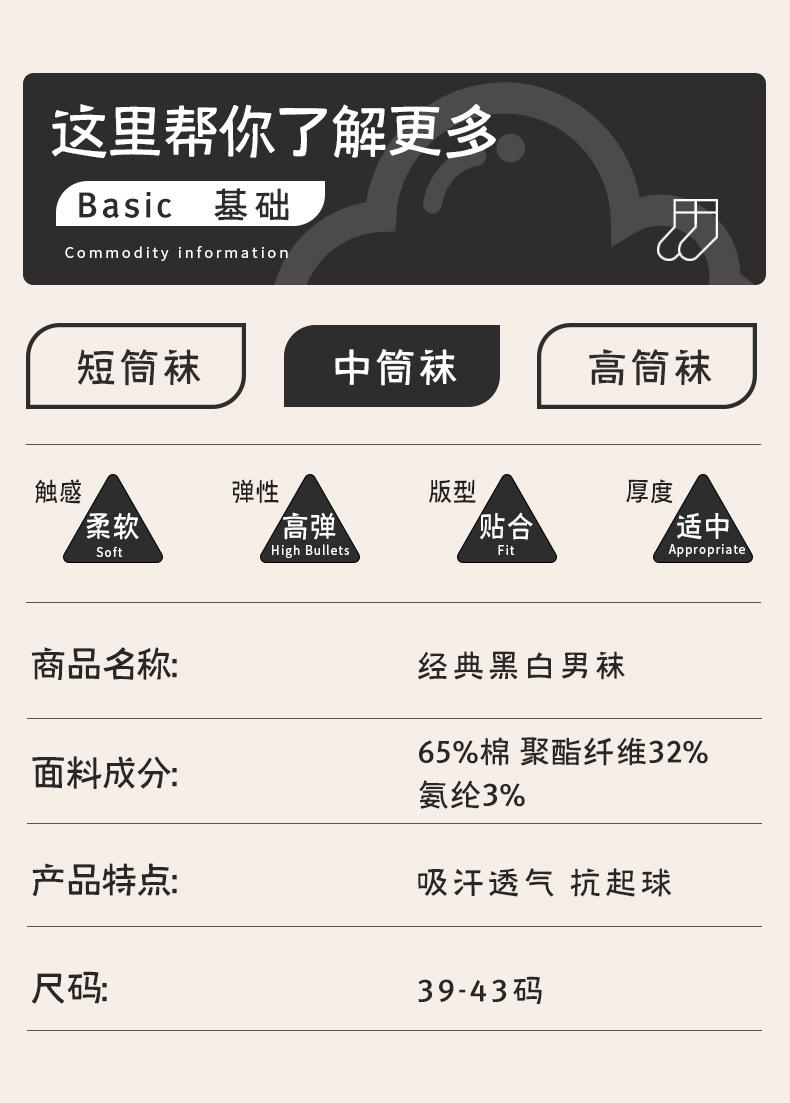 White crew socks, Black crew socks, White medium tube, Black medium tube, White long tube, Black long tube