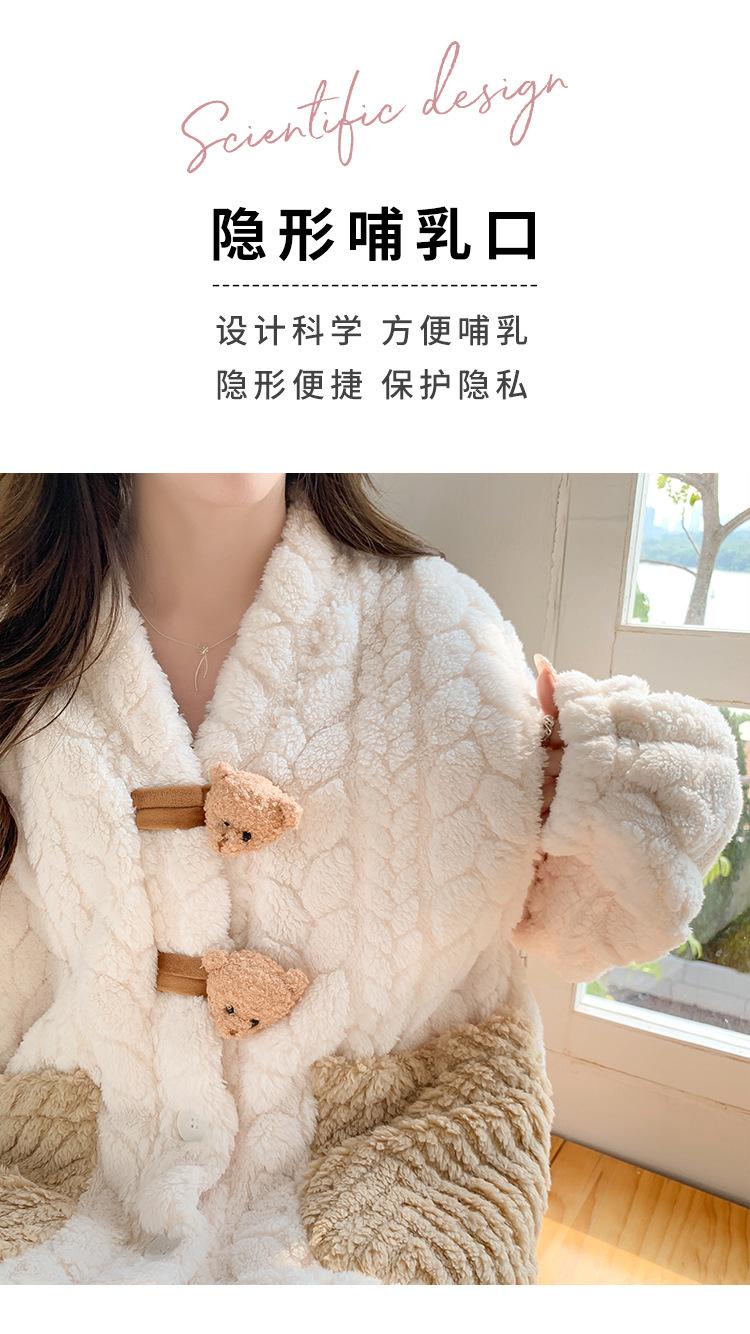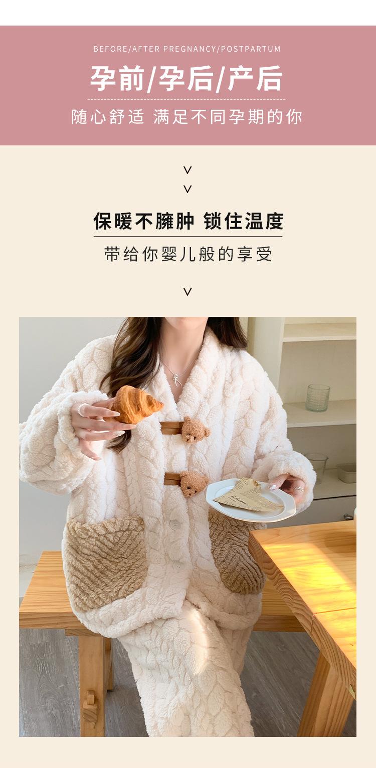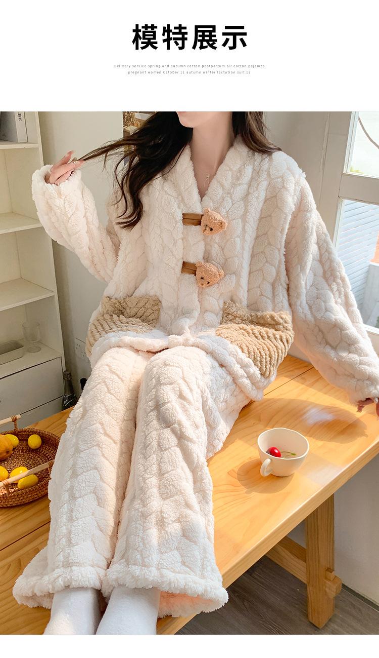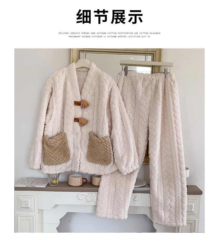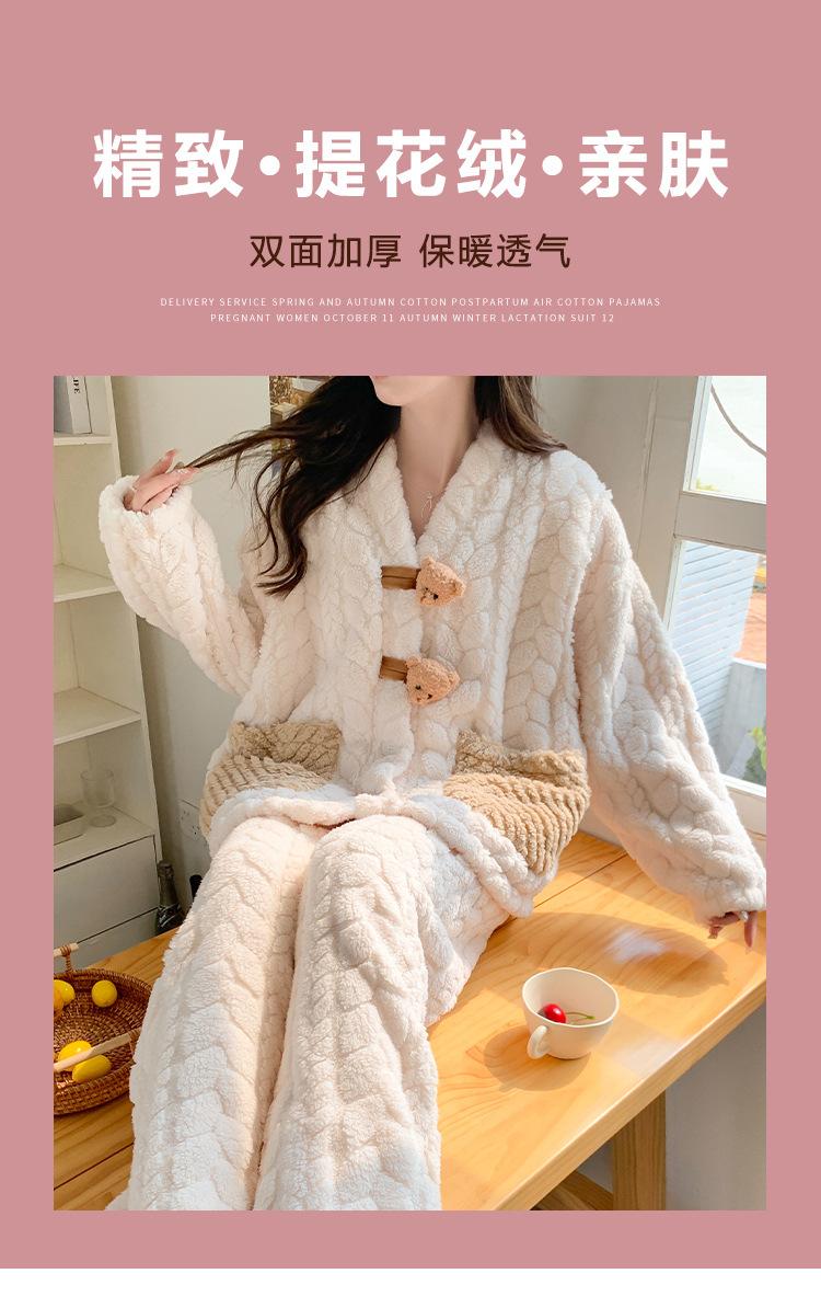 Pijama de terciopelo para mujer embarazada, traje de luna nueva de otoño e invierno, pijama de franela coral polar para mujer, traje de lactancia posparto.