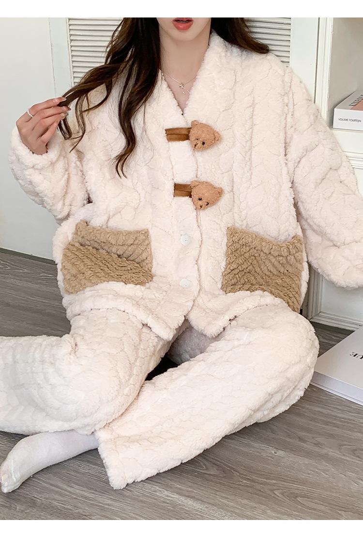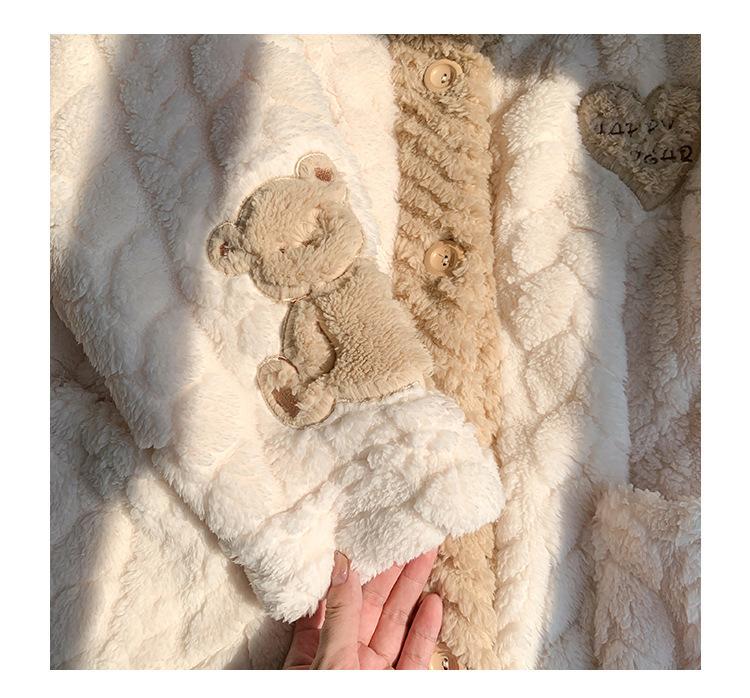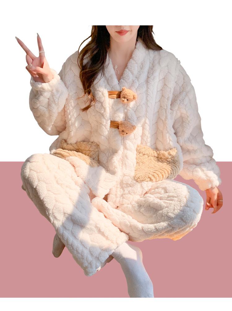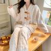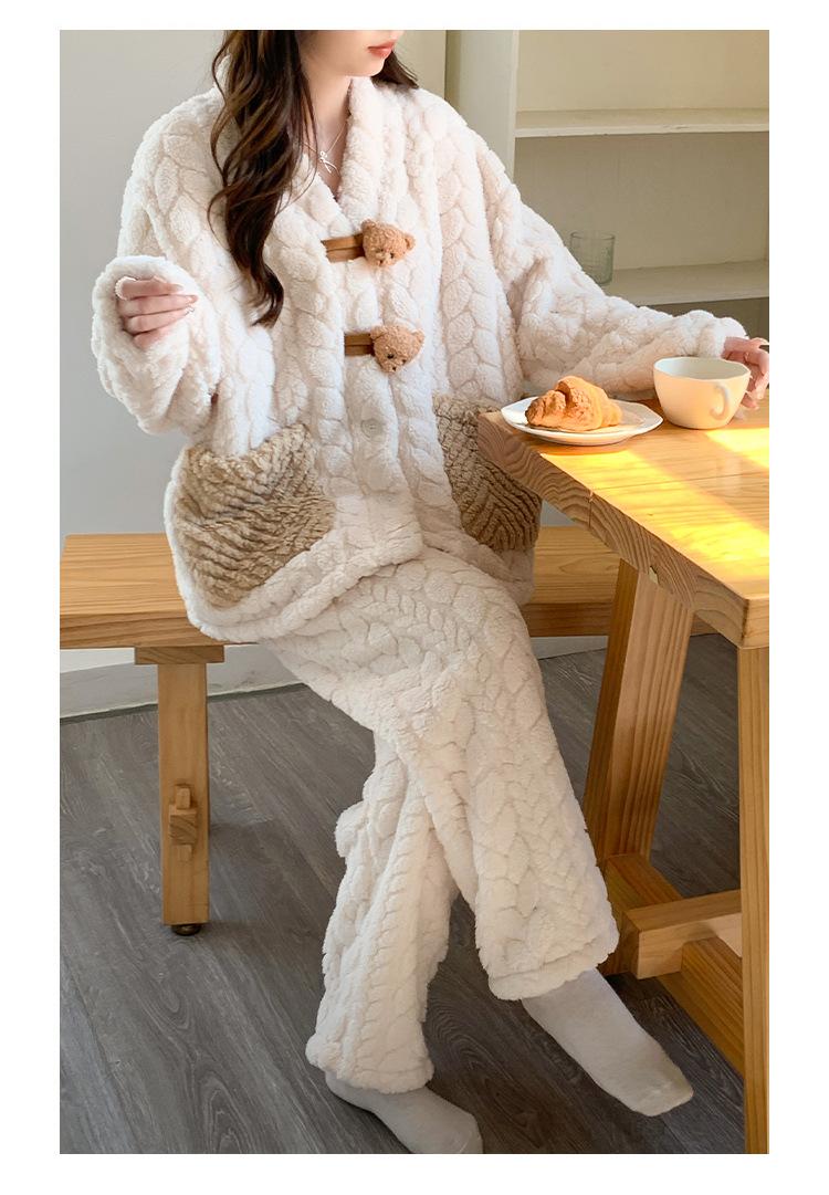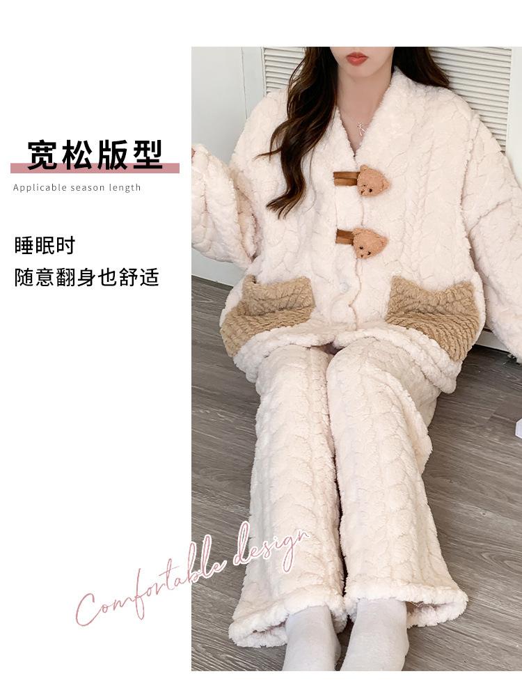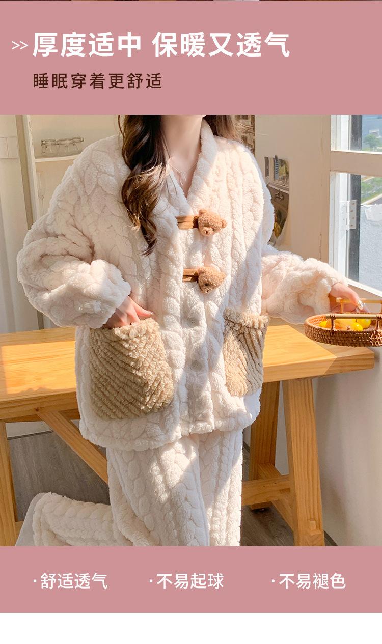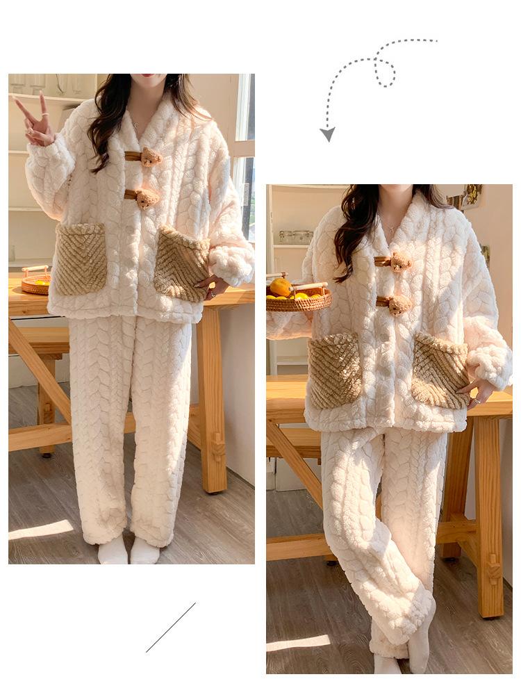 Pijama de terciopelo para mujer embarazada, traje de luna nueva de otoño e invierno, pijama de franela coral polar para mujer, traje de lactancia posparto.