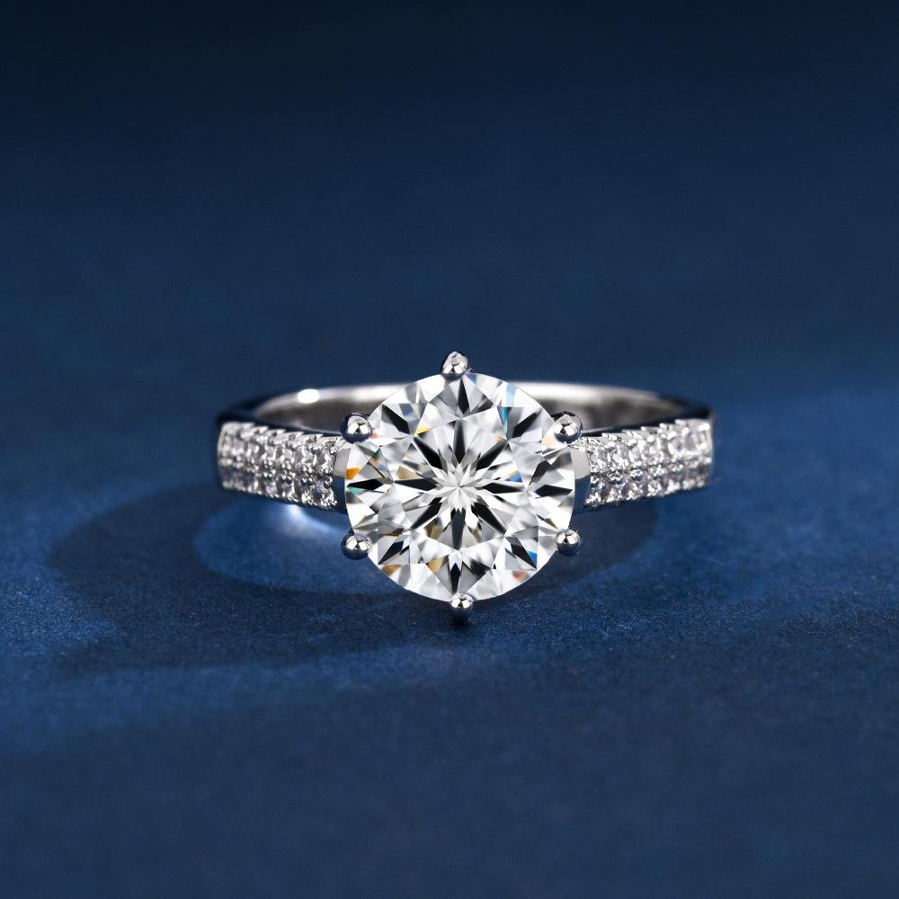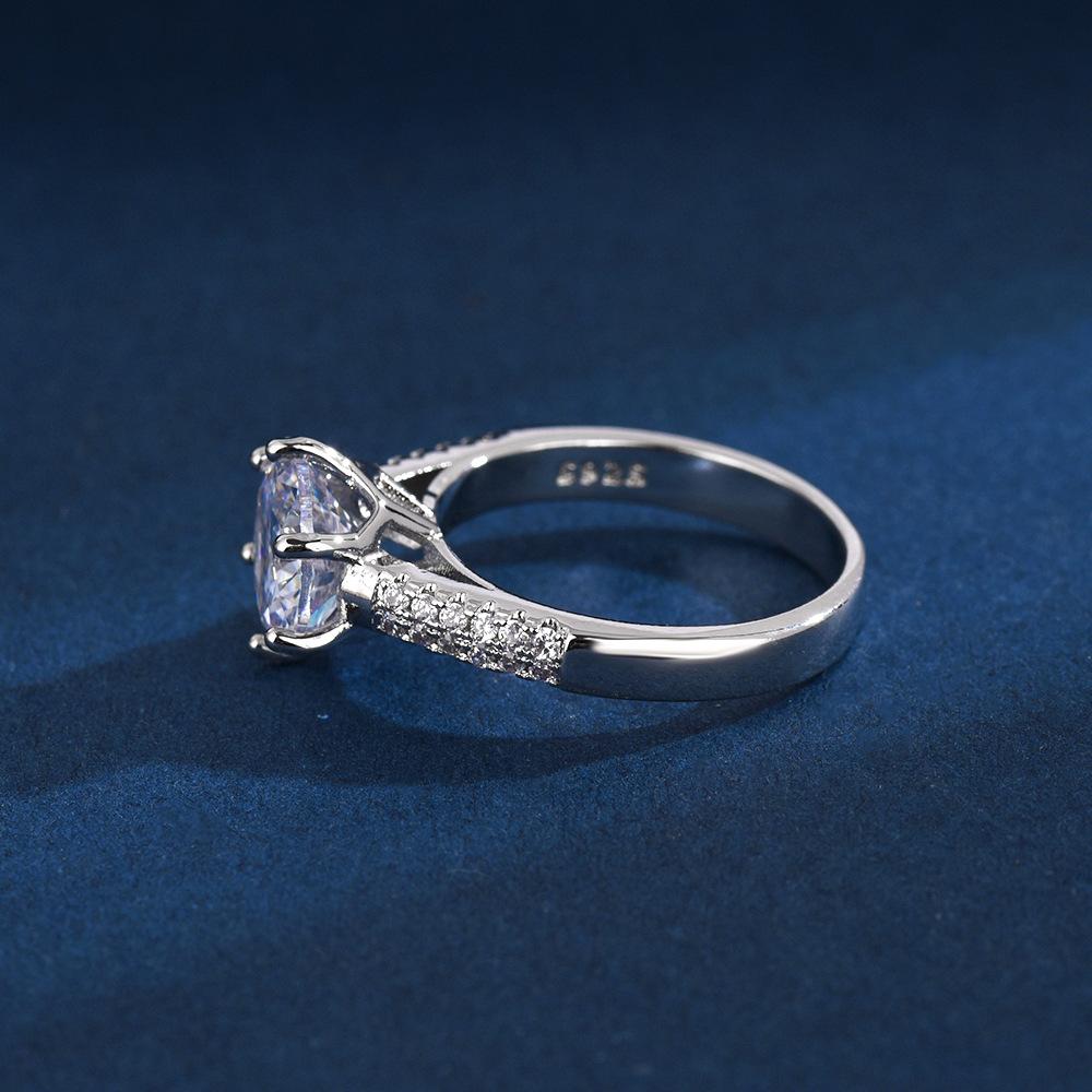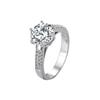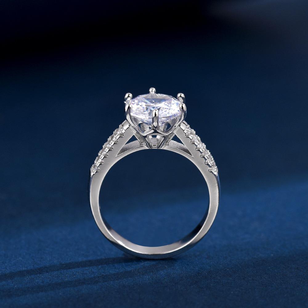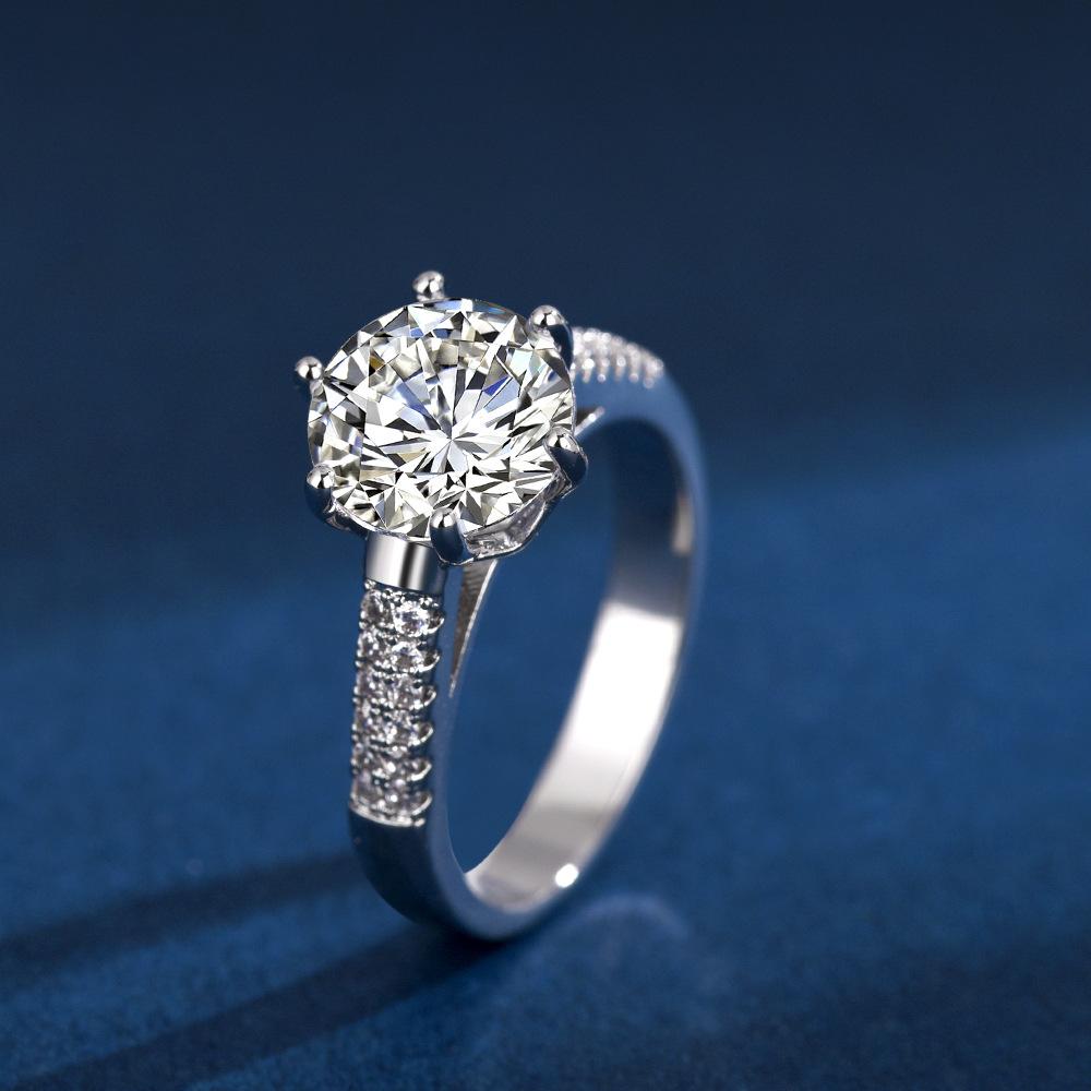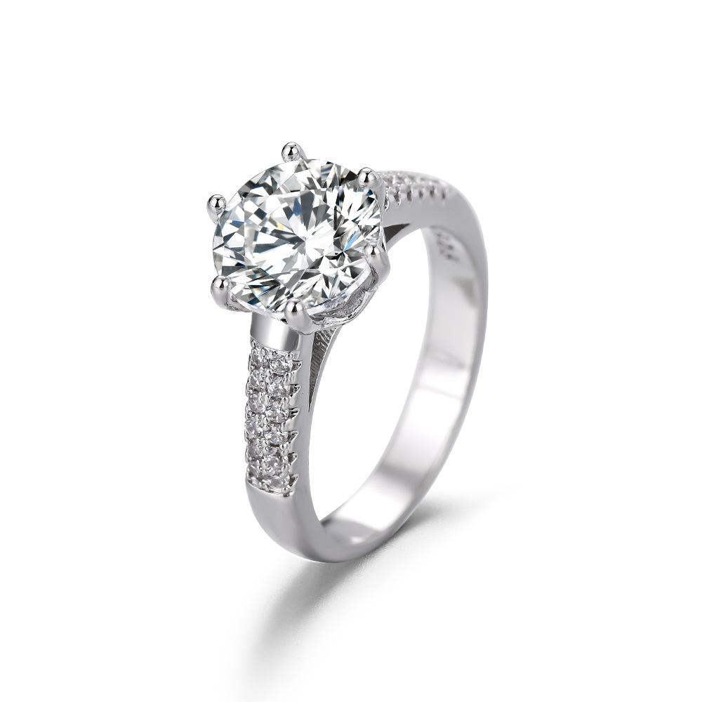 Anillo liso de cobre blanco con corona de seis garras para mujer, popular en Europa y América, 2 quilates, con diamante de imitación para propuesta de matrimonio
