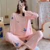 Pijamas de mujer de primavera y otoño de imitación de algodón con encaje dulce de manga larga con lazo de dibujos animados, ropa pequeña y fresca para el hogar, traje al por mayor