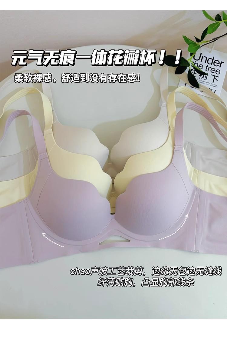 Sujetador Parammary Anti-Caída para Pecho Pequeño con Copa de Pétalo Grande y Ropa Interior sin Costuras para Mujer, Transpirable, sin Aros de Acero, Fijo