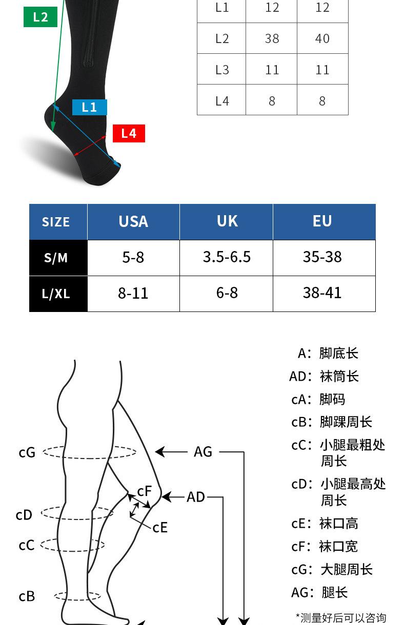Hermosas Medias de Compresión para Piernas para Mujer Forro Mejorado Calcetines con Cremallera Calcetines de Compresión Deportivos Profesionales Absorbentes de Sudor Venta al por Mayor Tubo Medio