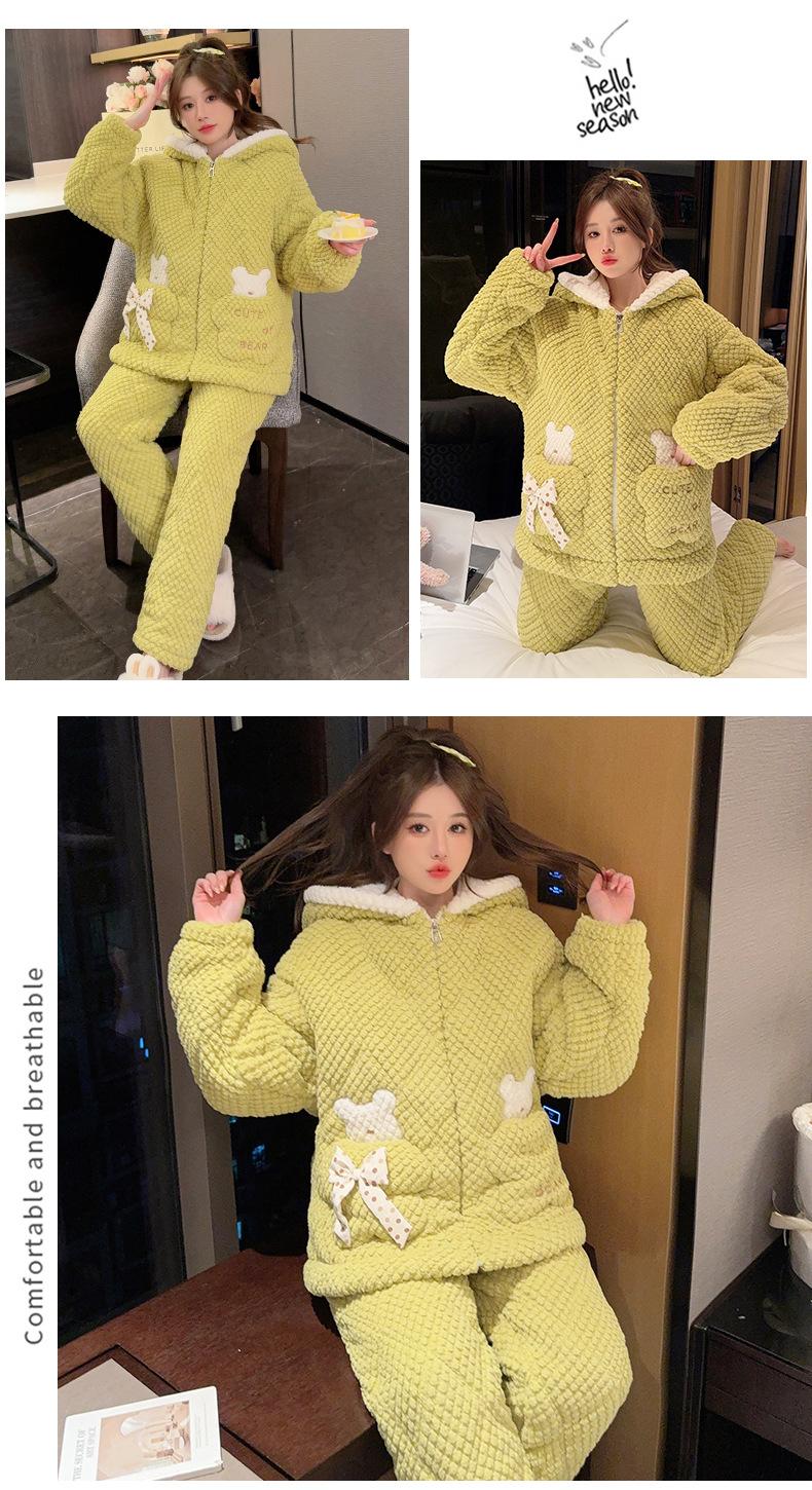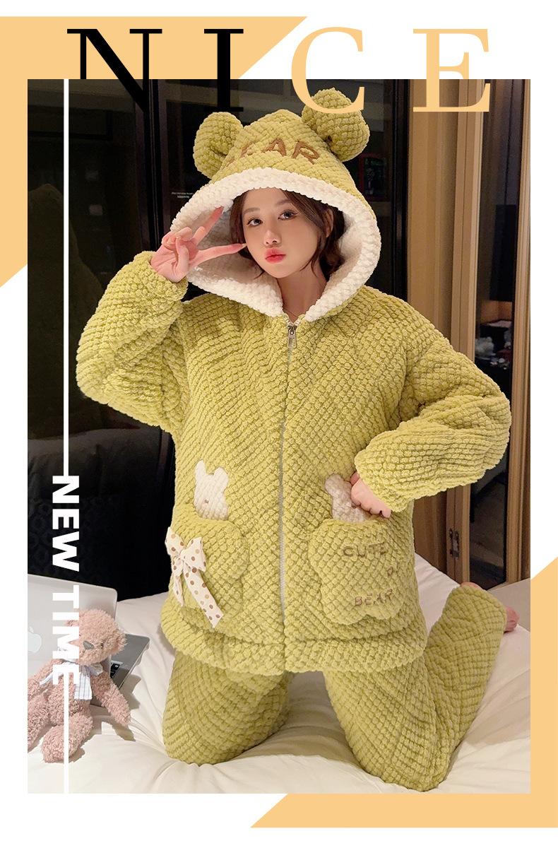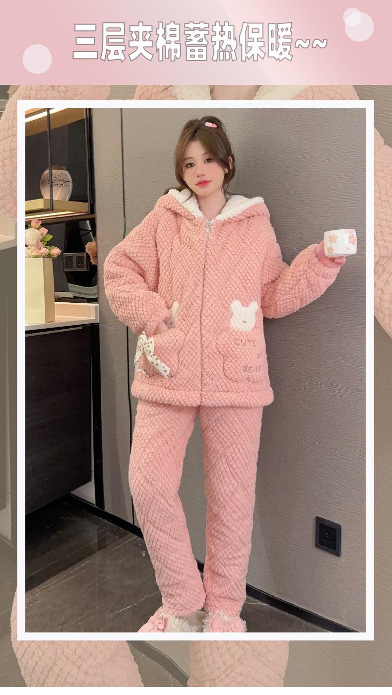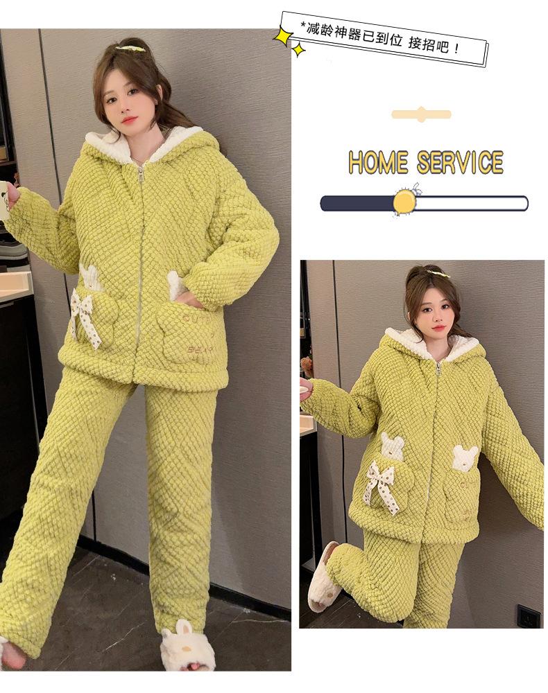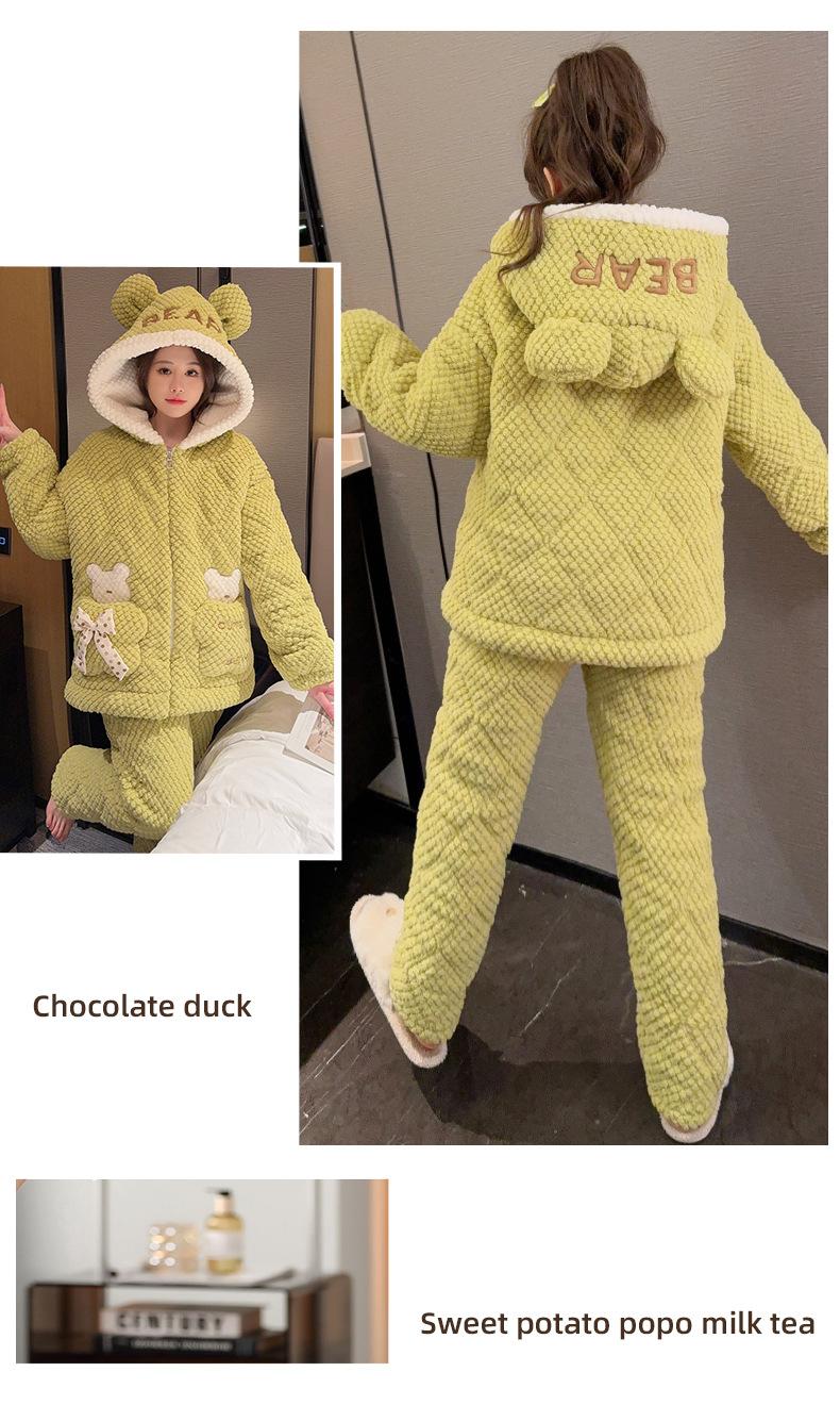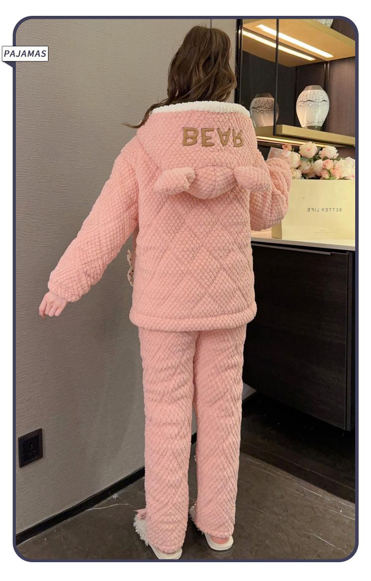 Pijamas de mujer de otoño e invierno de tres capas de algodón grueso de forro polar coral traje de franela de talla grande chica gordita ropa de casa de dibujos animados