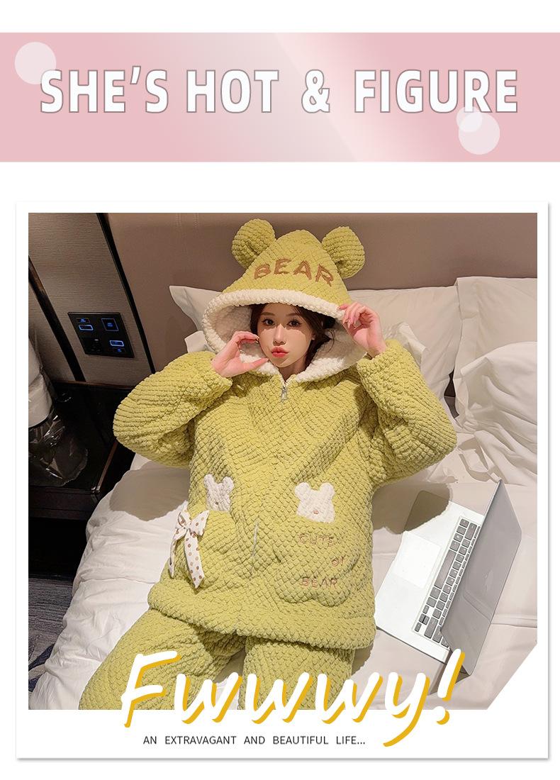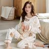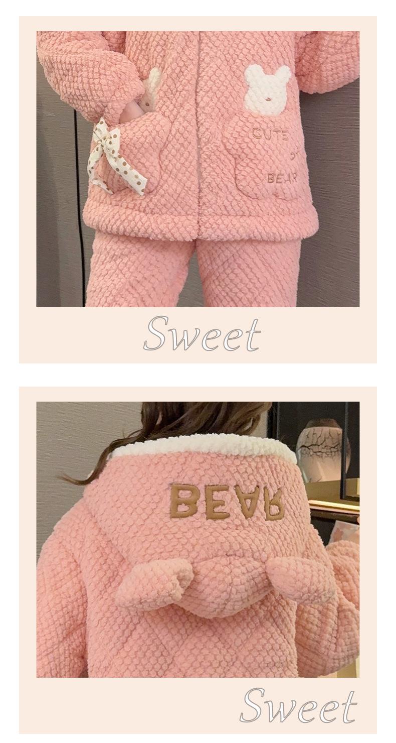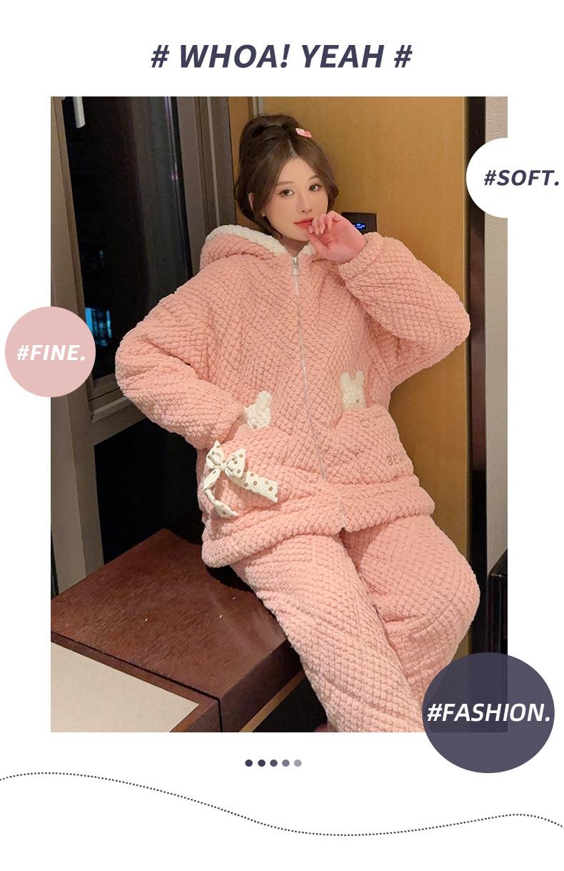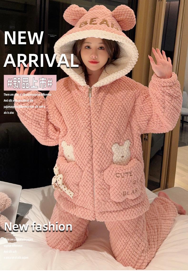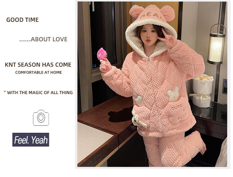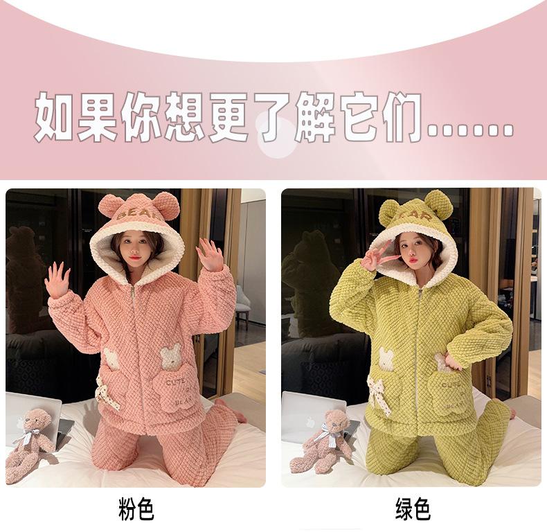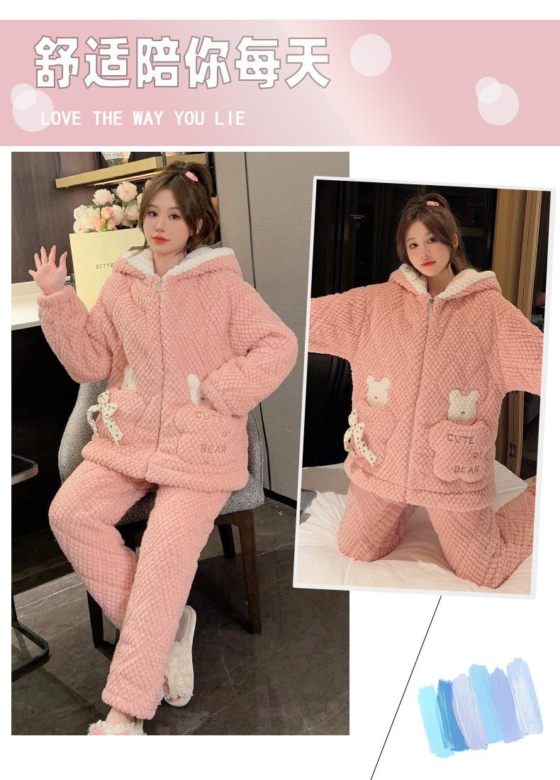 Pijamas de mujer de otoño e invierno de tres capas de algodón grueso de forro polar coral traje de franela de talla grande chica gordita ropa de casa de dibujos animados