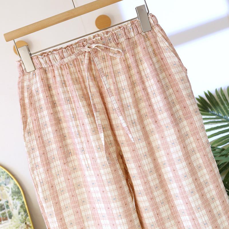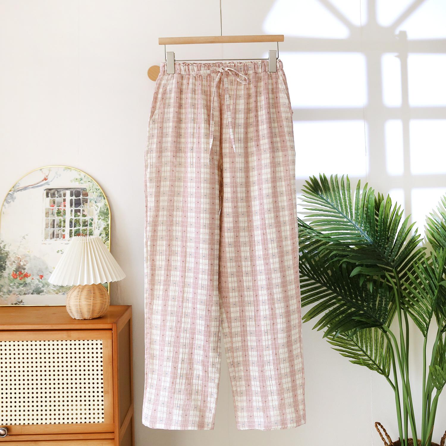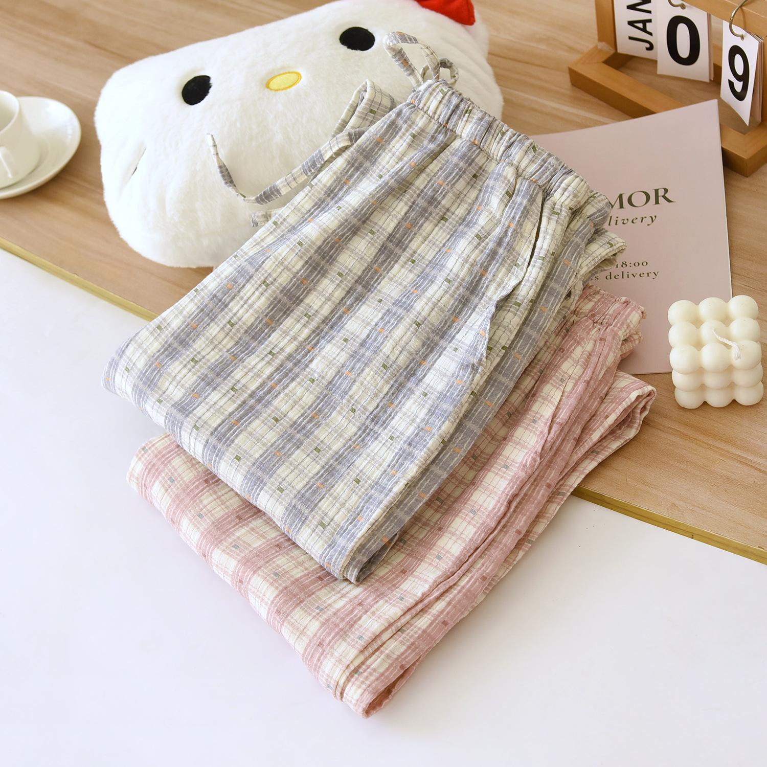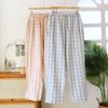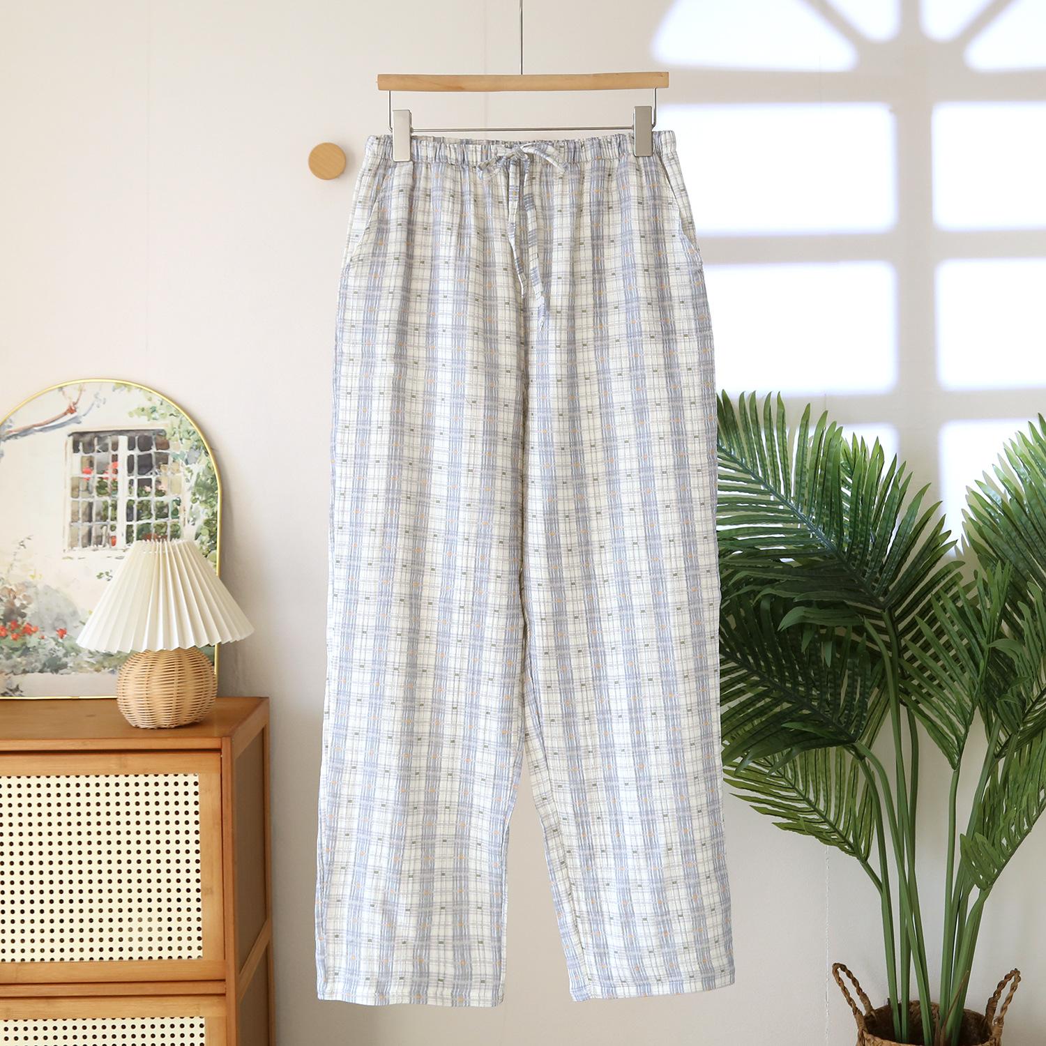 Pantalones de Pijama Finos de Cuatro Estaciones para Pareja Talla Grande Pantalones para Casa Gasa Doble Lavada Pantalones Prellis Sueltos Sencillos para Hombre y Mujer