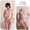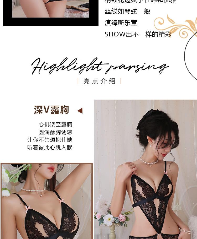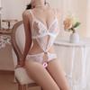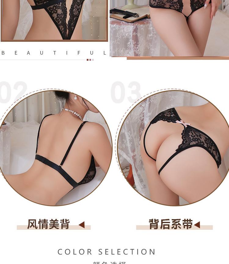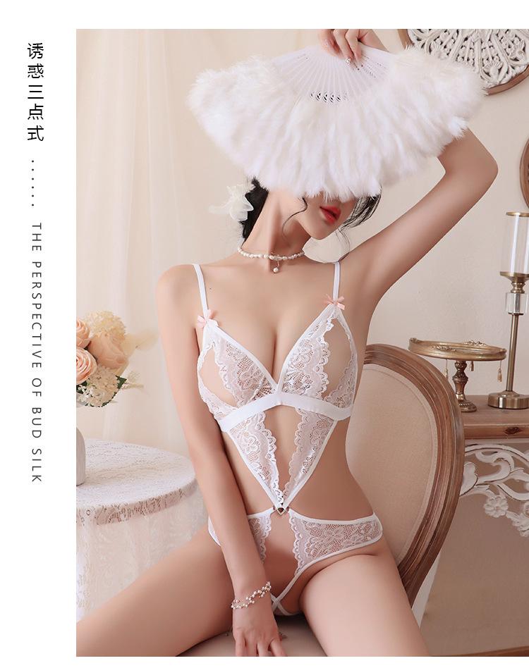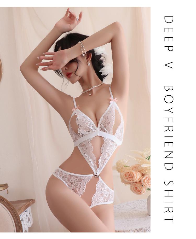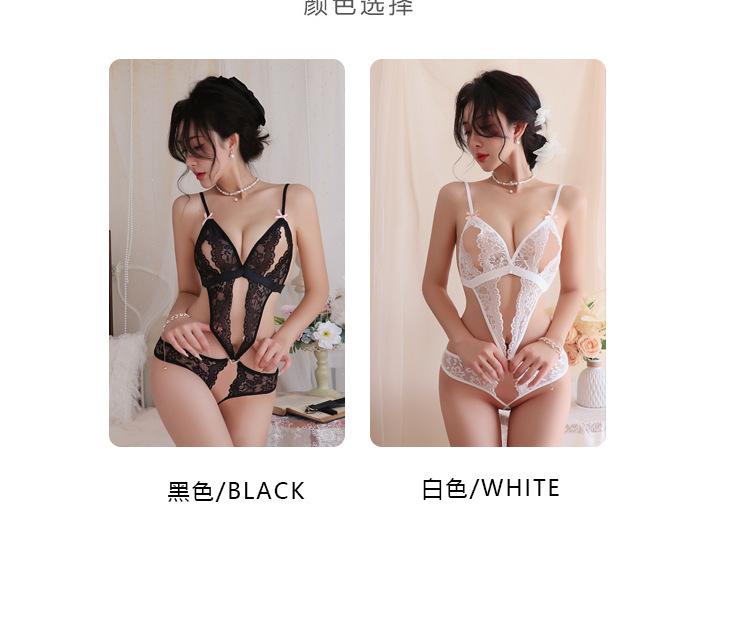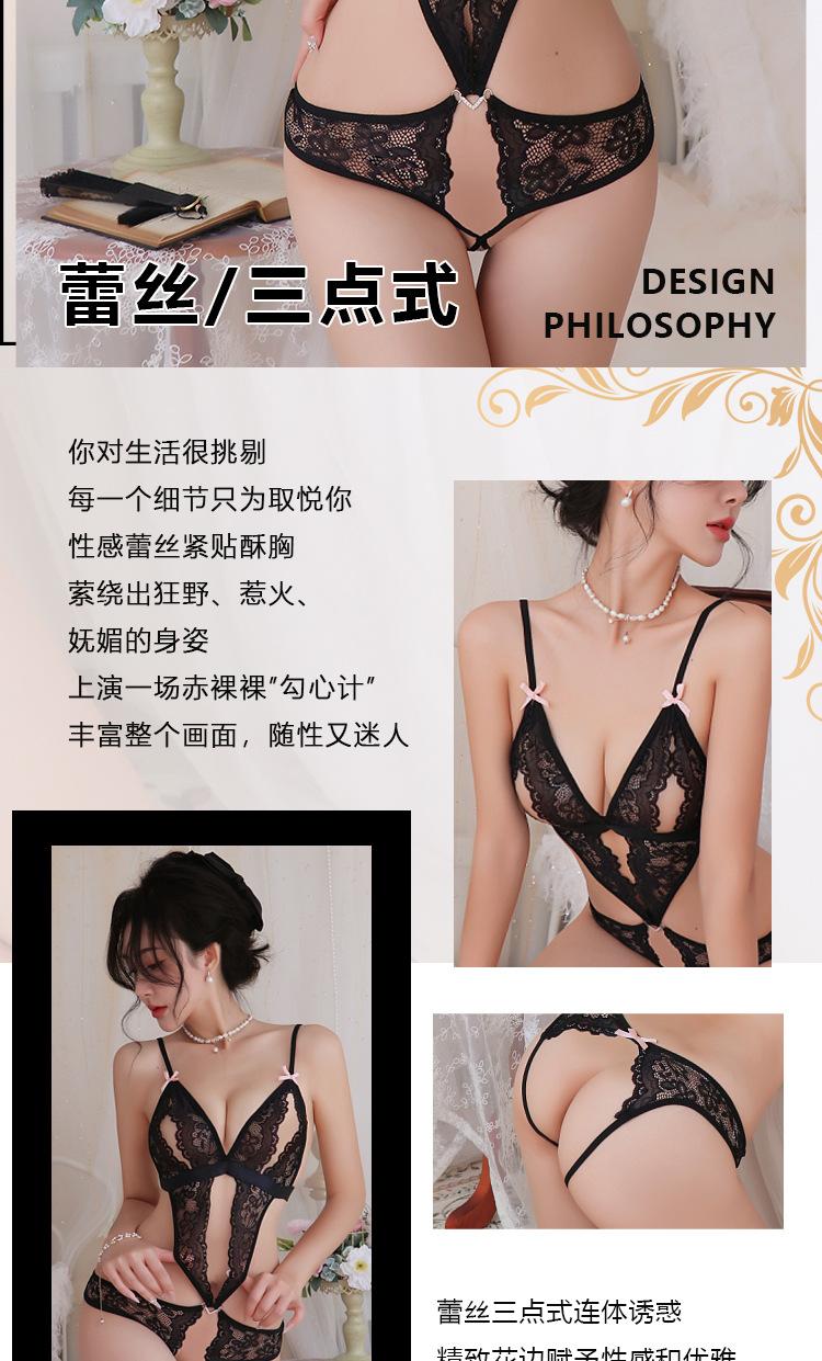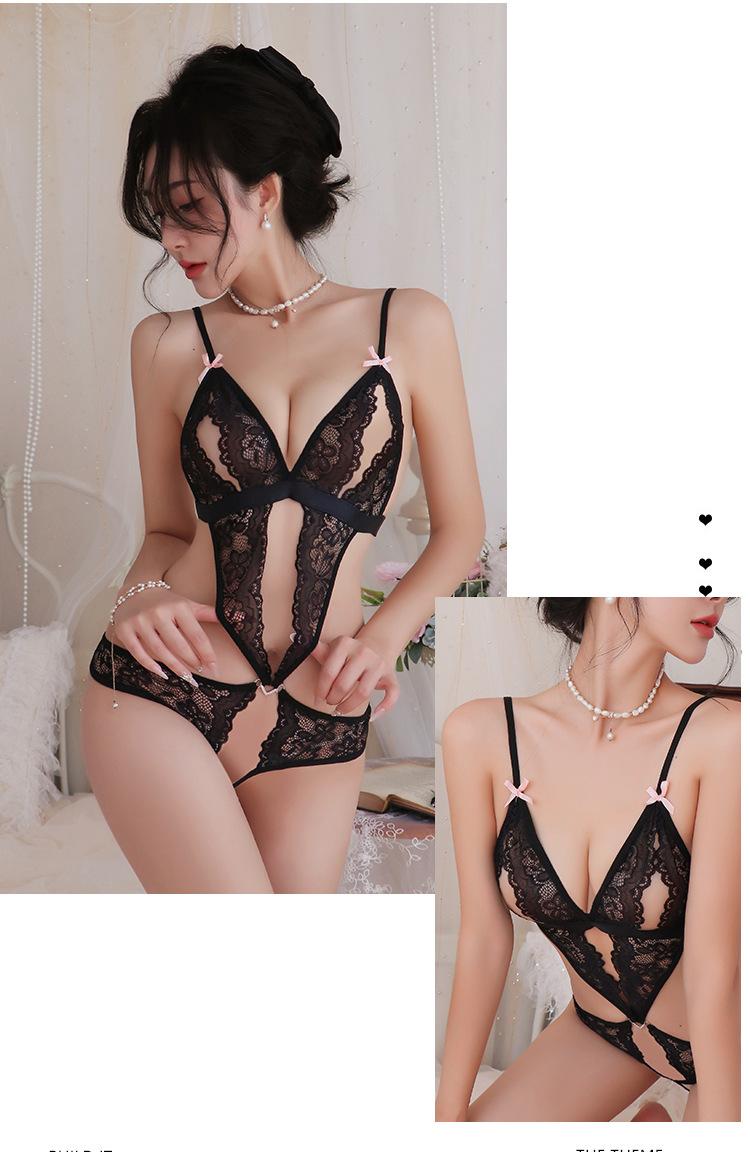 Lencería sexy de noche larga, mono de tentación de encaje sexy, uniforme de apertura de tres puntos, pijama de mujer 2025