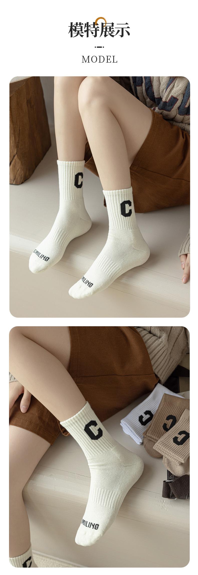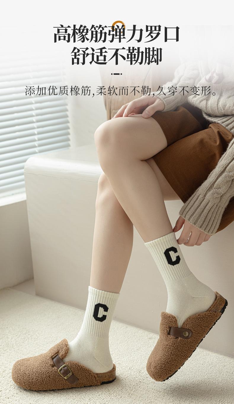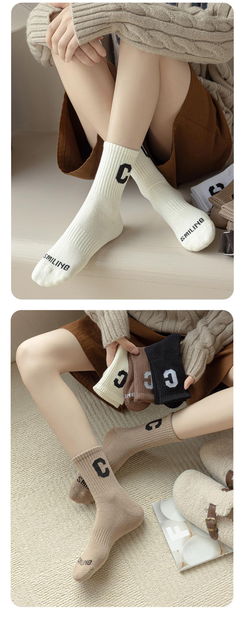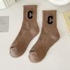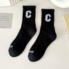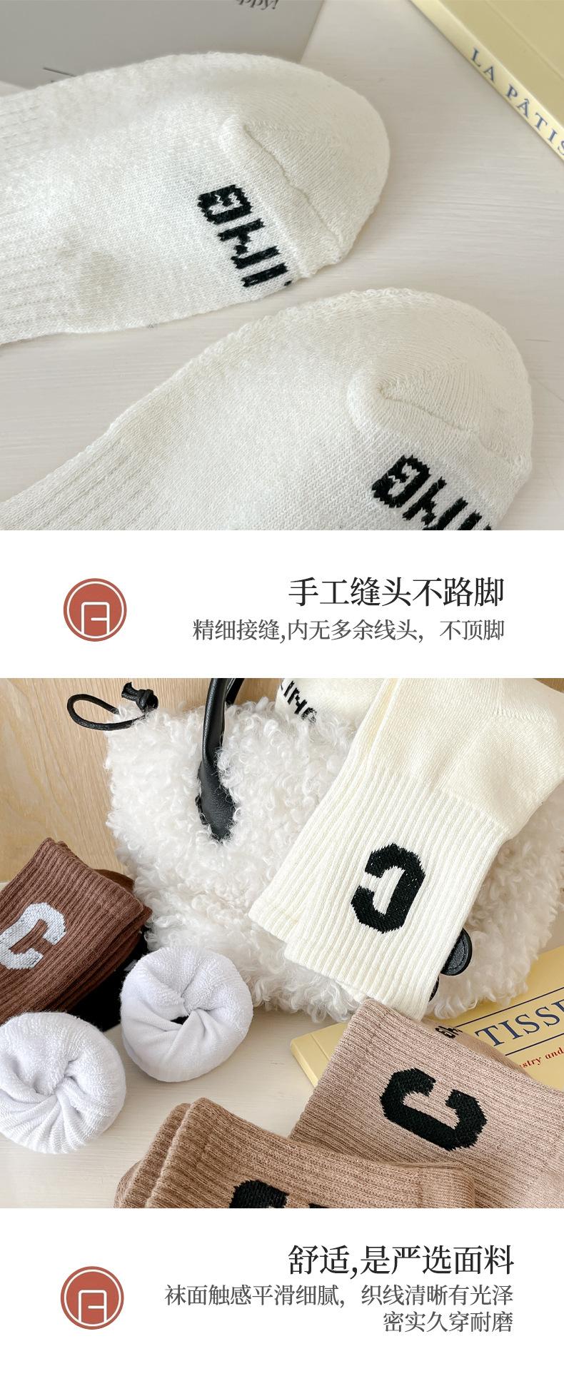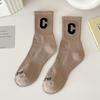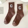Calcetines de felpa versátiles e informales para niños, calcetines de tubo con bordado de letra C en inglés, calcetines deportivos gruesos y cálidos para otoño e invierno.