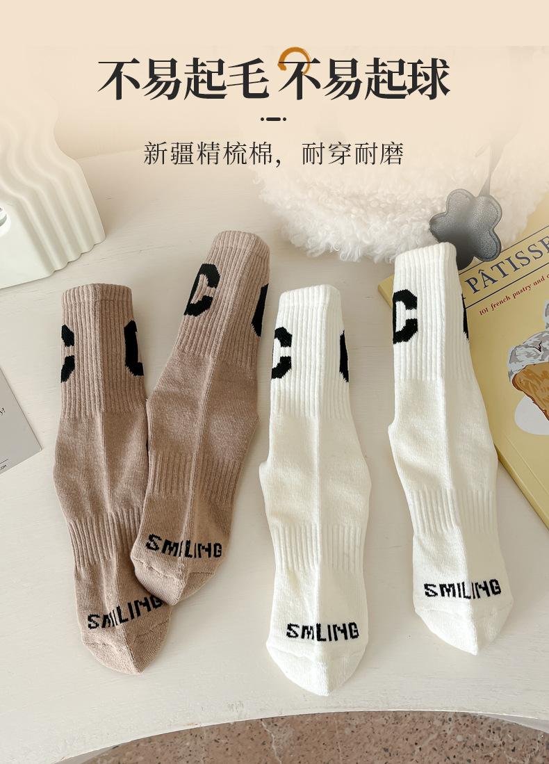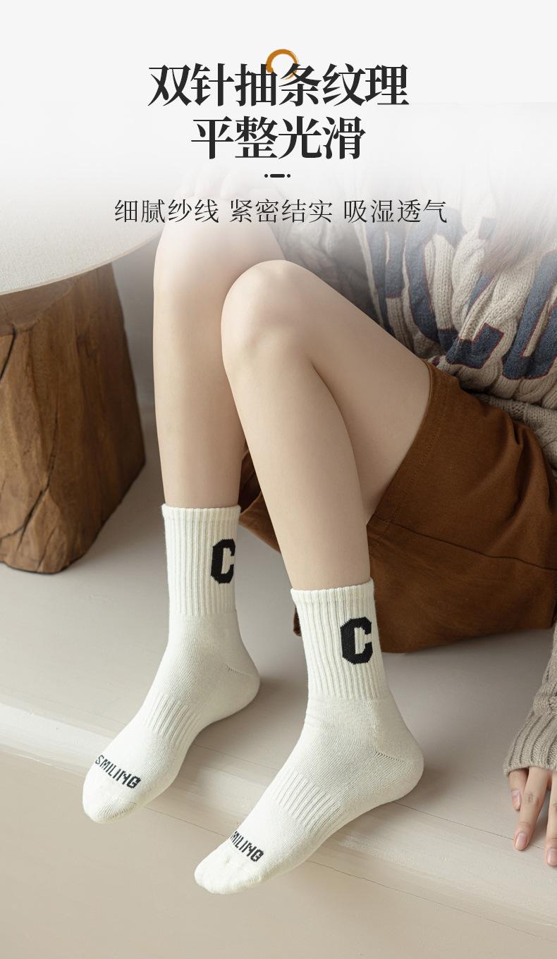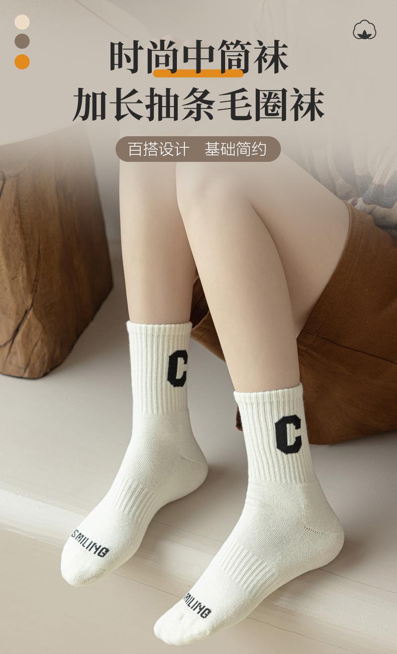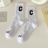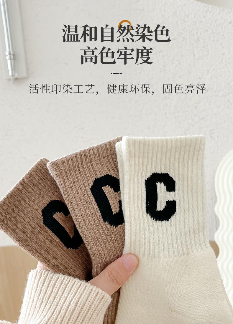 Calcetines de felpa versátiles e informales para niños, calcetines de tubo con bordado de letra C en inglés, calcetines deportivos gruesos y cálidos para otoño e invierno.