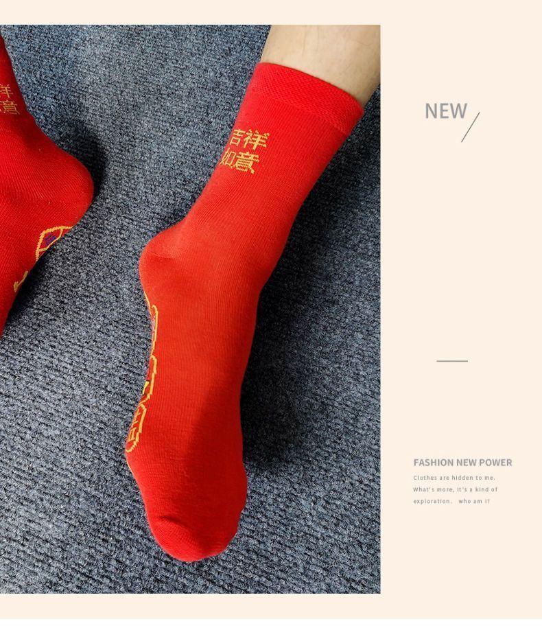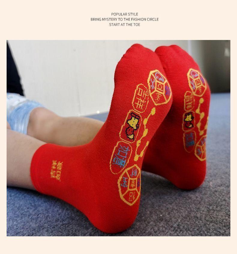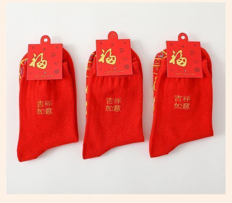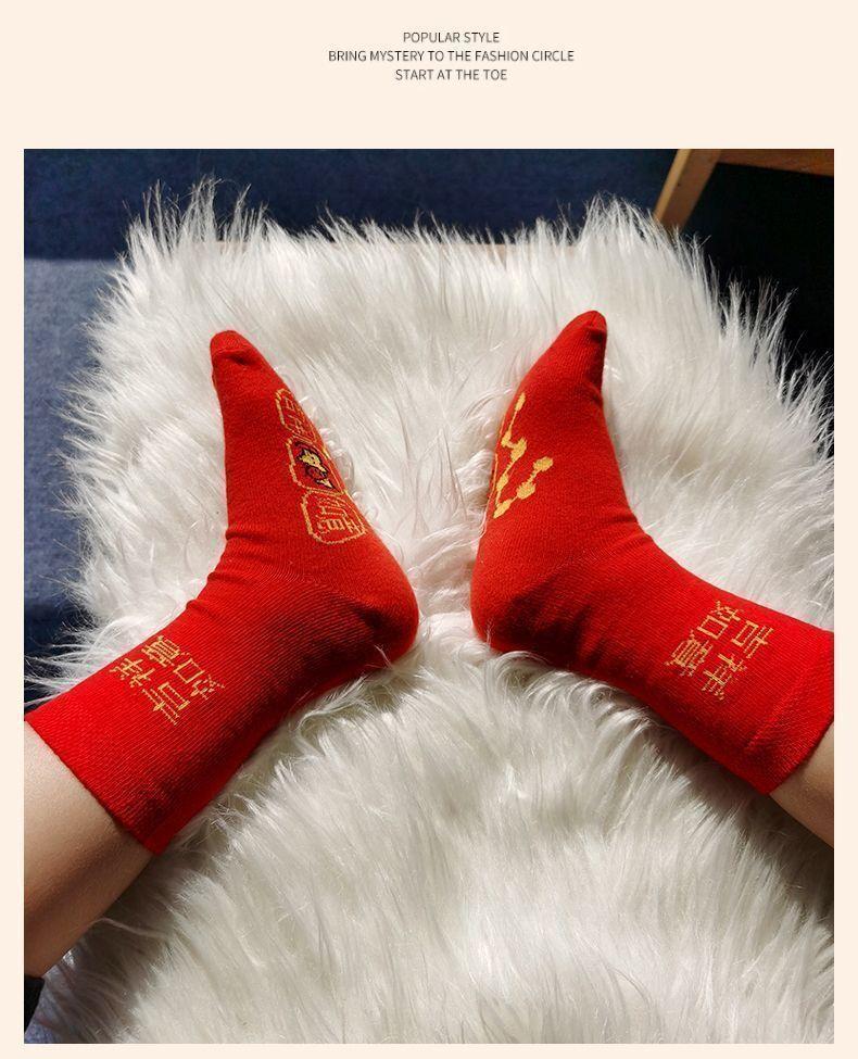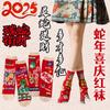 Calcetines rojos del Año de la Serpiente para hombre y mujer, calcetines de boda para pareja, calcetines medianos, calcetines grandes de algodón rojos de otoño e invierno del Año de la Serpiente.