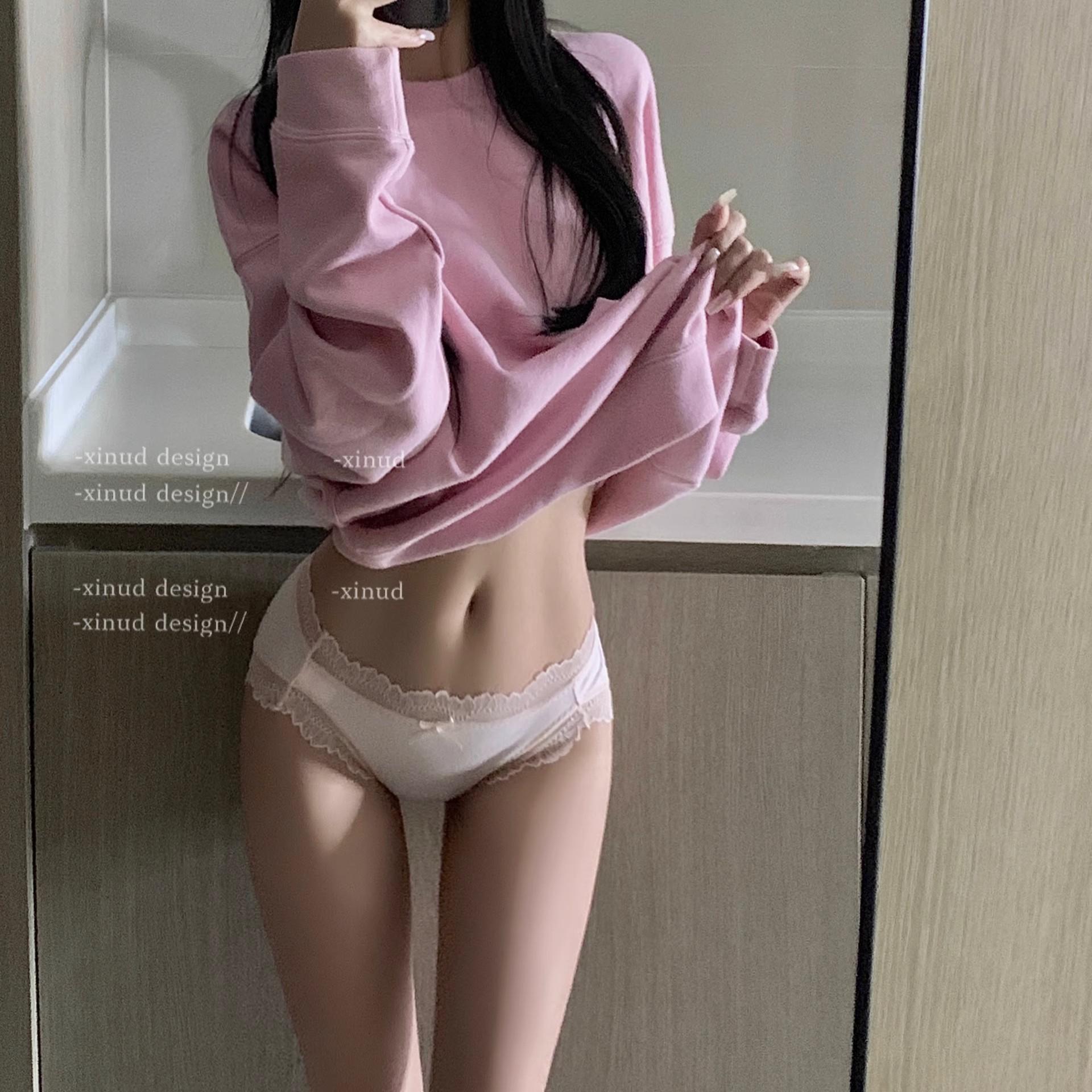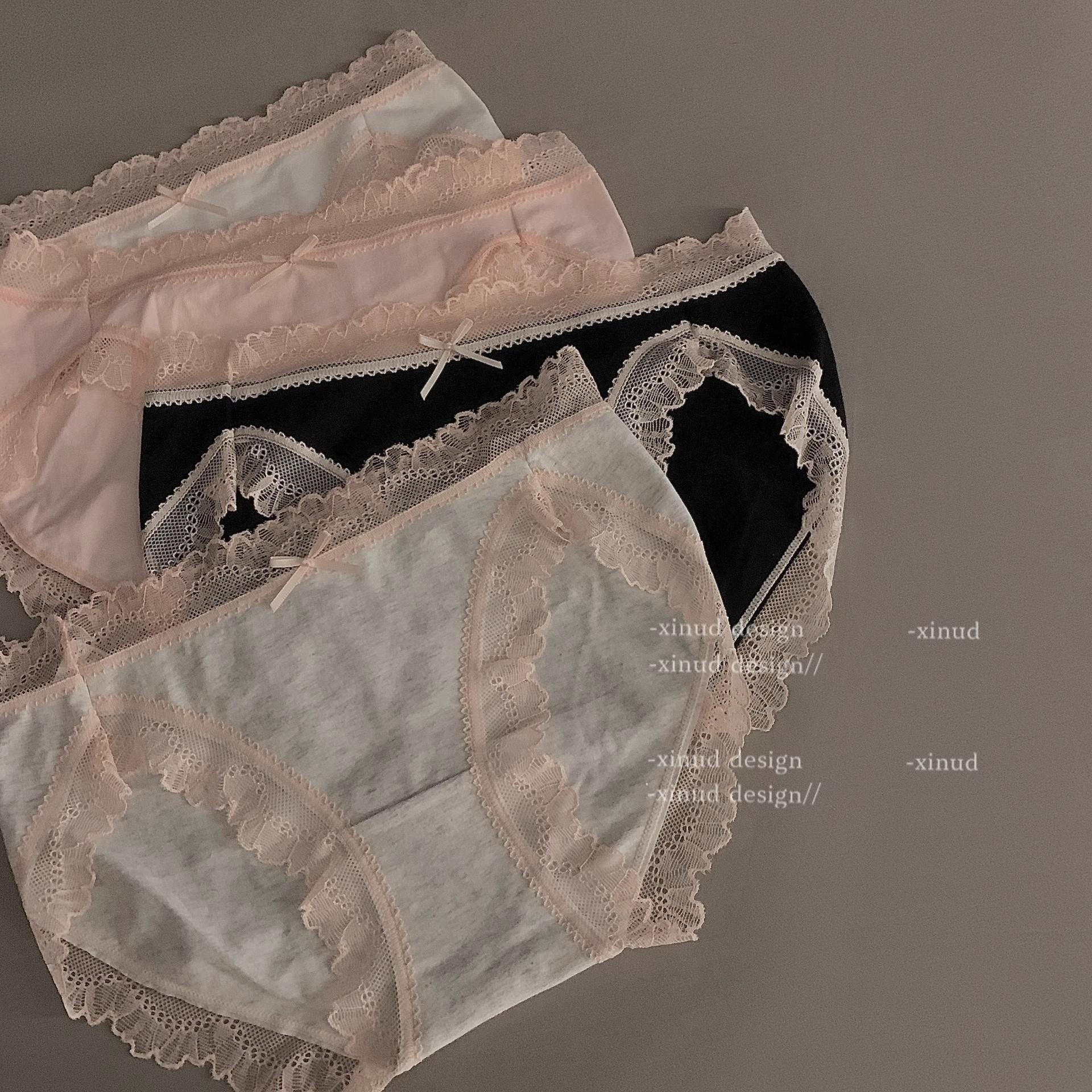 Una generación de ropa interior de algodón con encaje sexy de viento puro para mujer, calzoncillos de cadera de cintura baja para estudiante
