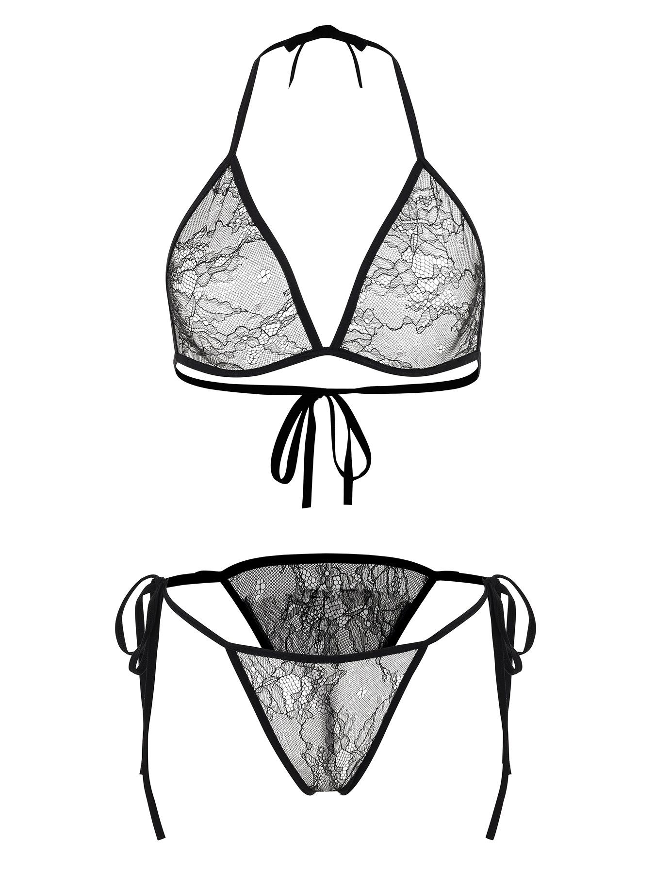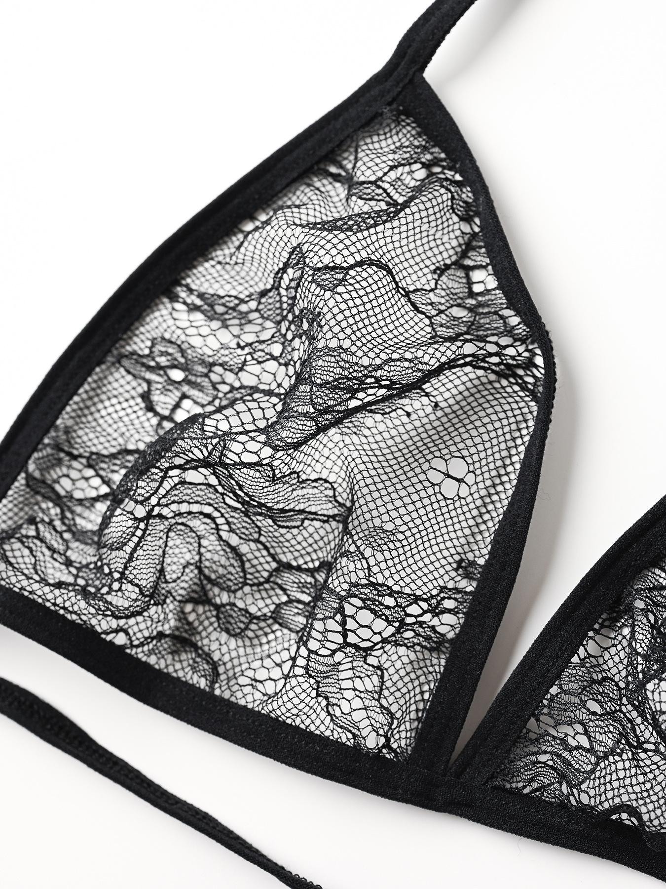 Traje de tres puntos de encaje sexy con entrepierna abierta, tanga, ropa interior sexy, sujetador con tiras, ropa interior sexy 11002