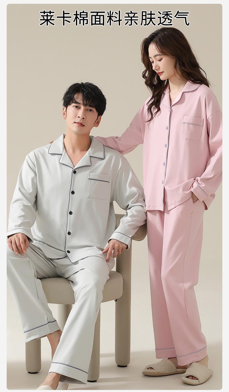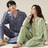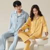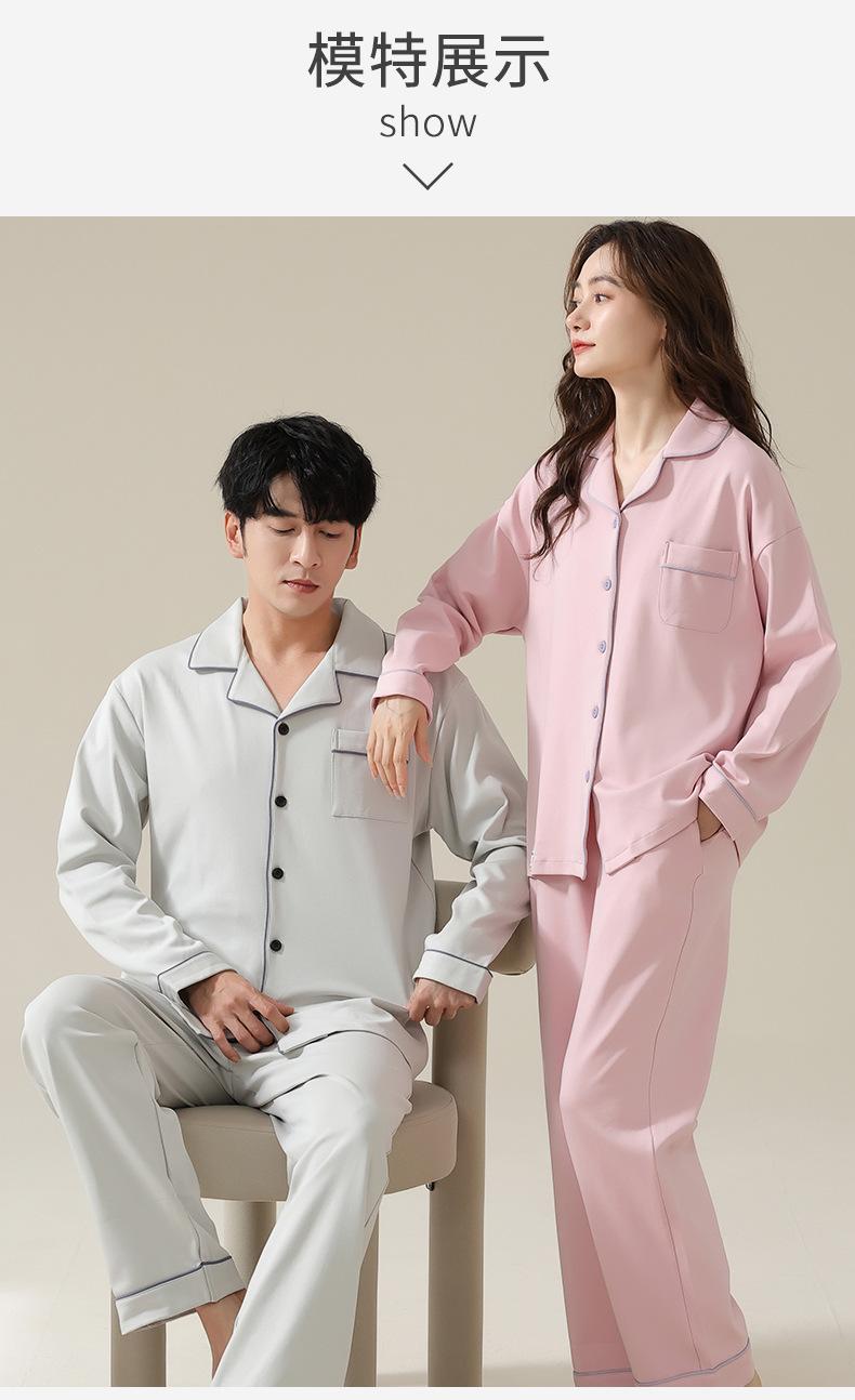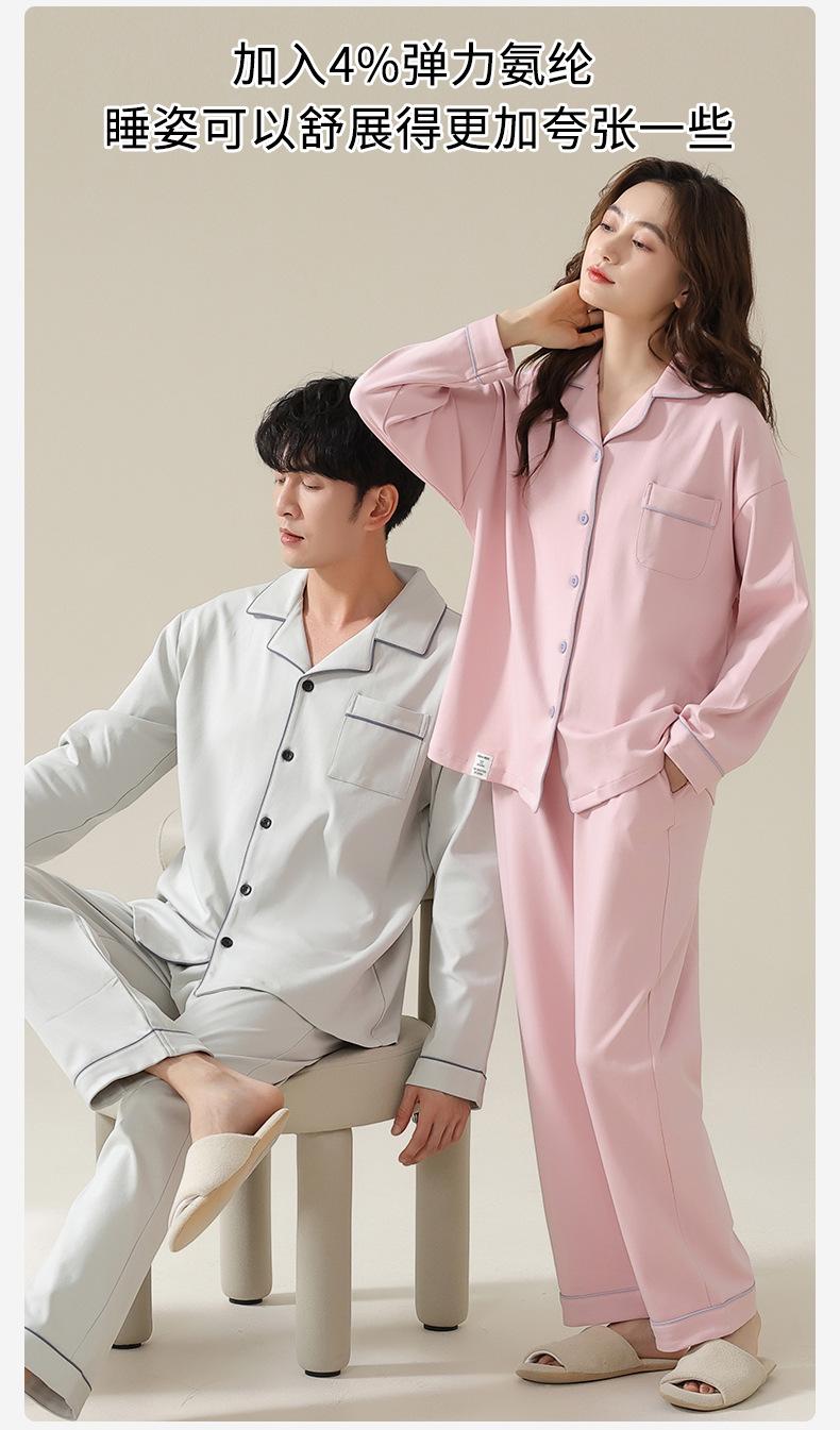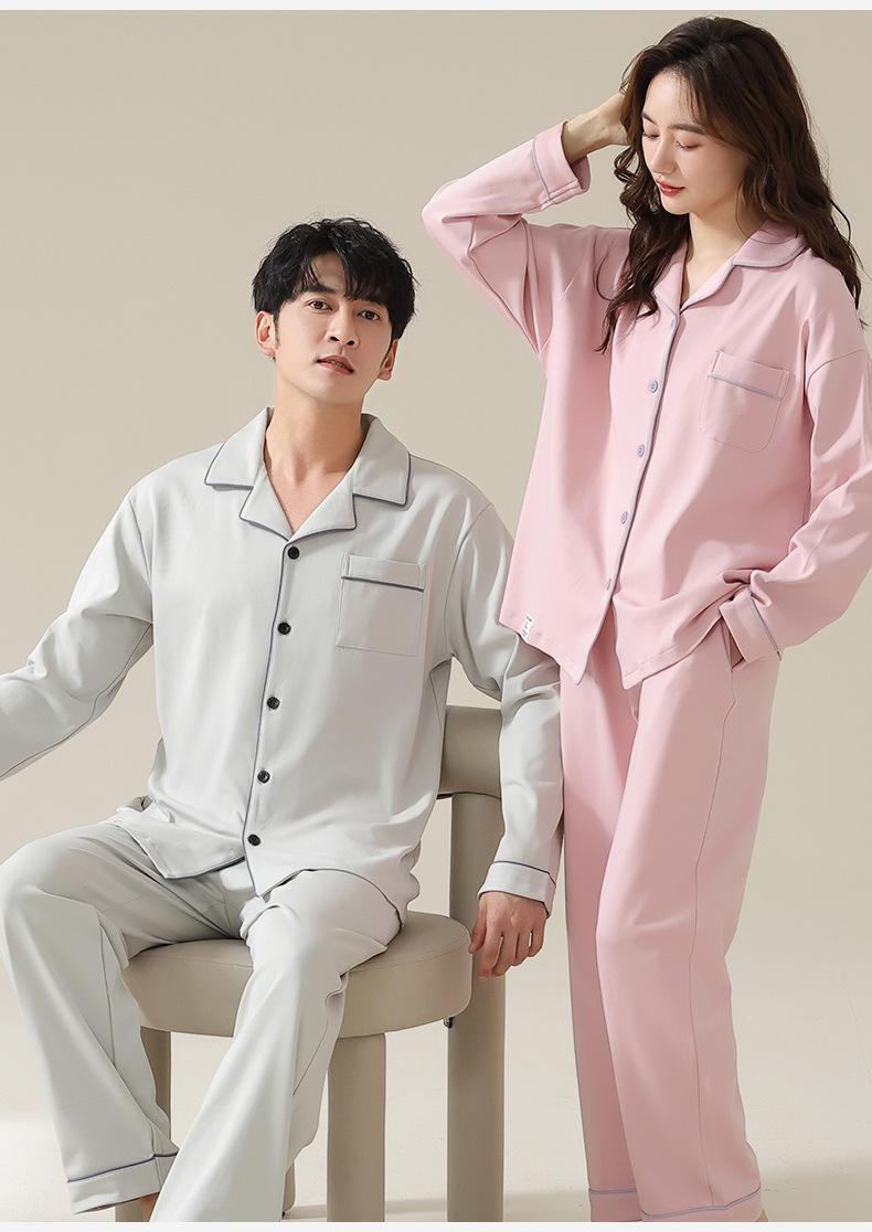 Pijamas de Pareja Primavera y Otoño Manga Larga Pull Rack Algodón Puro Solapa Cárdigan Sencillo Ropa de Exterior Ropa para el Hogar para Hombre y Mujer Traje de Moda