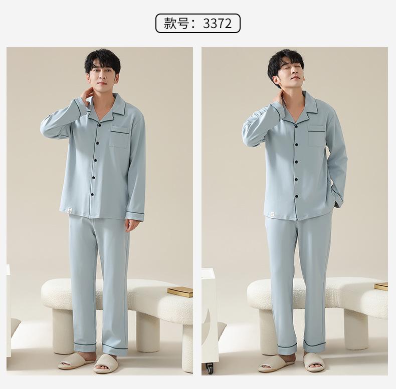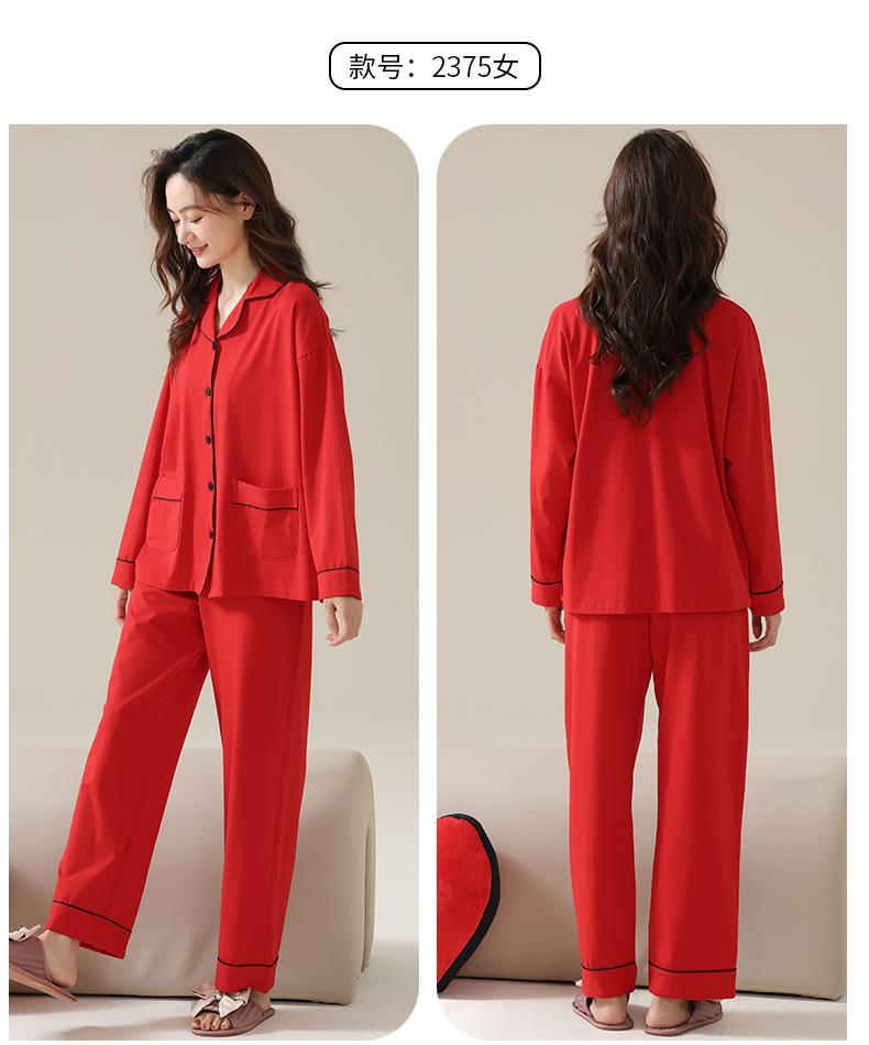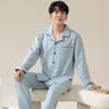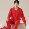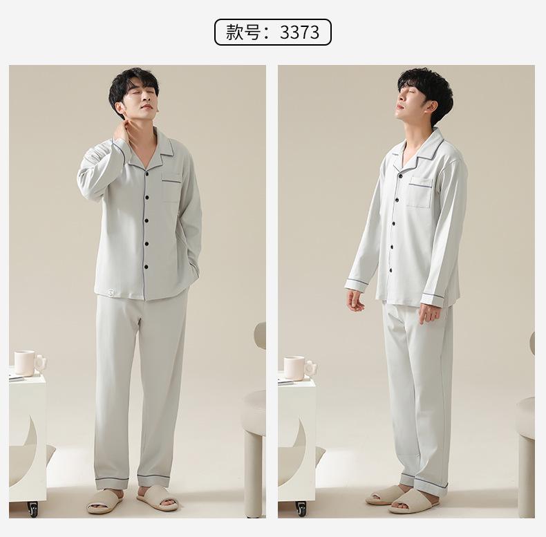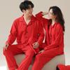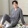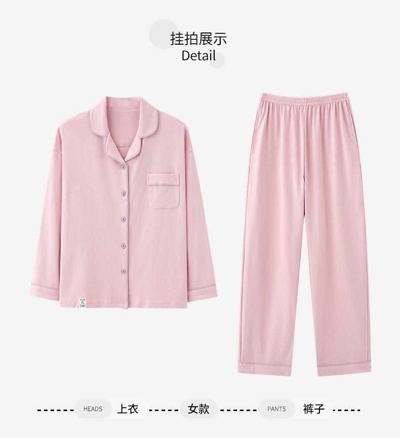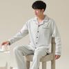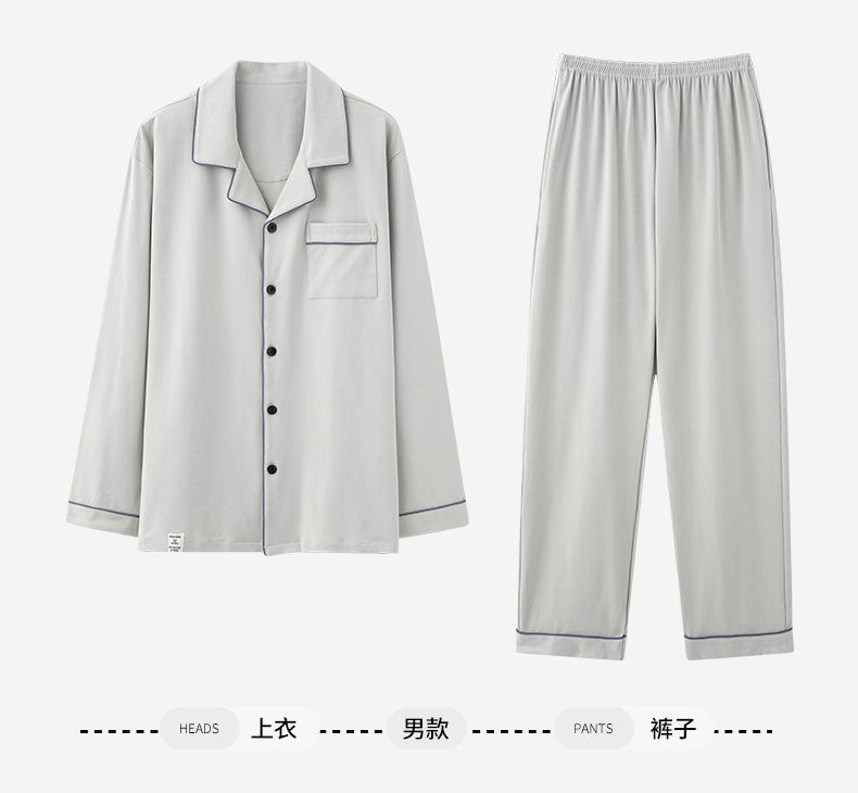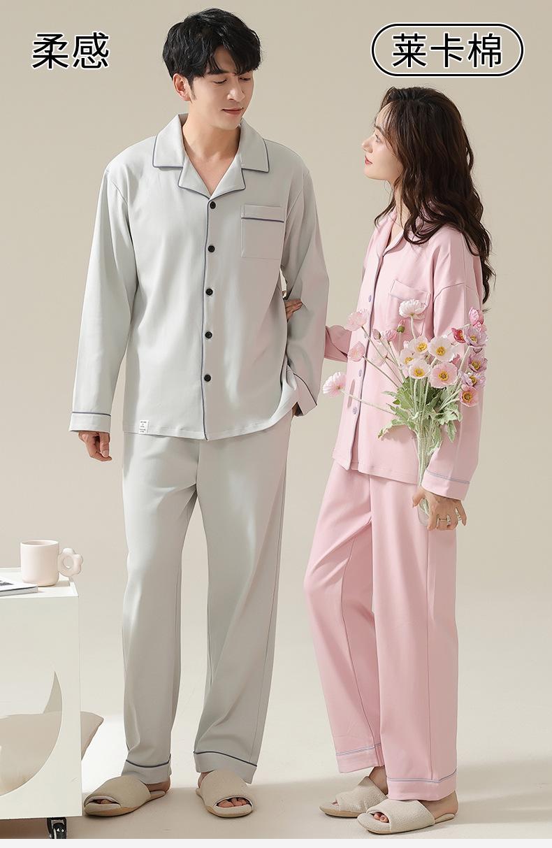 Pijamas de Pareja Primavera y Otoño Manga Larga Pull Rack Algodón Puro Solapa Cárdigan Sencillo Ropa de Exterior Ropa para el Hogar para Hombre y Mujer Traje de Moda