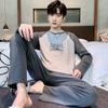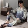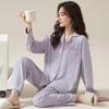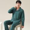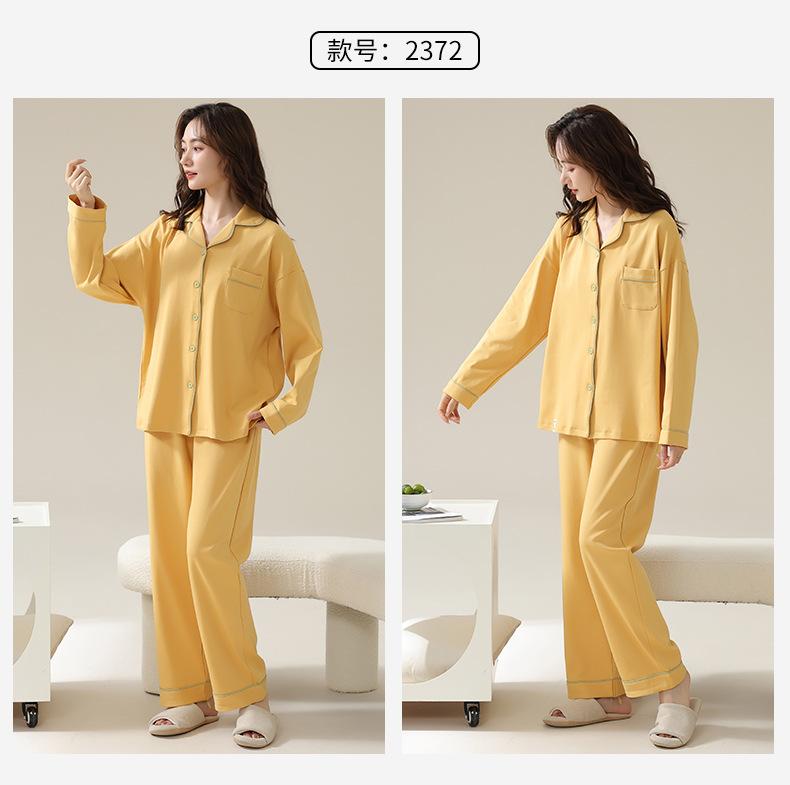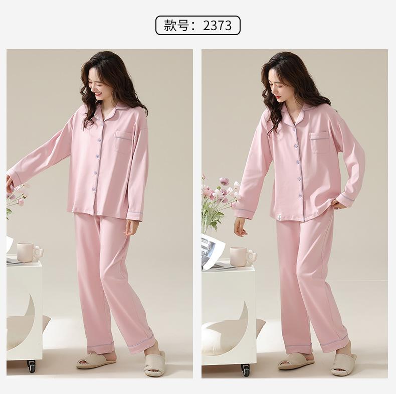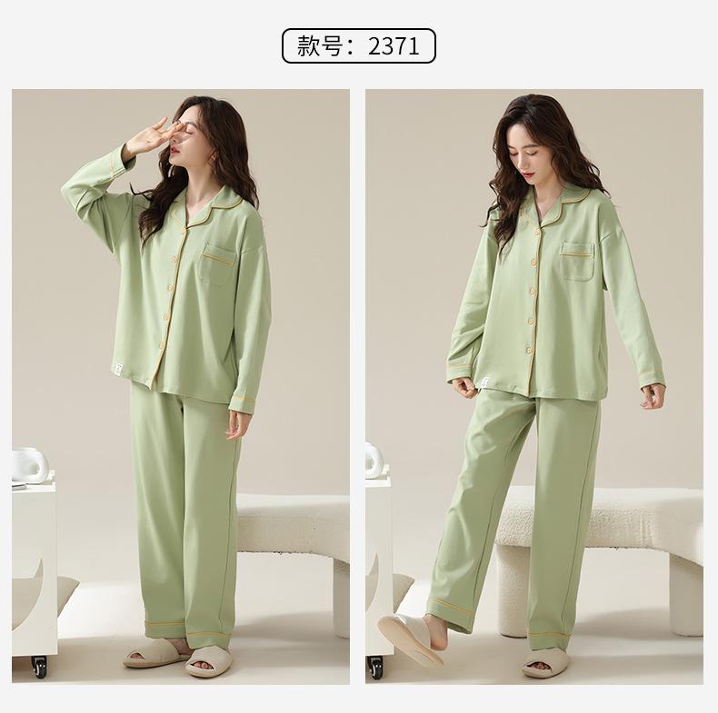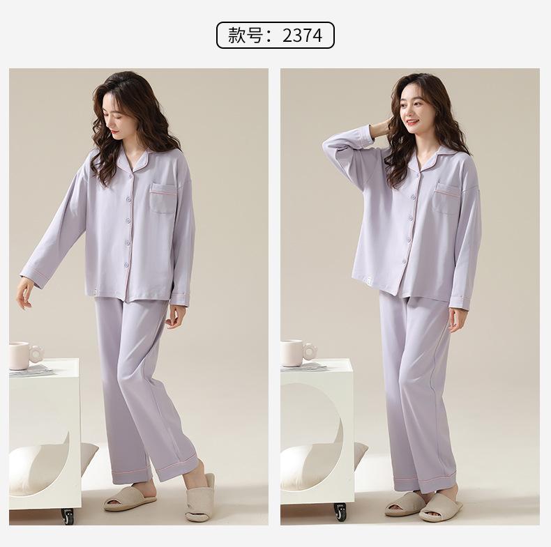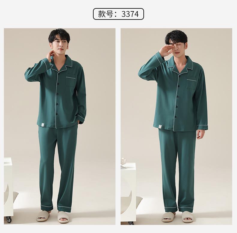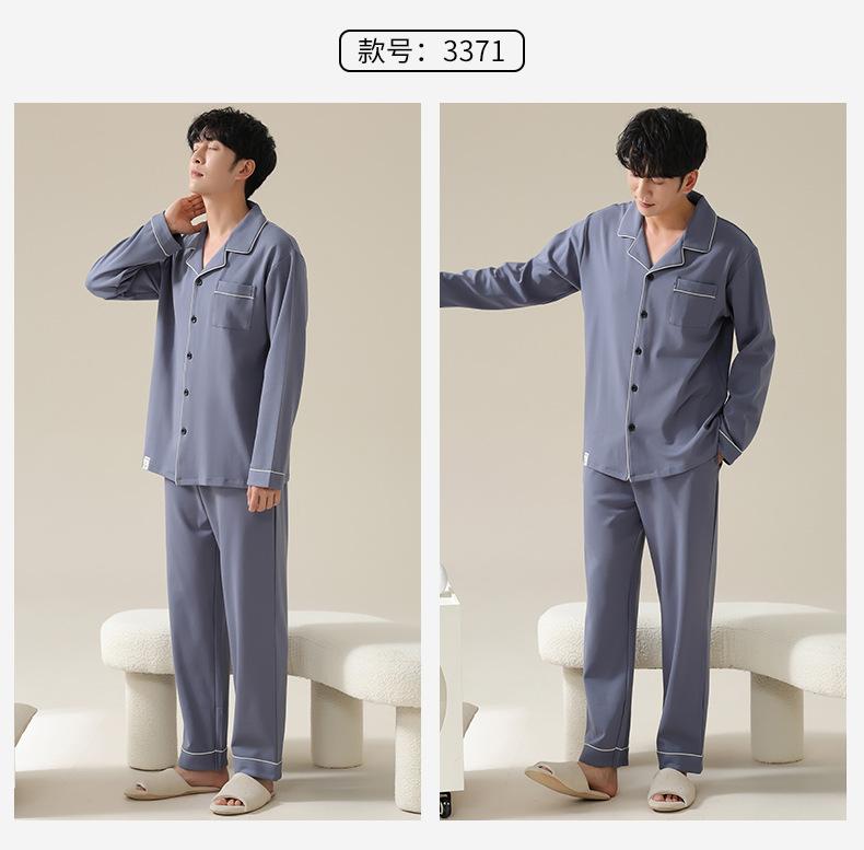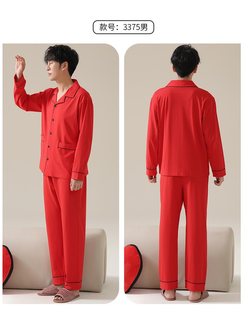 Pijamas de Pareja Primavera y Otoño Manga Larga Pull Rack Algodón Puro Solapa Cárdigan Sencillo Ropa de Exterior Ropa para el Hogar para Hombre y Mujer Traje de Moda