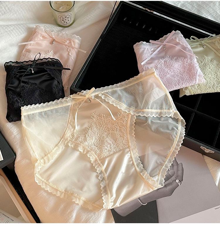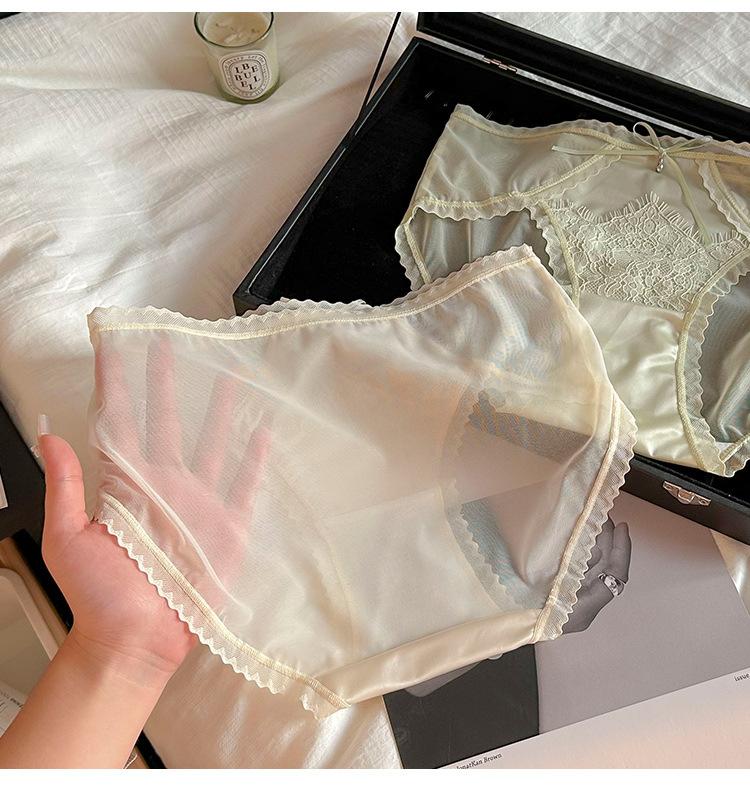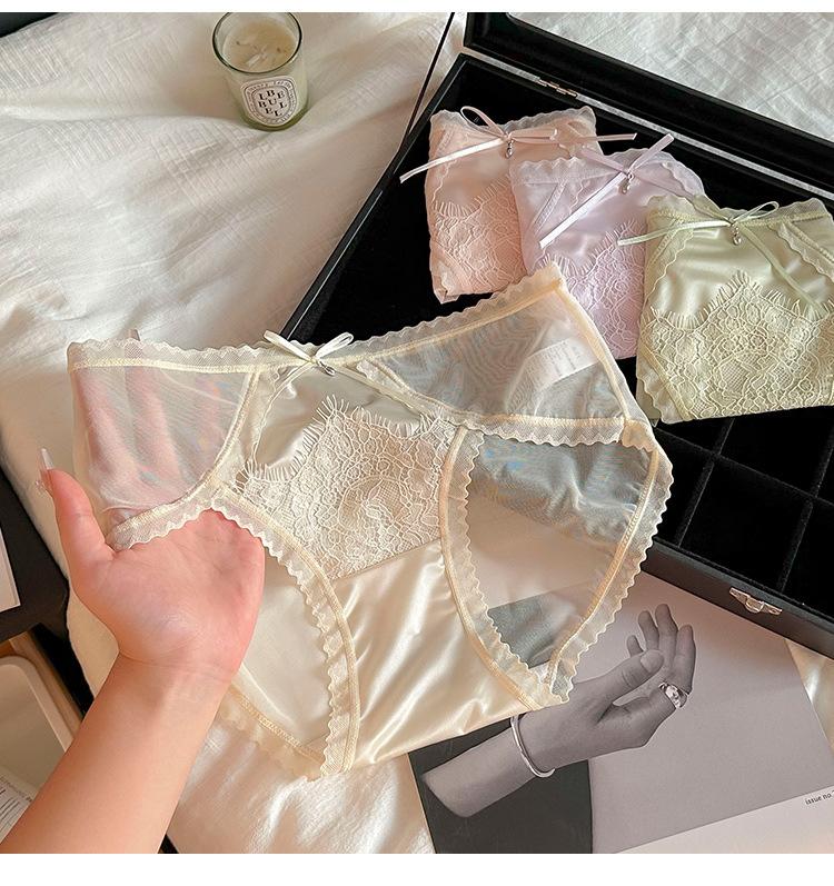 Compra Ropa interior sexy francesa de malla pura para niñas, entrepierna de seda de morera, cintura con encaje, calzones nuevos directos de fábrica al por mayor en Joom.pro