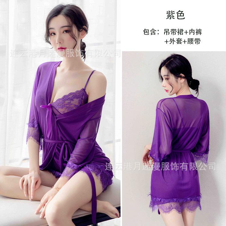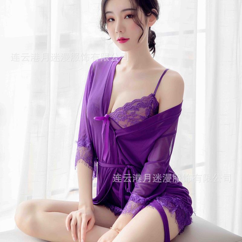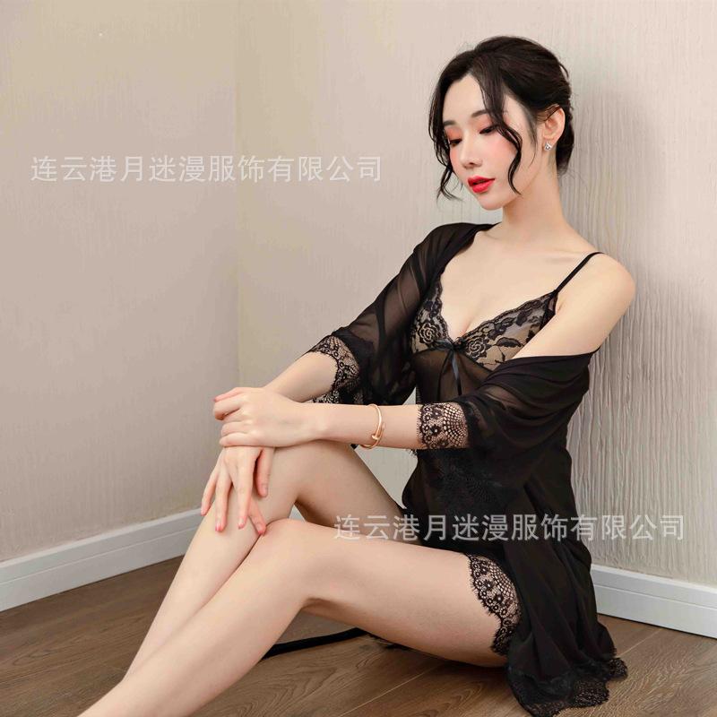 Lencería Sexy para Mujer Talla Grande Perspectiva Pasión Tentación Sling Encaje Malla Pijama Traje Caliente