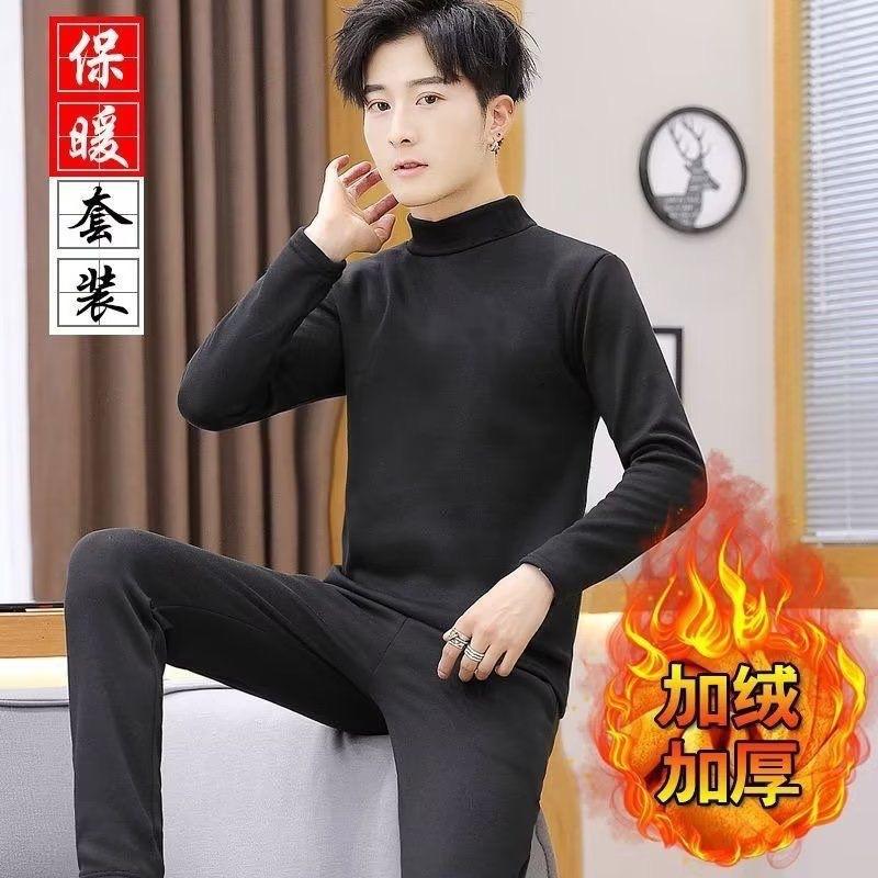 Compra Ropa y pantalones de otoño Traje de camisa de dos piezas a prueba de frío Ropa interior térmica de cuello medio de terciopelo dorado Forro polar de invierno para hombre Engrosado al por mayor en Joom.pro