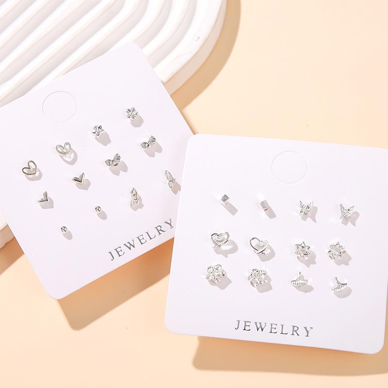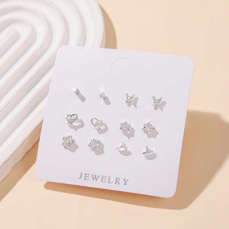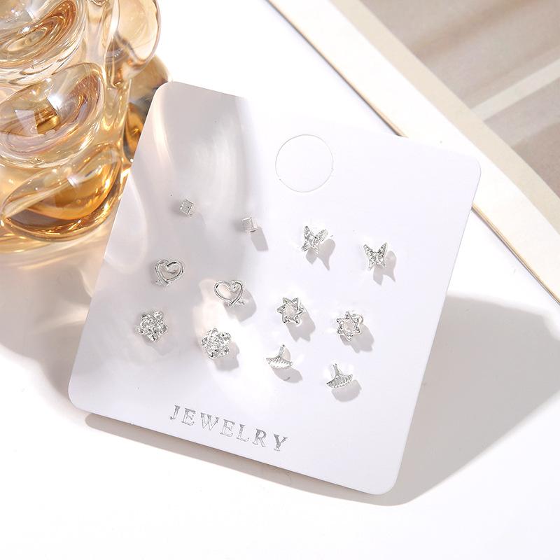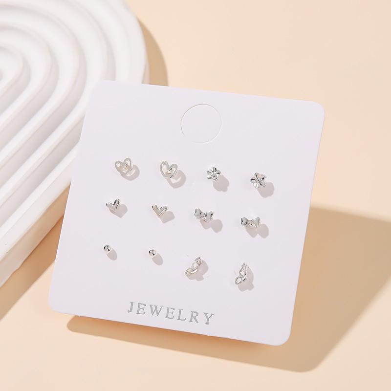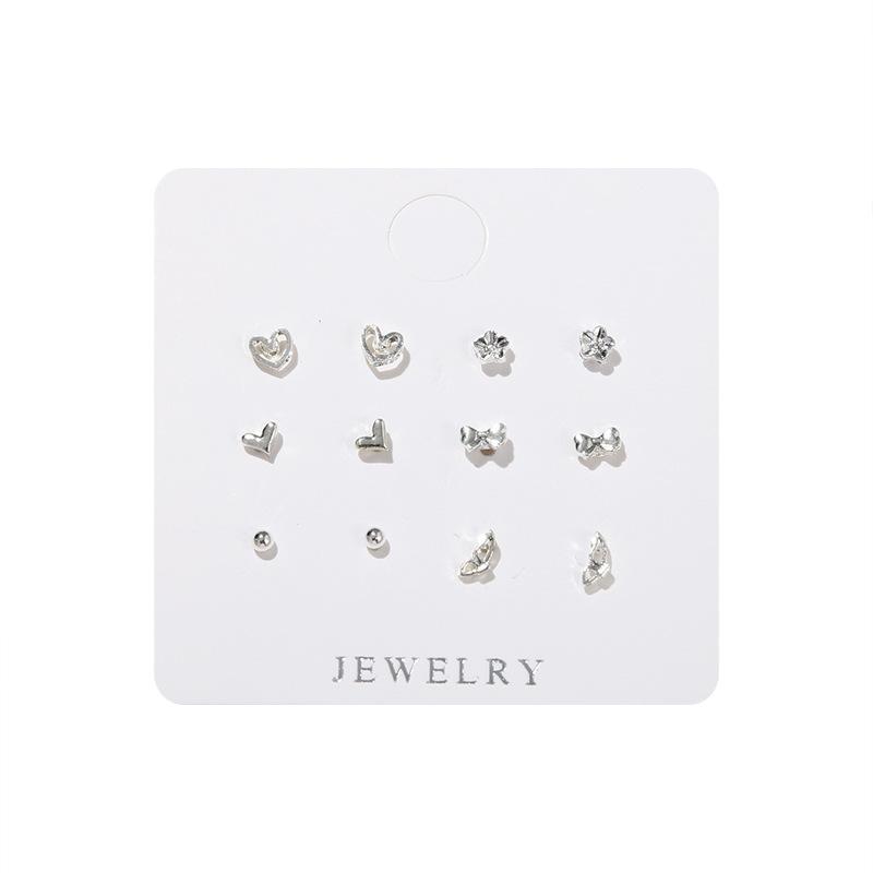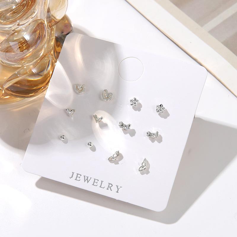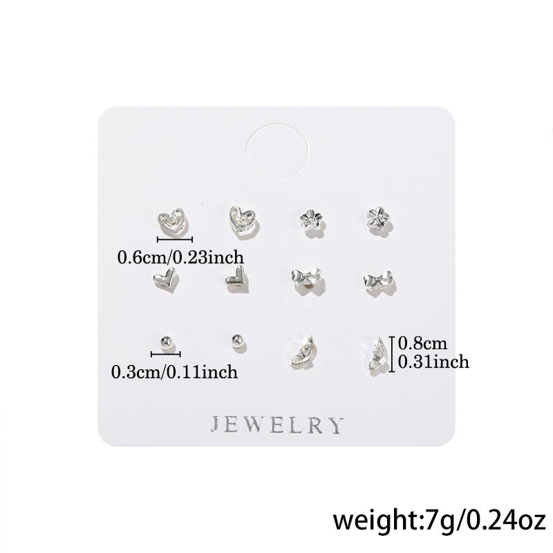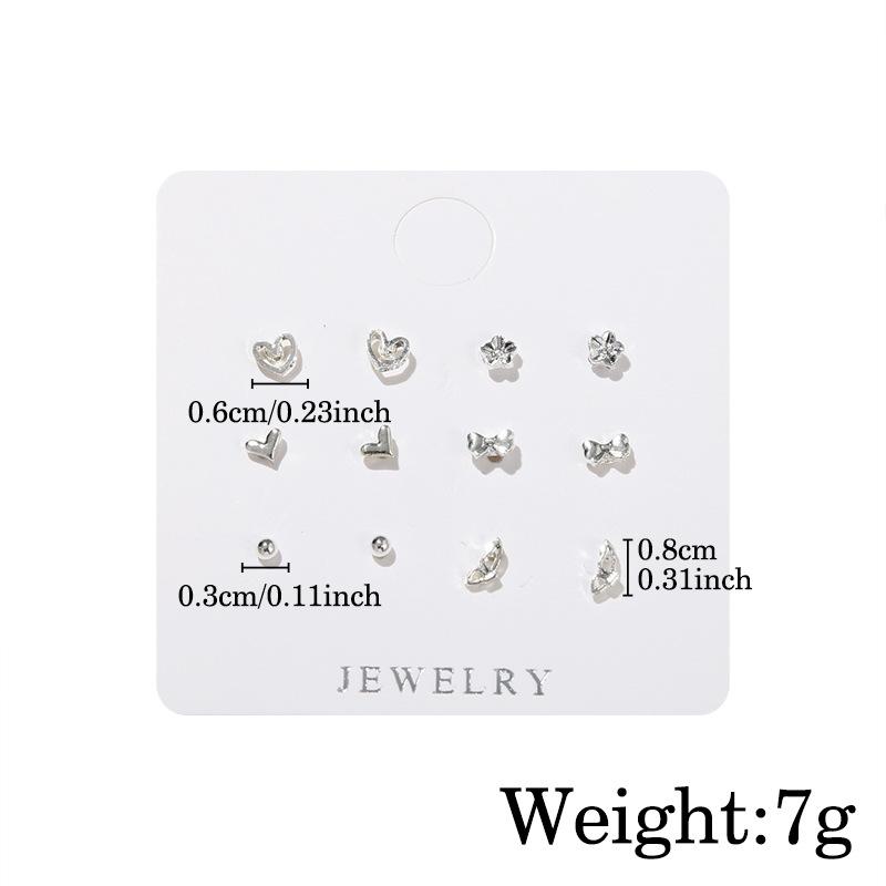 Conjunto de 6 pares de pendientes de estilo coreano que combinan con todo, pendientes pequeños con lazo de amor, pendientes de estrella simples combinados