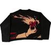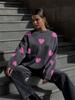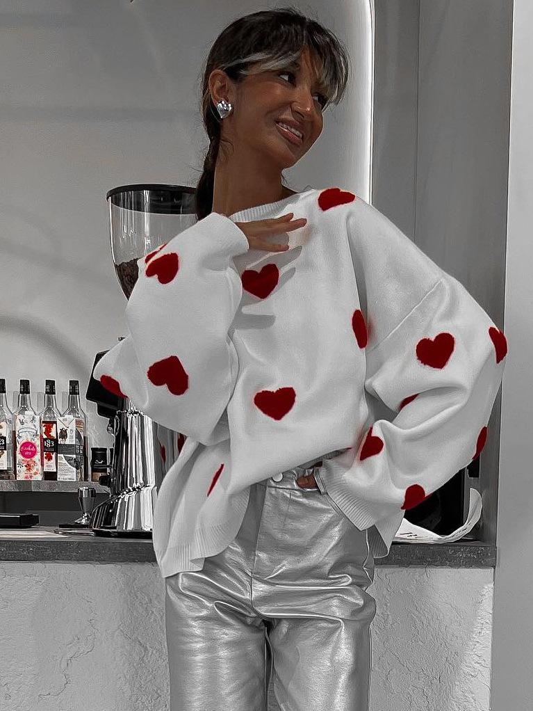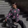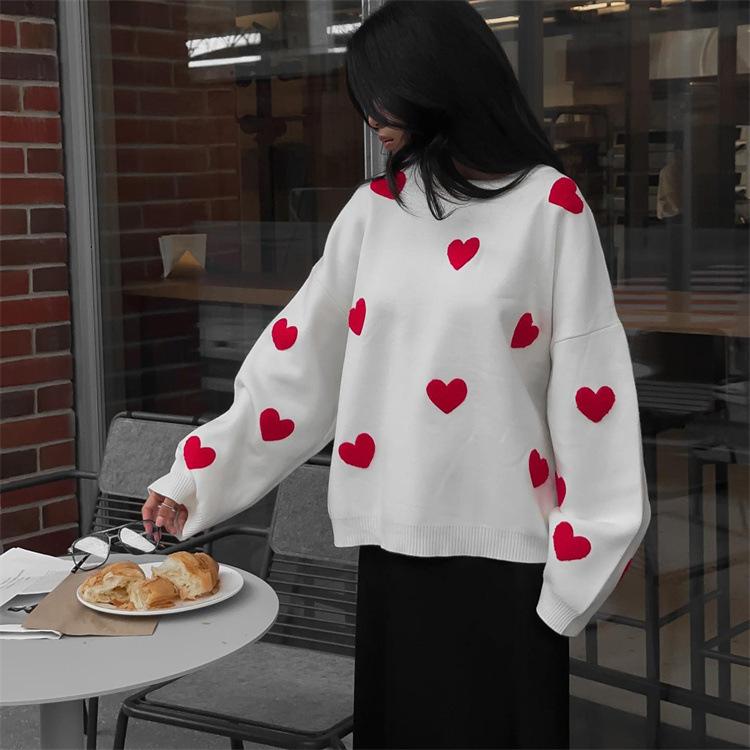 Suéter de cuello redondo bordado con amor transfronterizo, moda europea y americana 2024, suéter de otoño e invierno, suéter informal holgado de punto