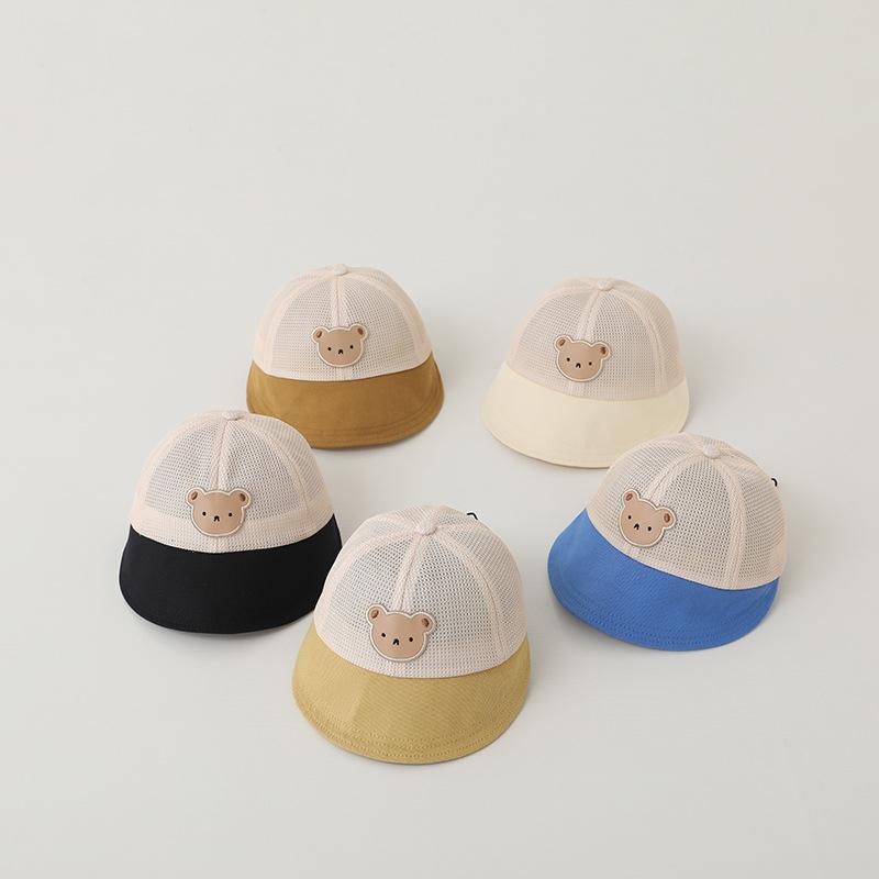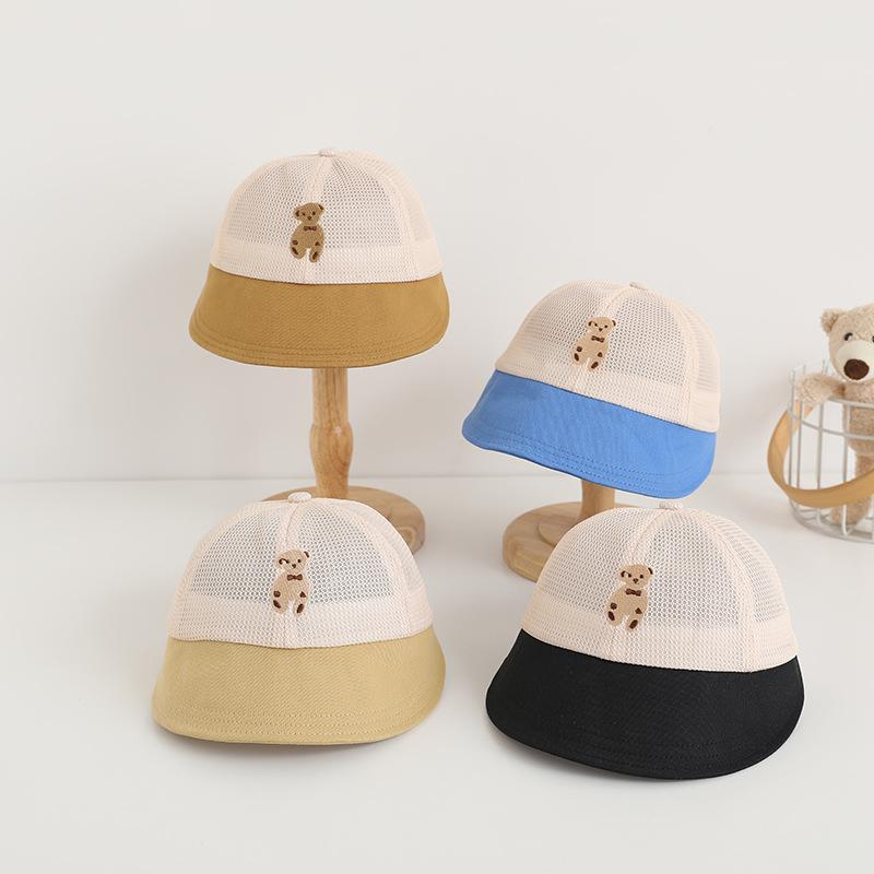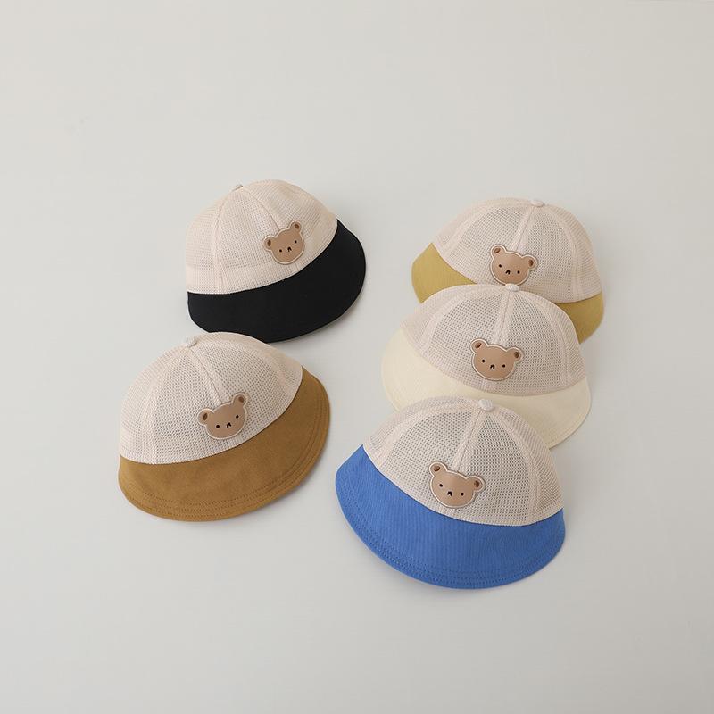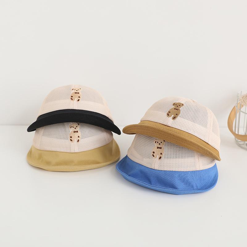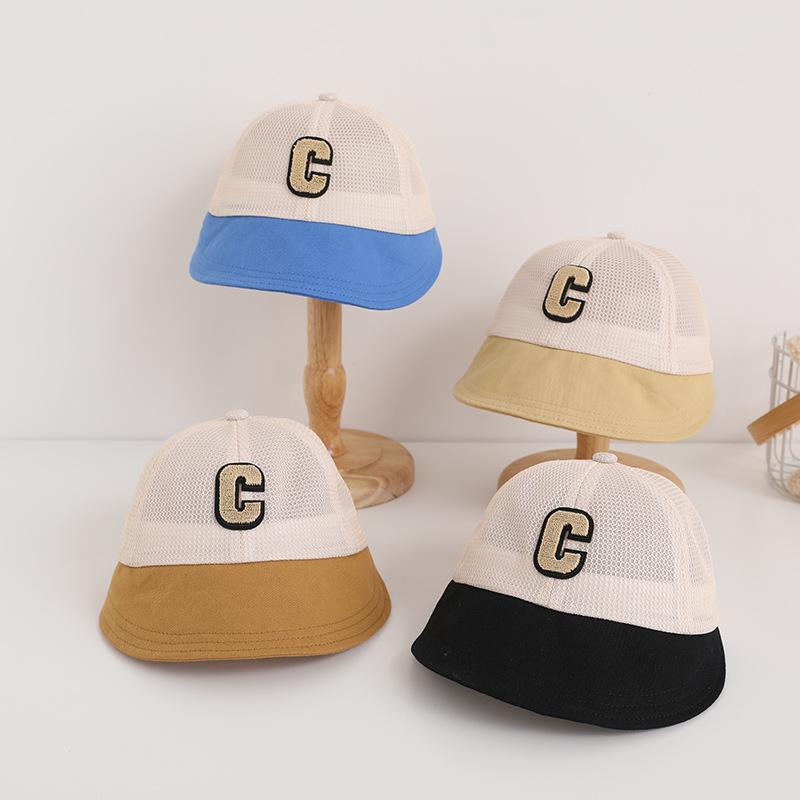 Gorro de lavabo para bebé con letra C de oso de estilo japonés y coreano, gorro para niños de 2 a 5 años, gorro transpirable de verano para el sol, gorro de pescador para niños