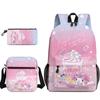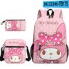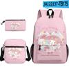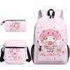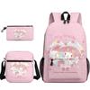 Mochila para estudiantes con melodía 3D de Sanrio, bolso para lápices, bolso bandolera, conjunto estampado de tres piezas