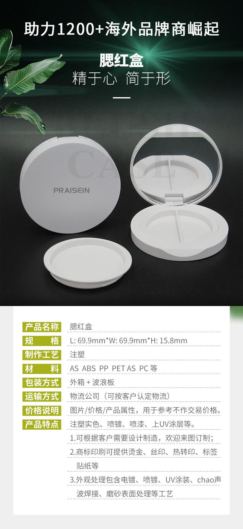 Compra Elogios para la paleta de rubor de un solo color con hebilla redonda de plástico, material de embalaje, 2 rejillas, caja de plástico para iluminar y contornear en polvo al por mayor en Joom.pro